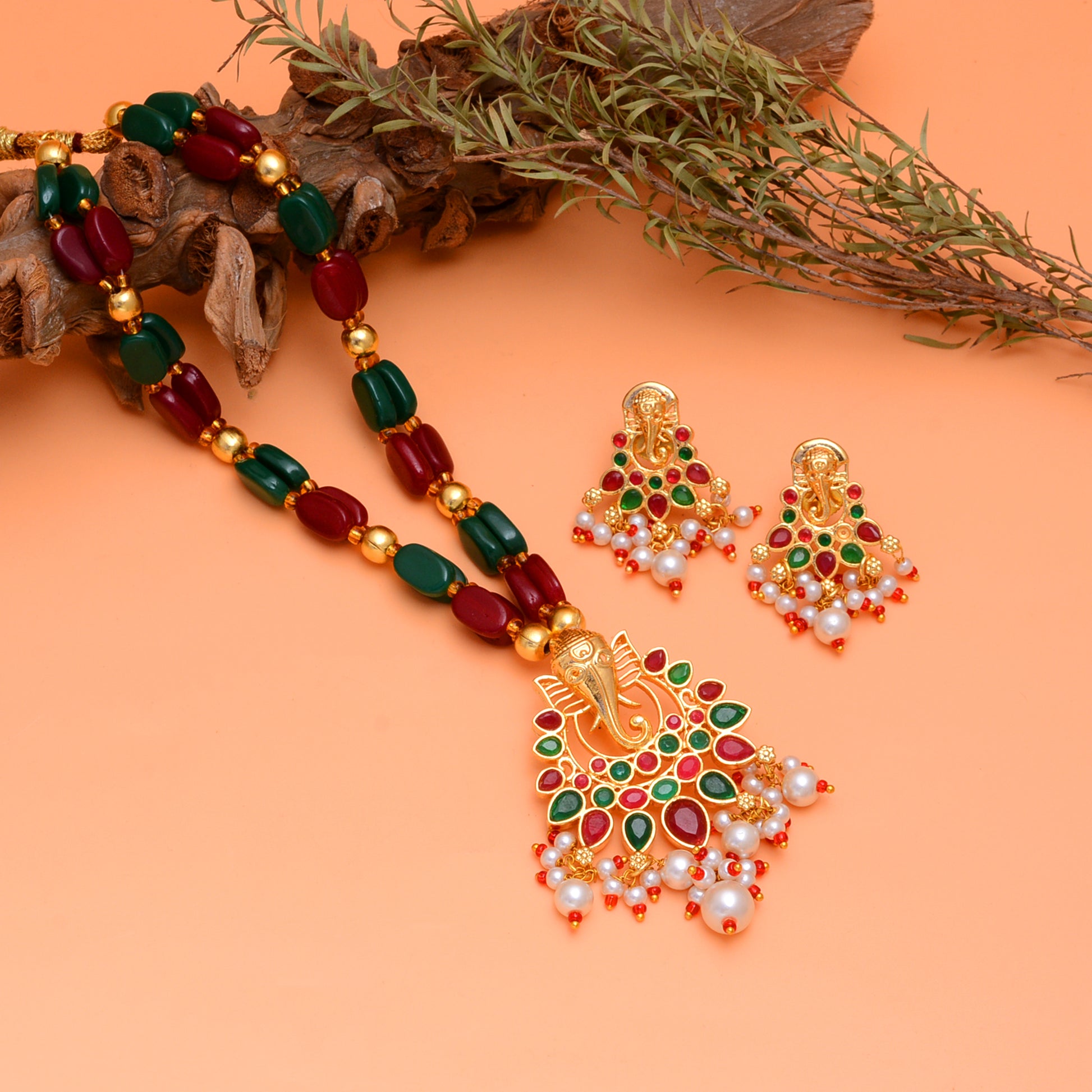Tanusha Jewels Beaded Ganesh Pendant Necklace For Women & Girls