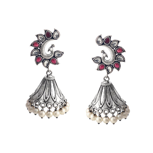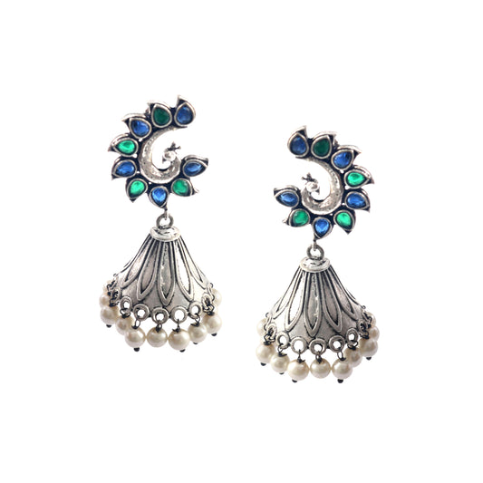 Tanusha Jewels Multicolour Silver Oxidised Floral Jhumki For Womens