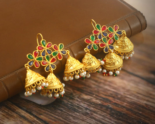 Tanusha Jewels Gold Plated Floral Jhumka For Womens