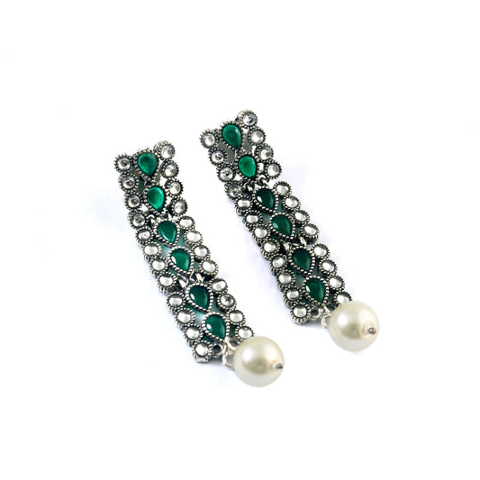 Tanusha Jewels Oxidised Pearl Drop & Dangle , Tassel Earrings For Women & Girls