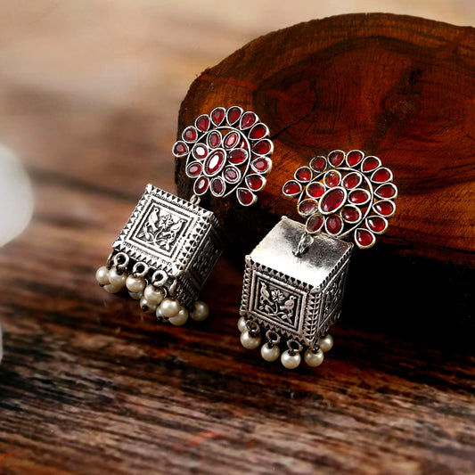 Tanusha Jewels Oxidised Square Shaped Jhumki Earrings For Womens