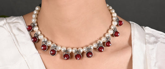 Tanusha Jewels Brass Handmade Pearl Necklace Set For Womens & Girls