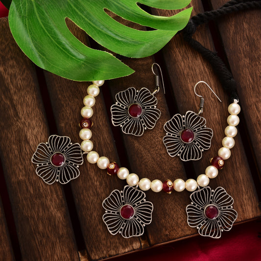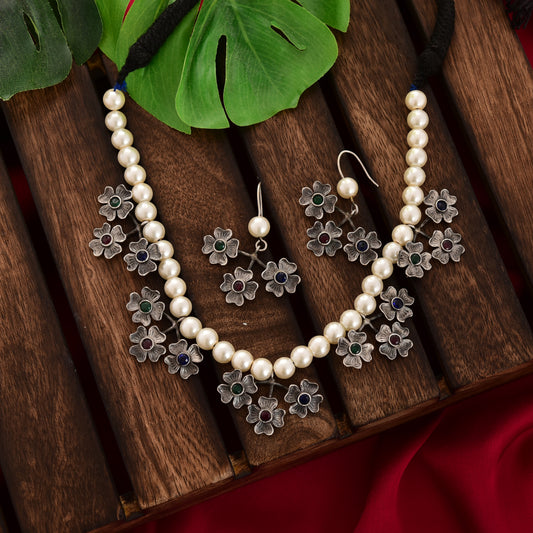 Tanusha Jewels Beautiful Pearl Handmade Necklace Set with 1 Pair of Earrings