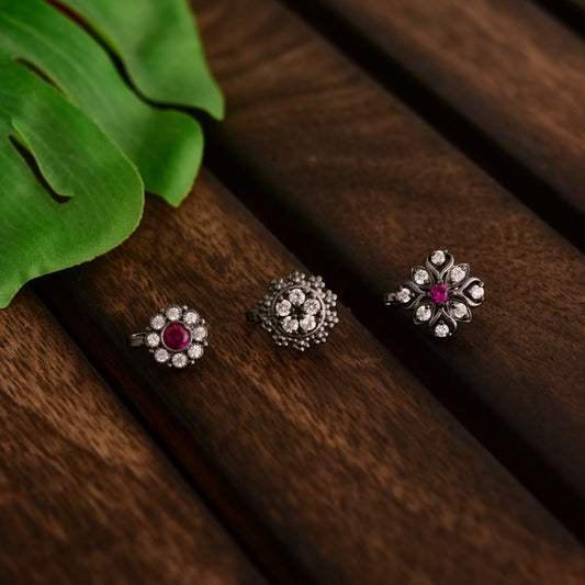 Tanusha Jewels Oxidised Clip On Nosepin &Nosestuds Sets for womens and girls || Multicolour || Pack of 3