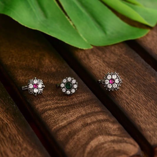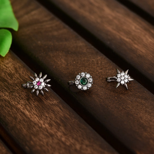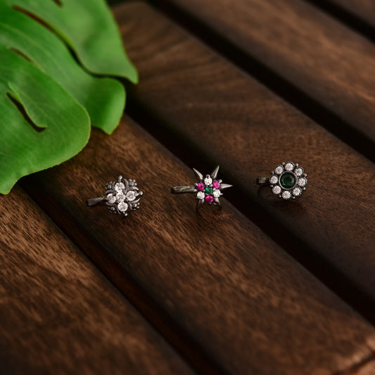 Tanusha Jewels Beautiful Oxidised Clip-On Nosepin Set for womens and girls || Multicolour || Pack of 3