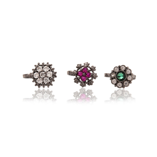 Tanusha Jewels Oxidised Clip On Nosepin Set for womens || (Multicolour) || Pack of 3