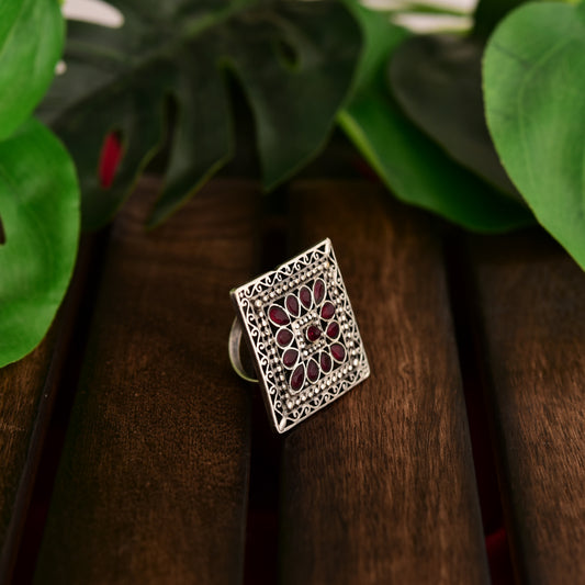 Tanusha Jewels Oxidised Square Brass Ring with Adjustable Size For Womens & Girls