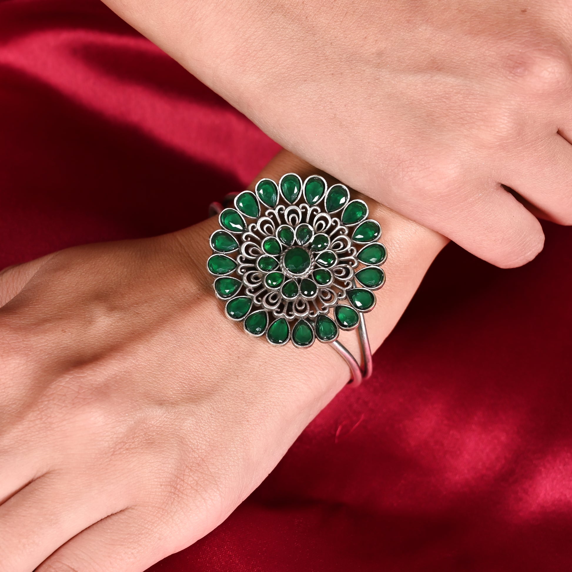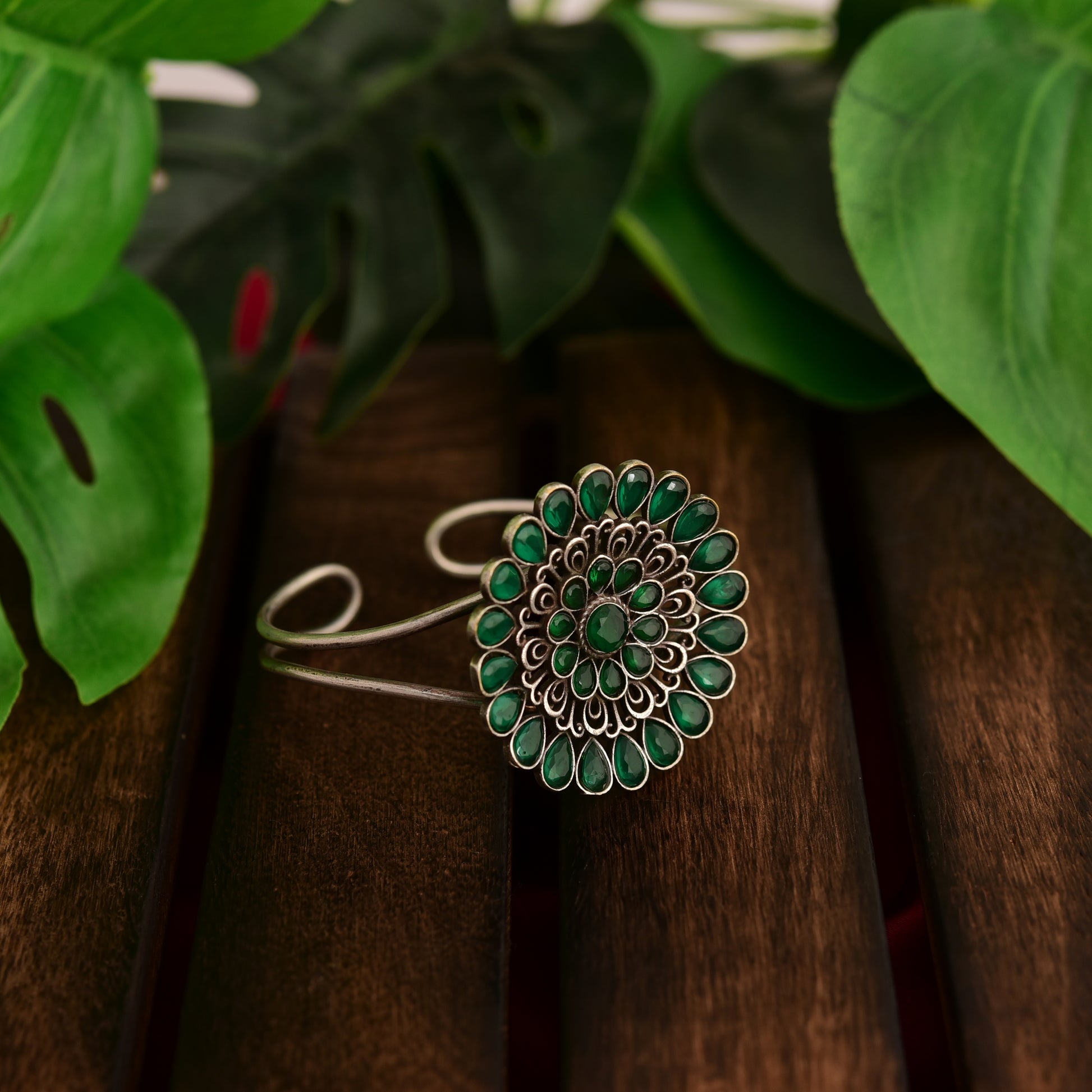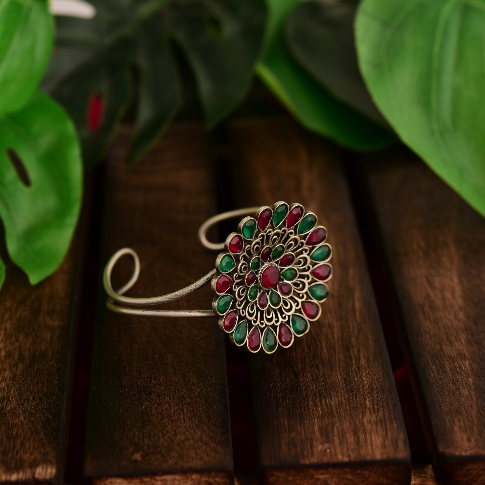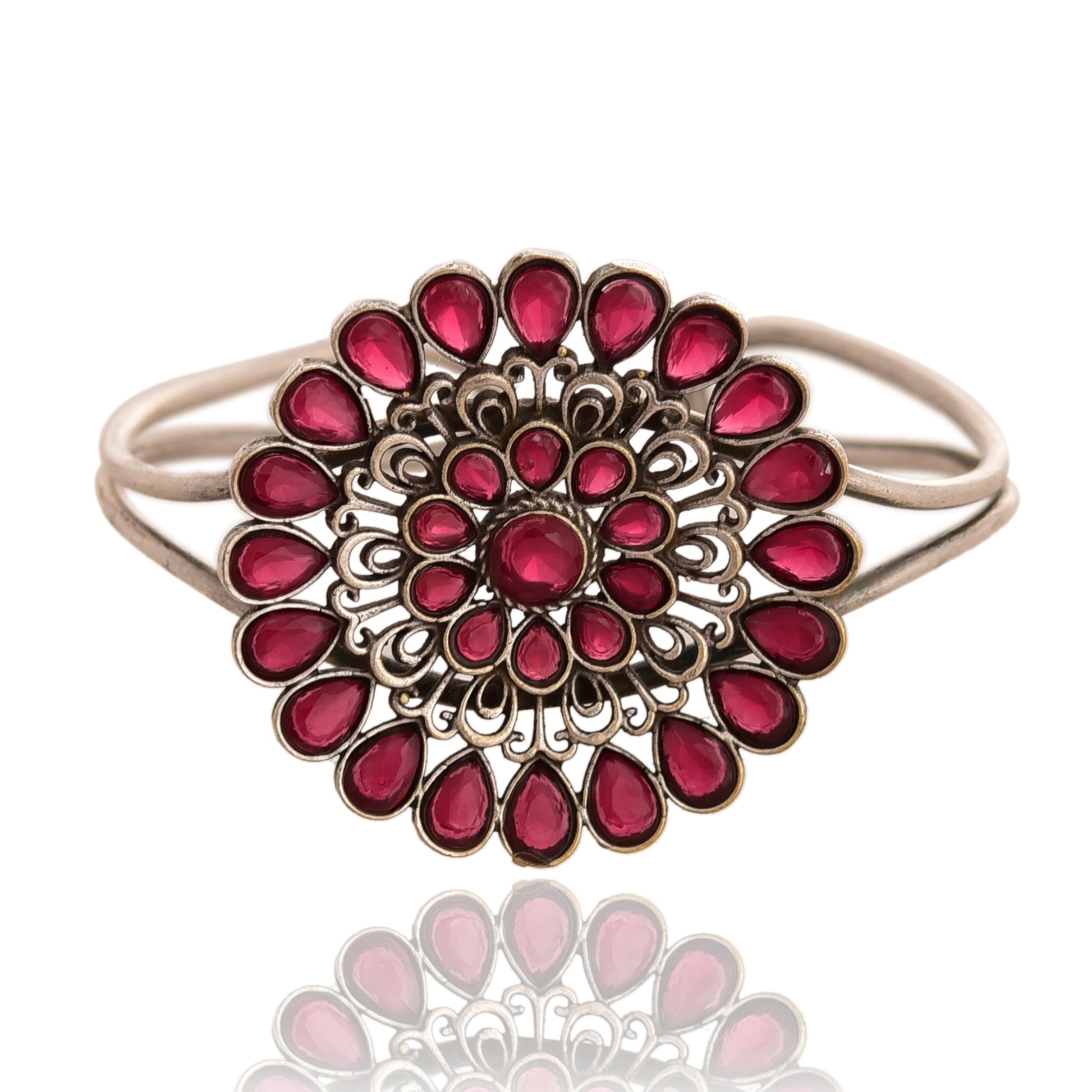 Tanusha Jewels Adjustable Oxidised Floral Bangle For Womens