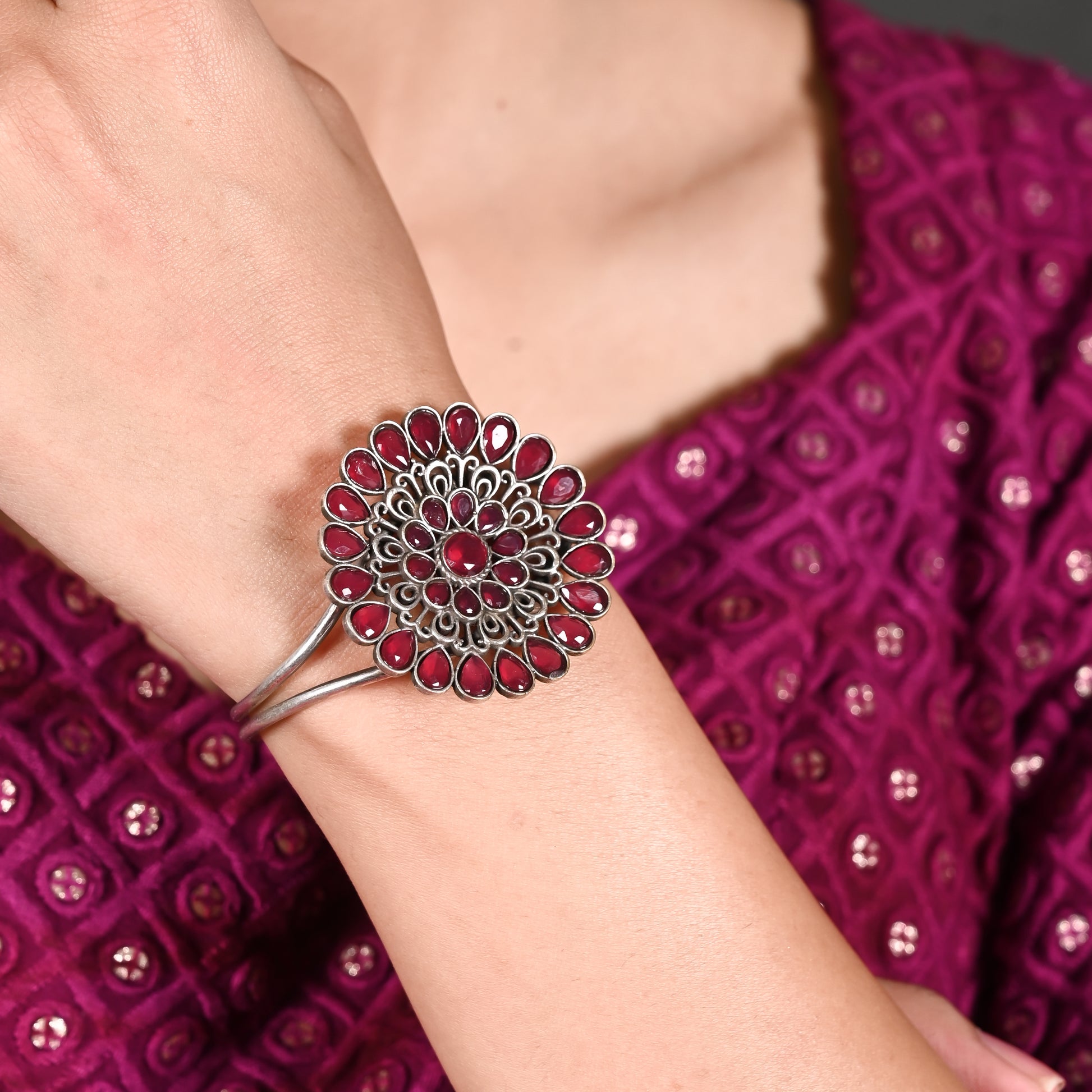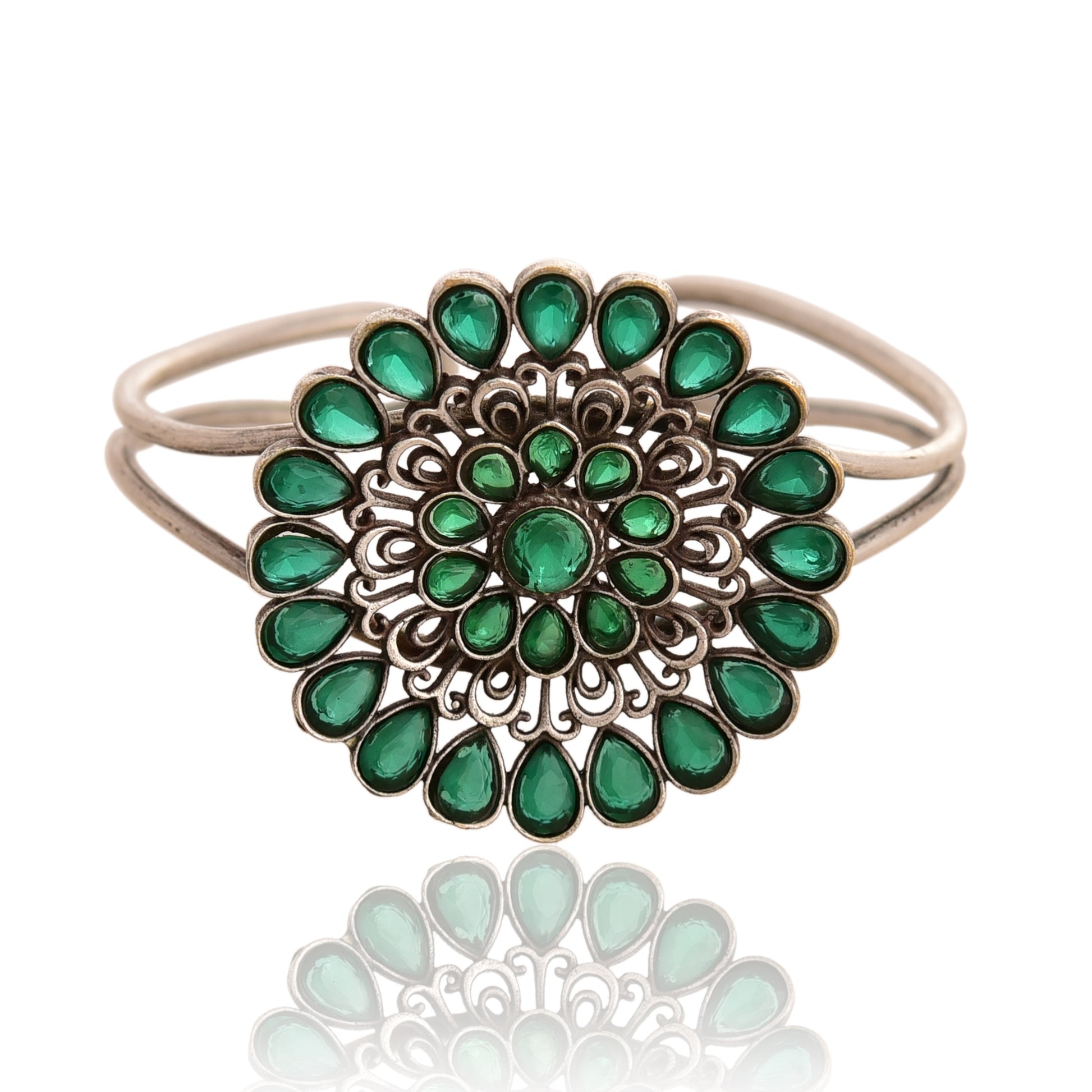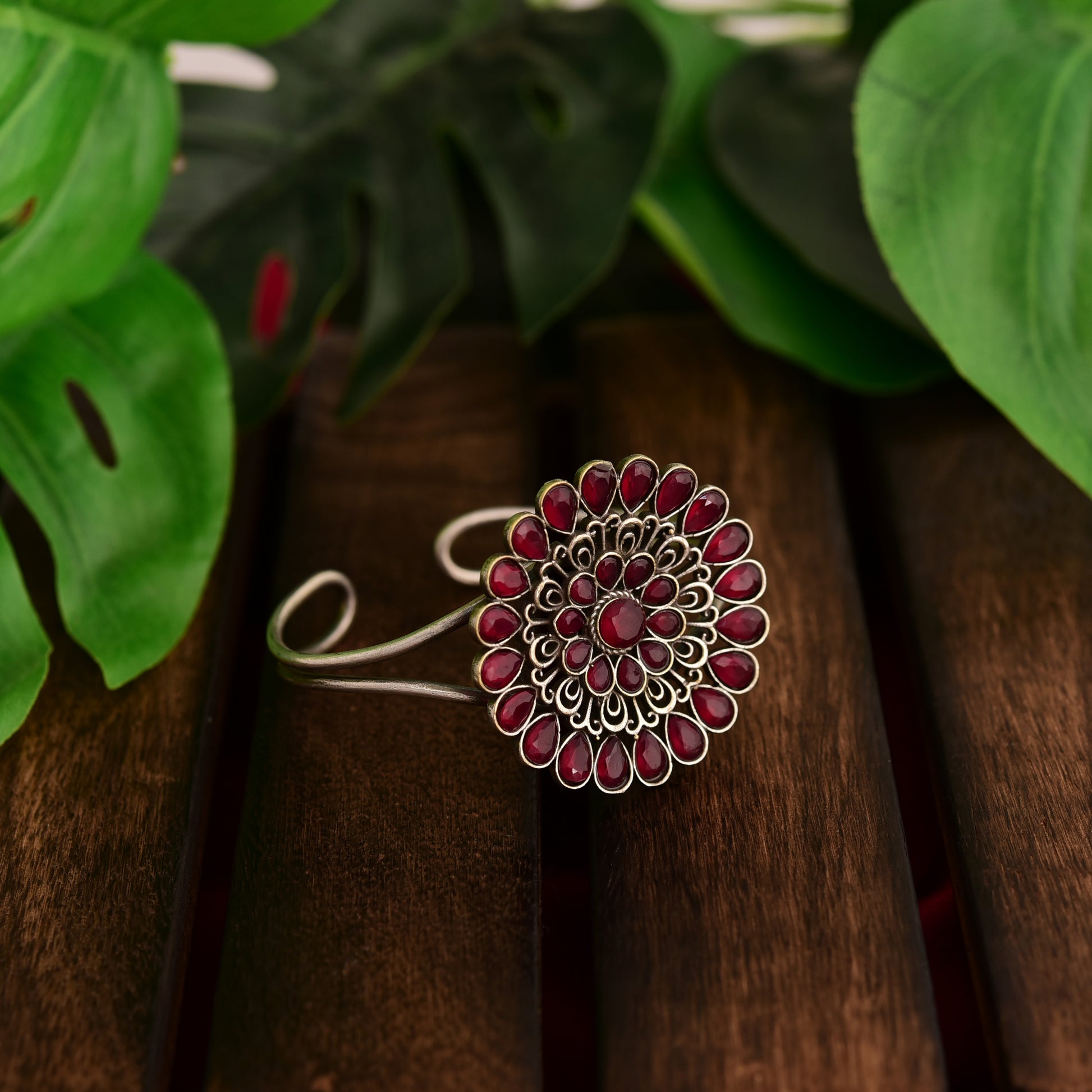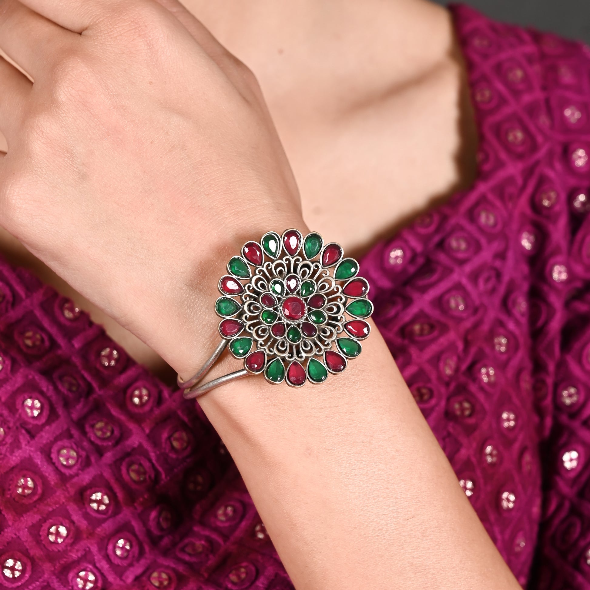 Tanusha Jewels Adjustable Oxidised Floral Bangle For Womens