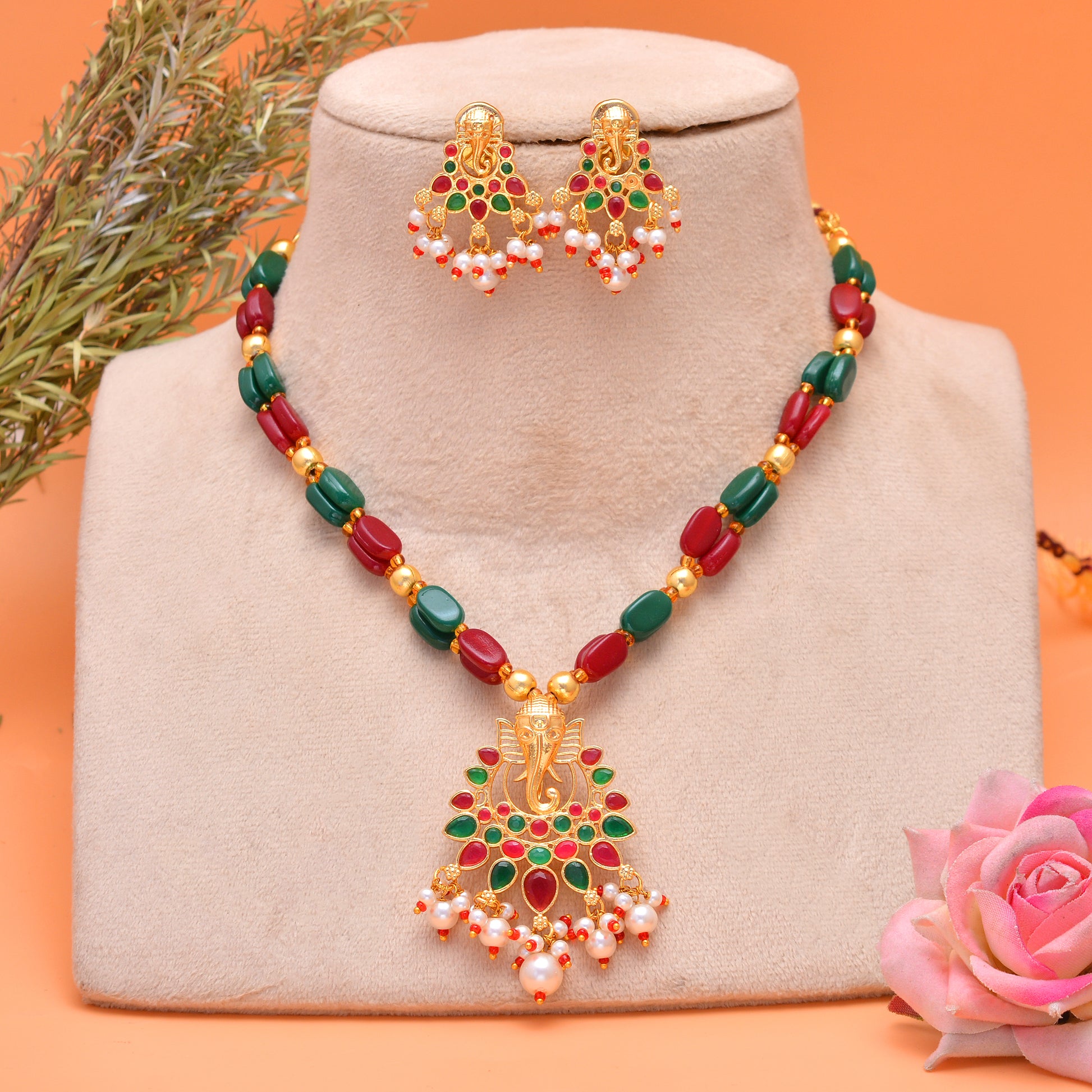 Tanusha Jewels Beaded Ganesh Pendant Necklace For Women & Girls