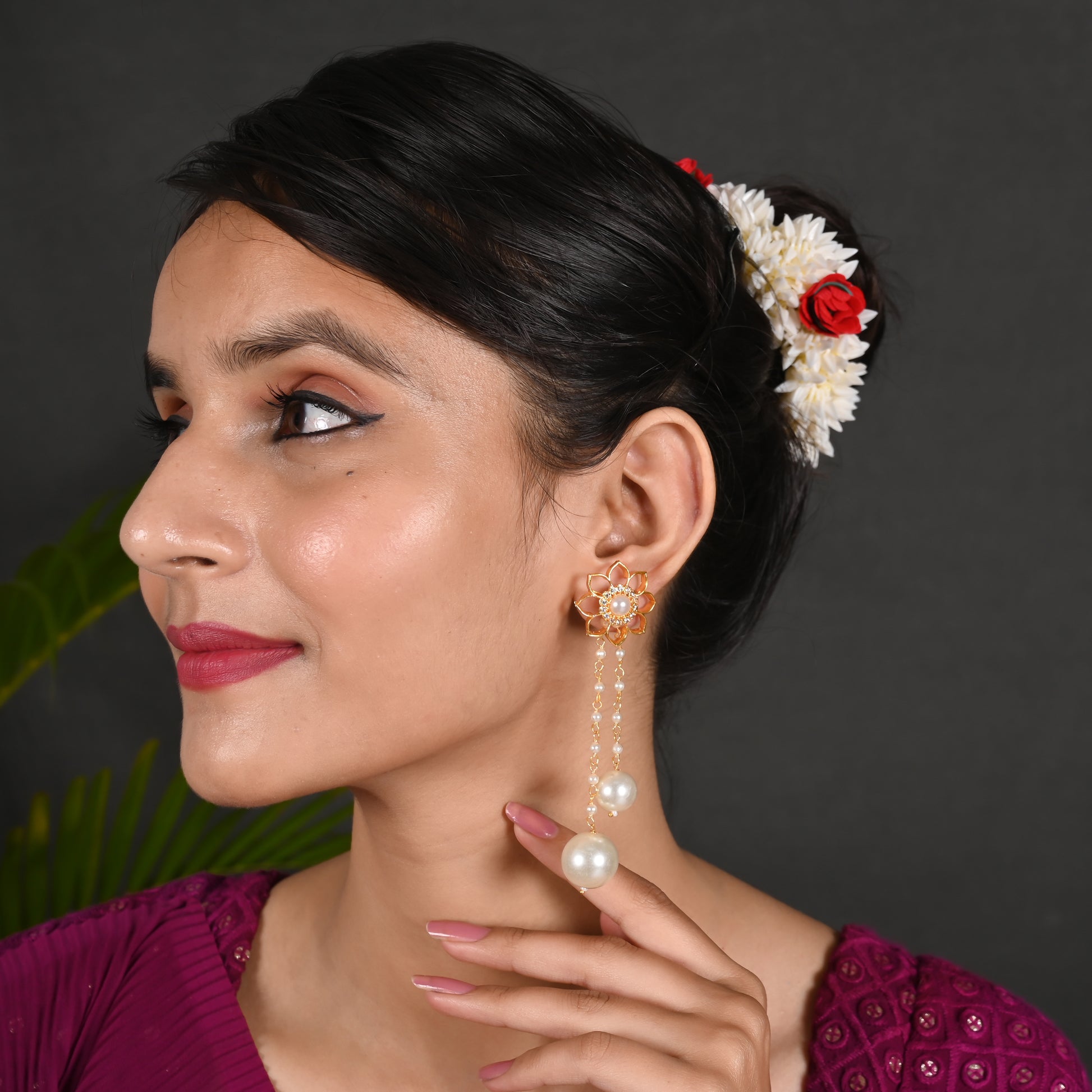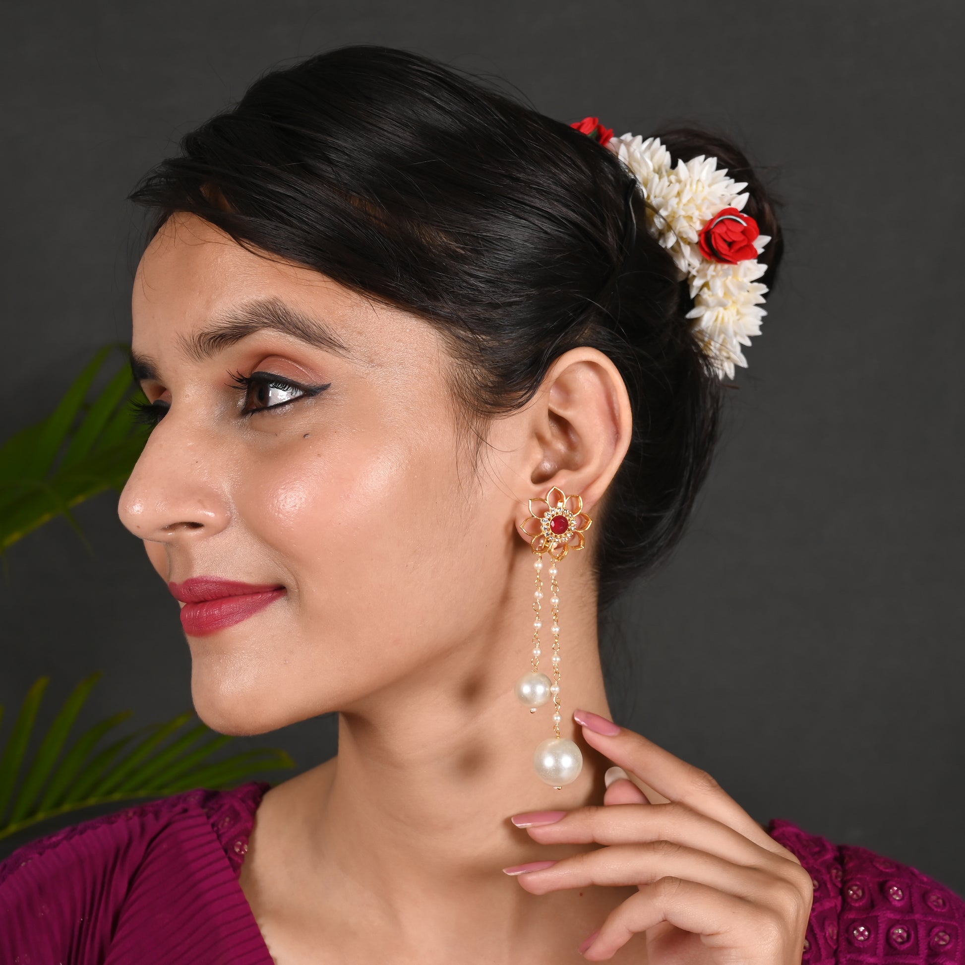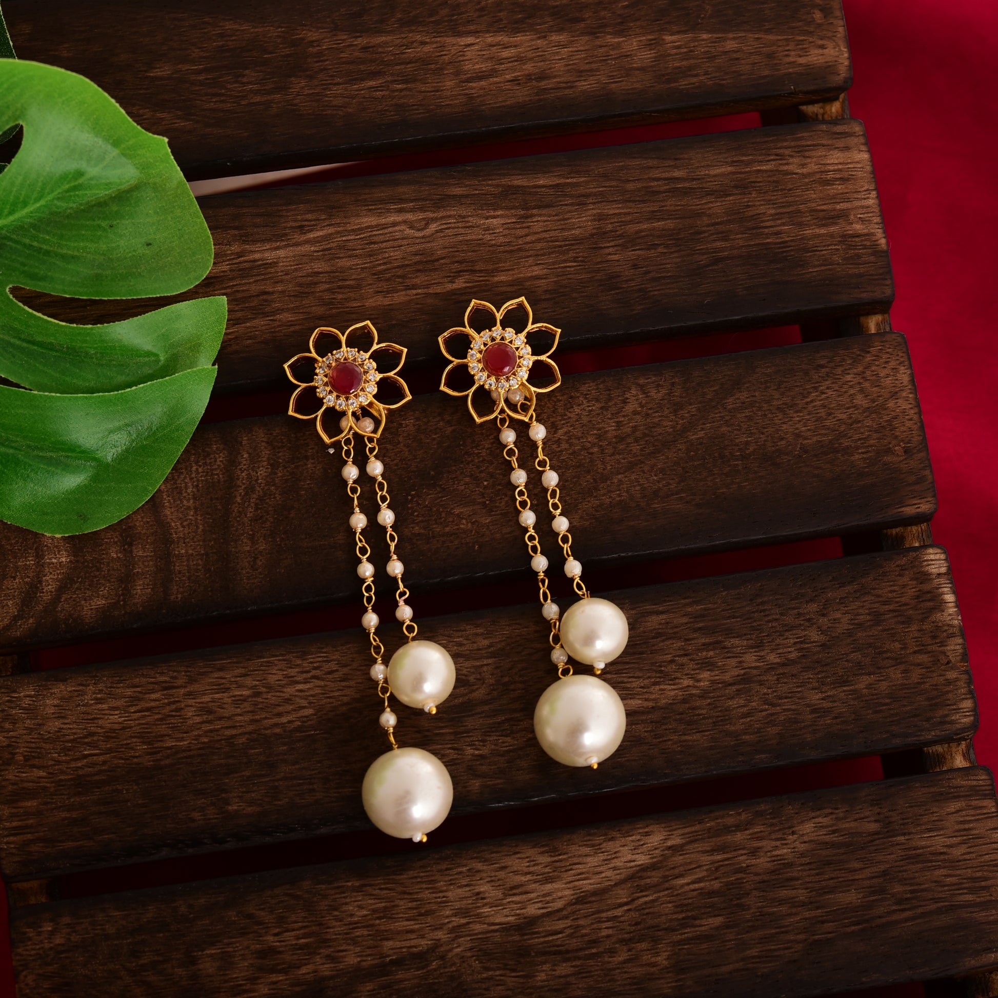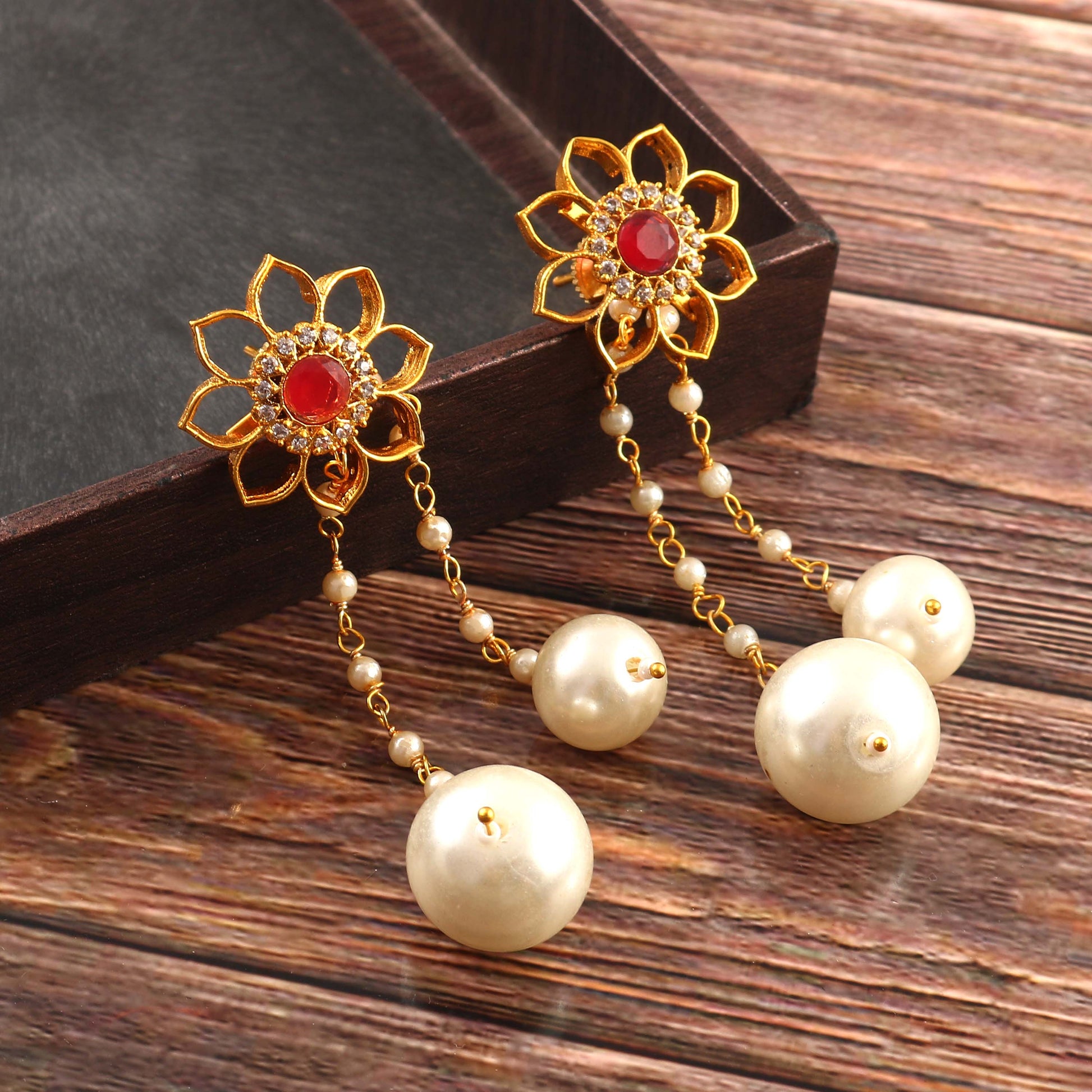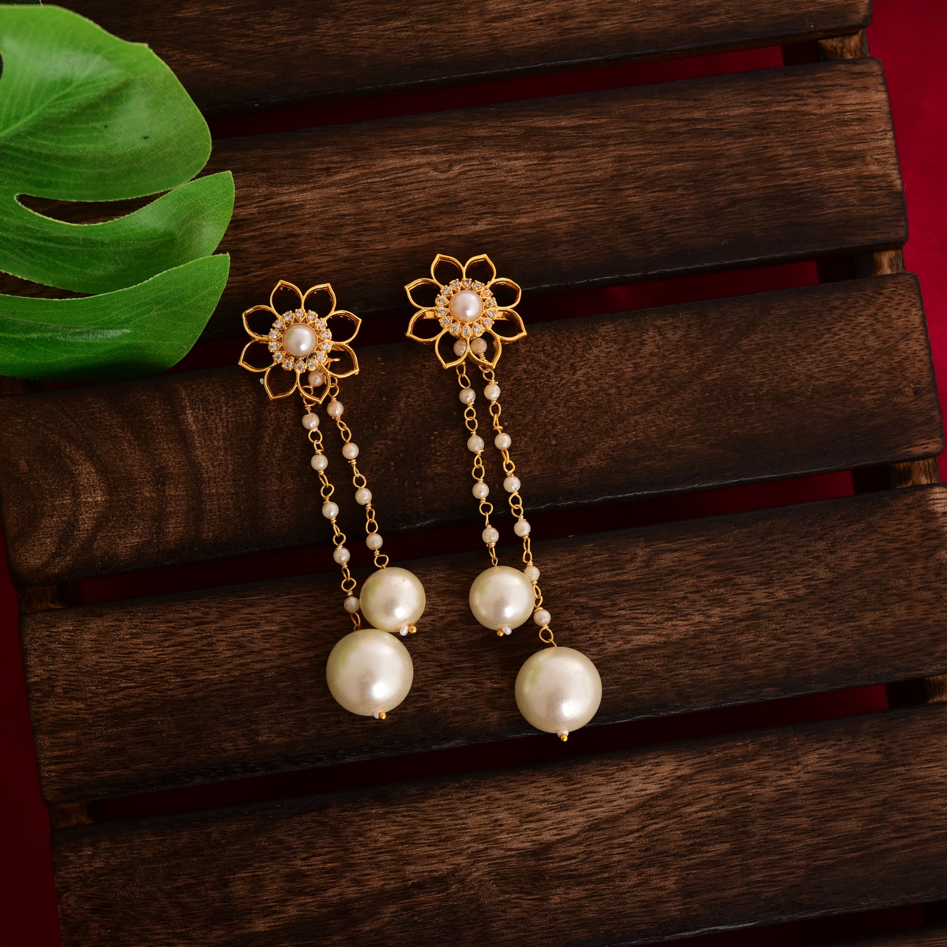 Tanusha Jewels Beautiful Floral 2in1 Drop Earings For Girls & Womens
