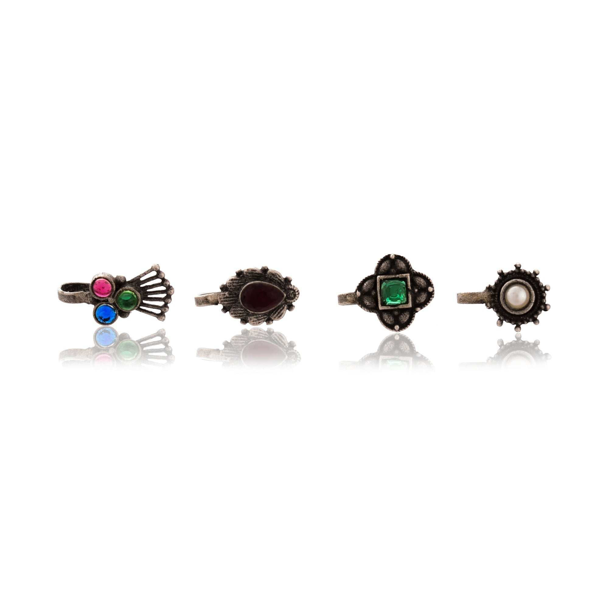 Tanusha Jewels Beautiful Oxidised Clip-On Nosepin Set for womens and girls || Multicolour || Pack of 4