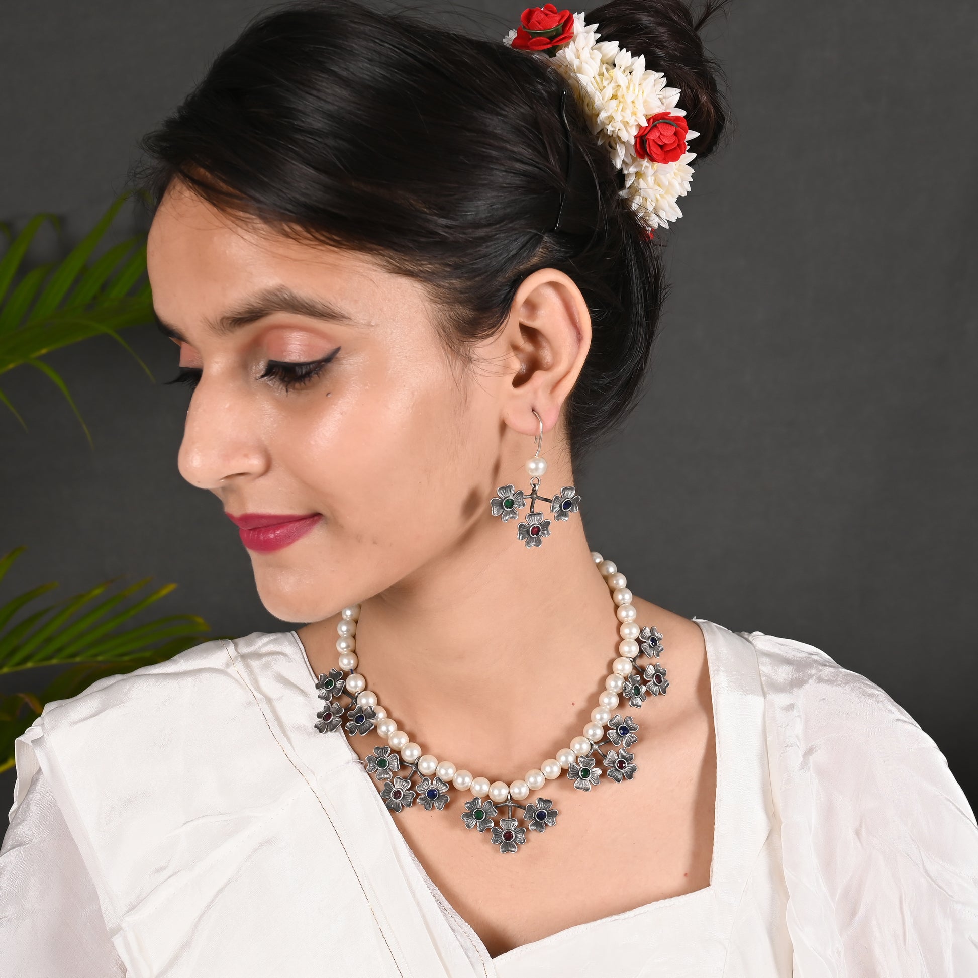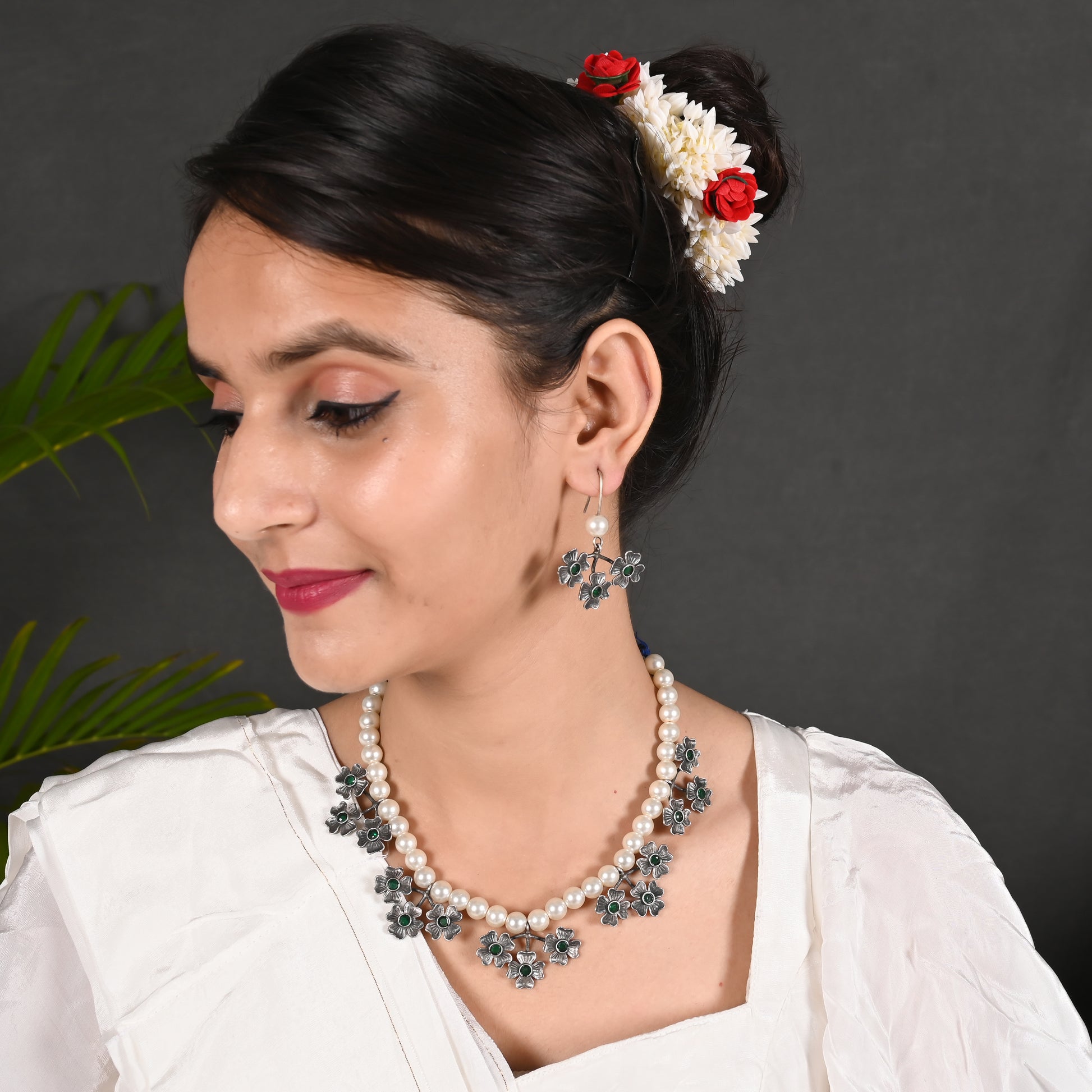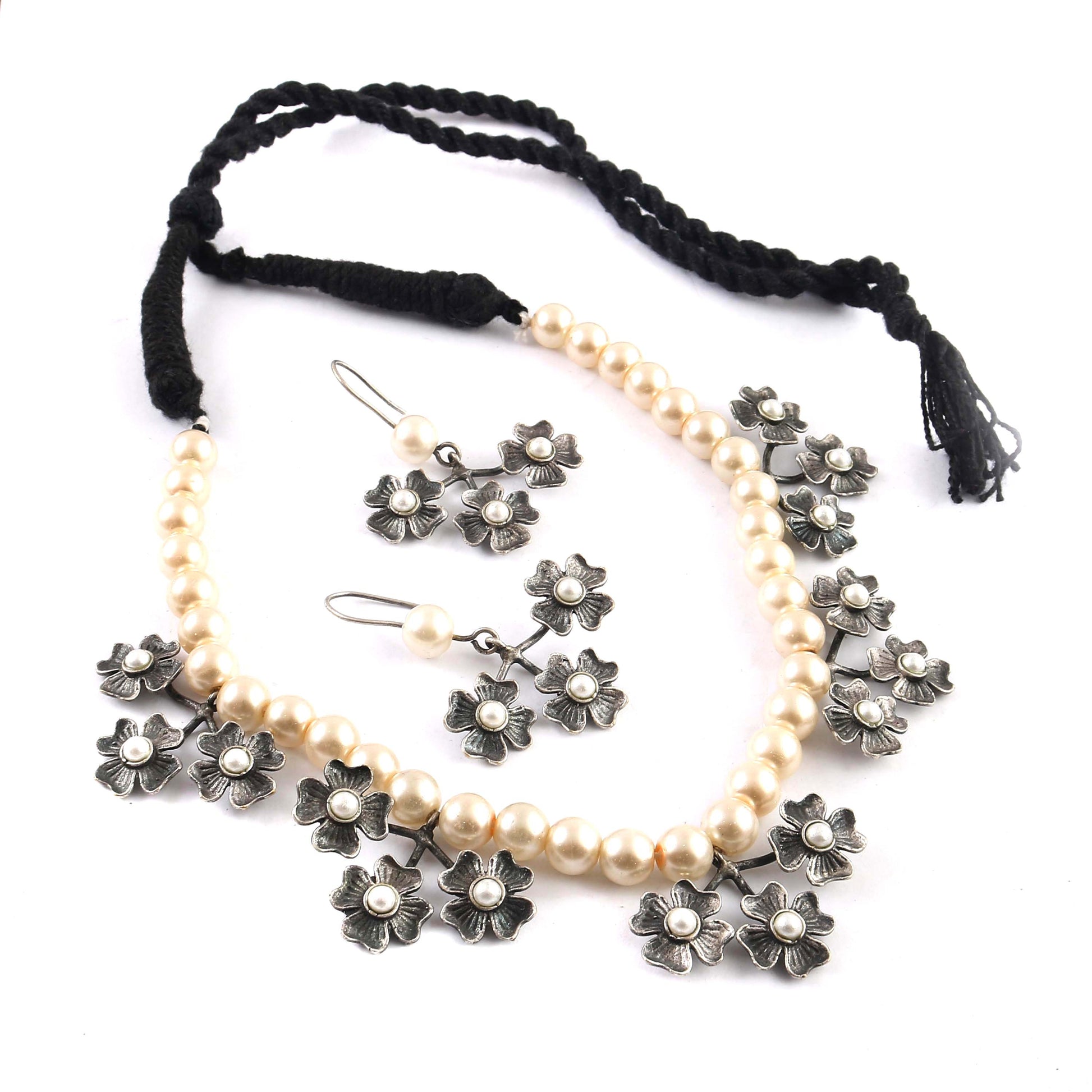 Tanusha Jewels Beautiful Pearl Handmade Necklace Set with 1 Pair of Earrings