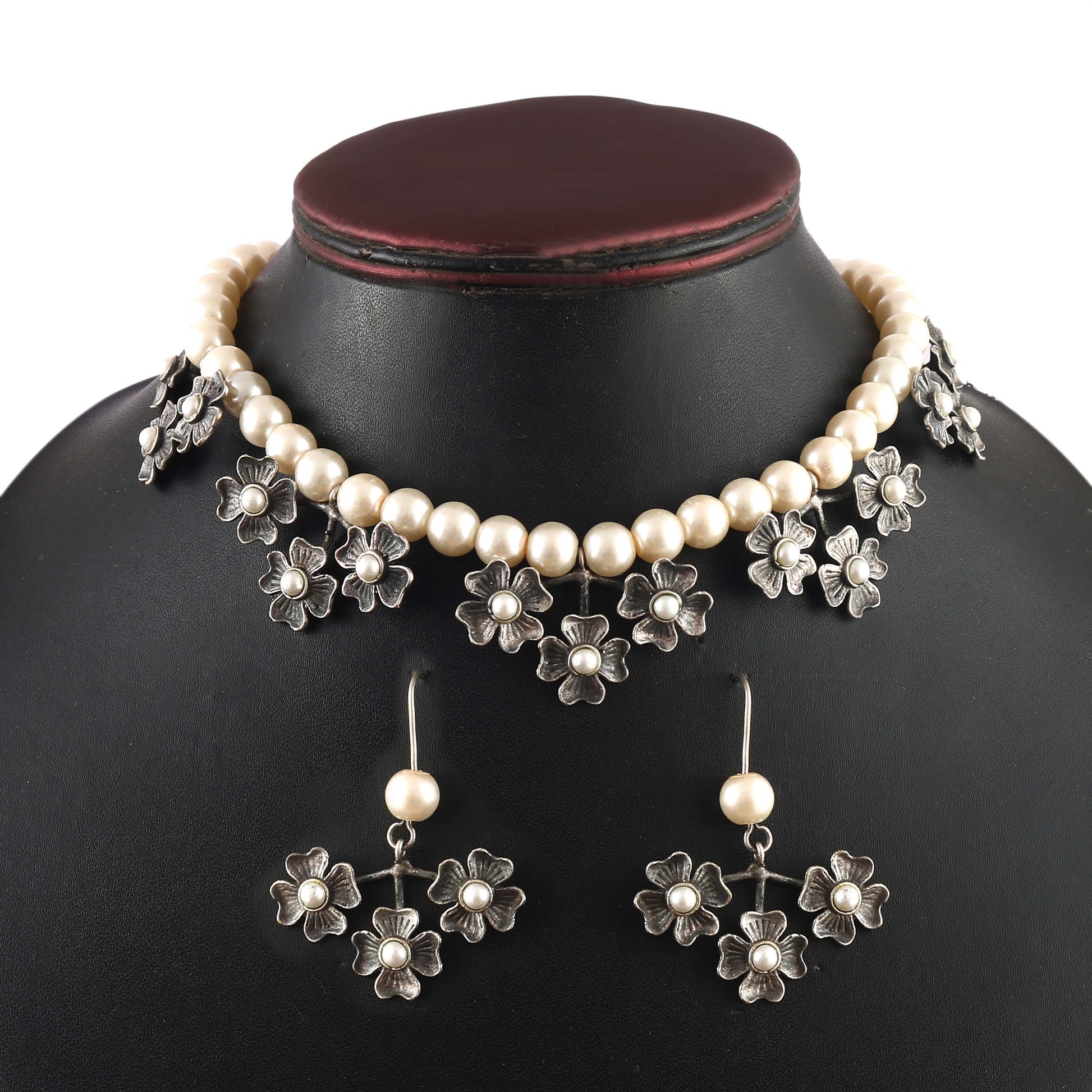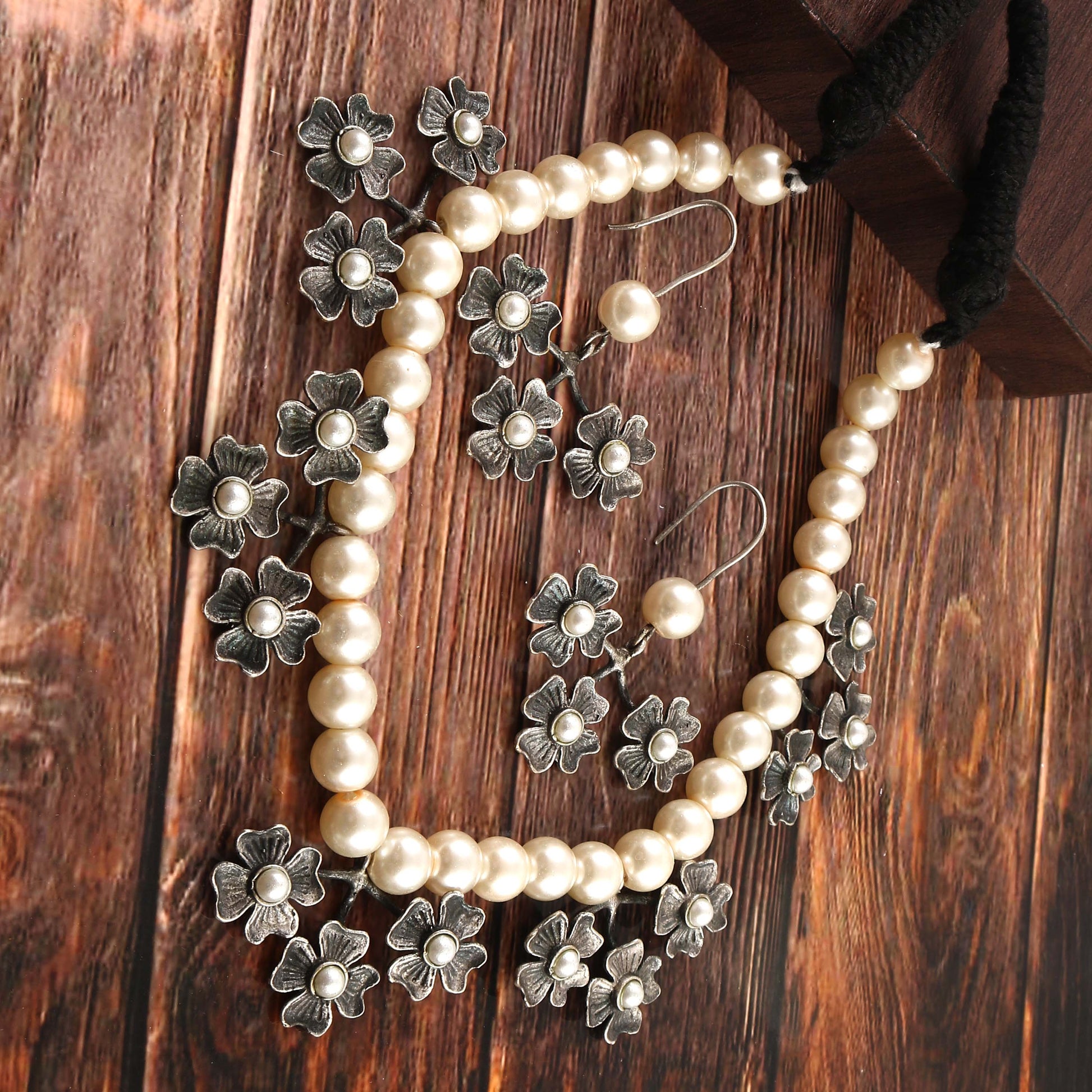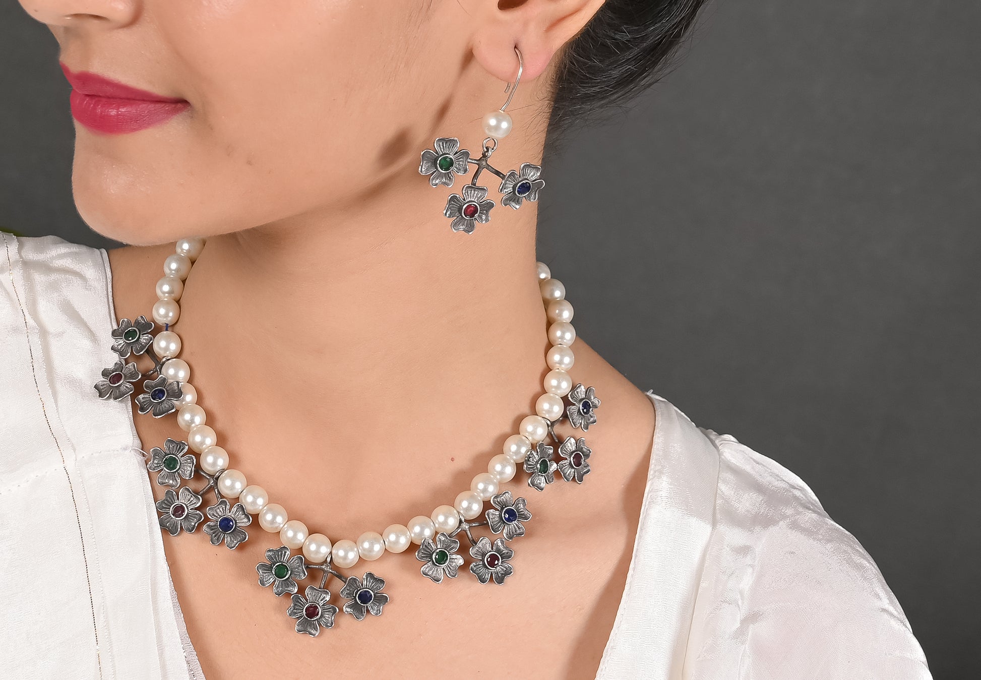 Tanusha Jewels Beautiful Pearl Handmade Necklace Set with 1 Pair of Earrings