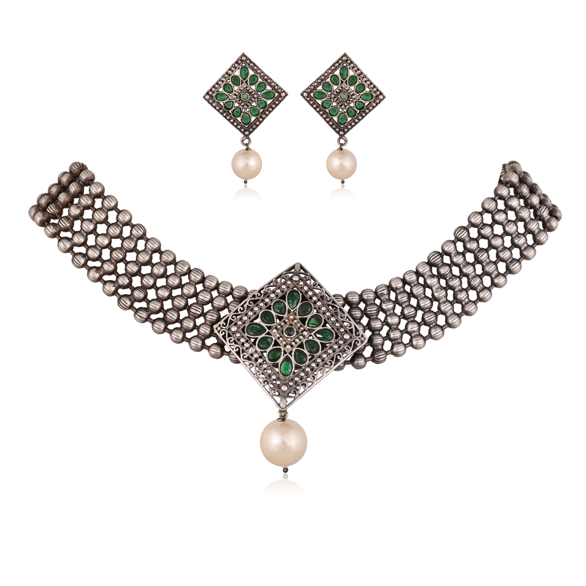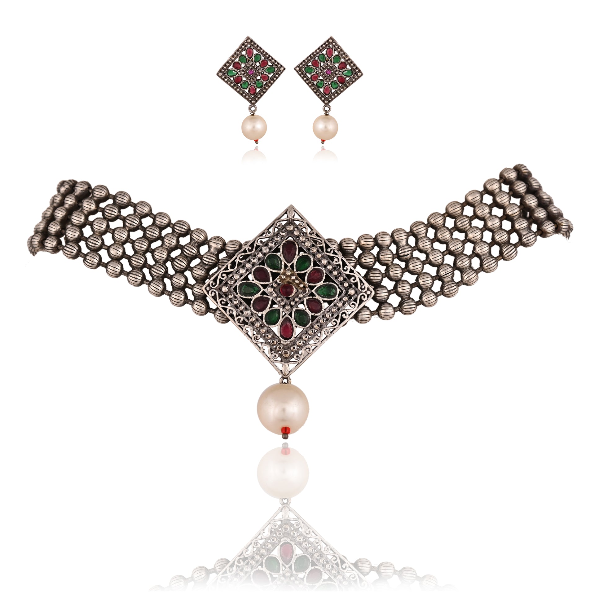 Tanusha Jewels Beautiful Square Choker Jewel Set For Womens