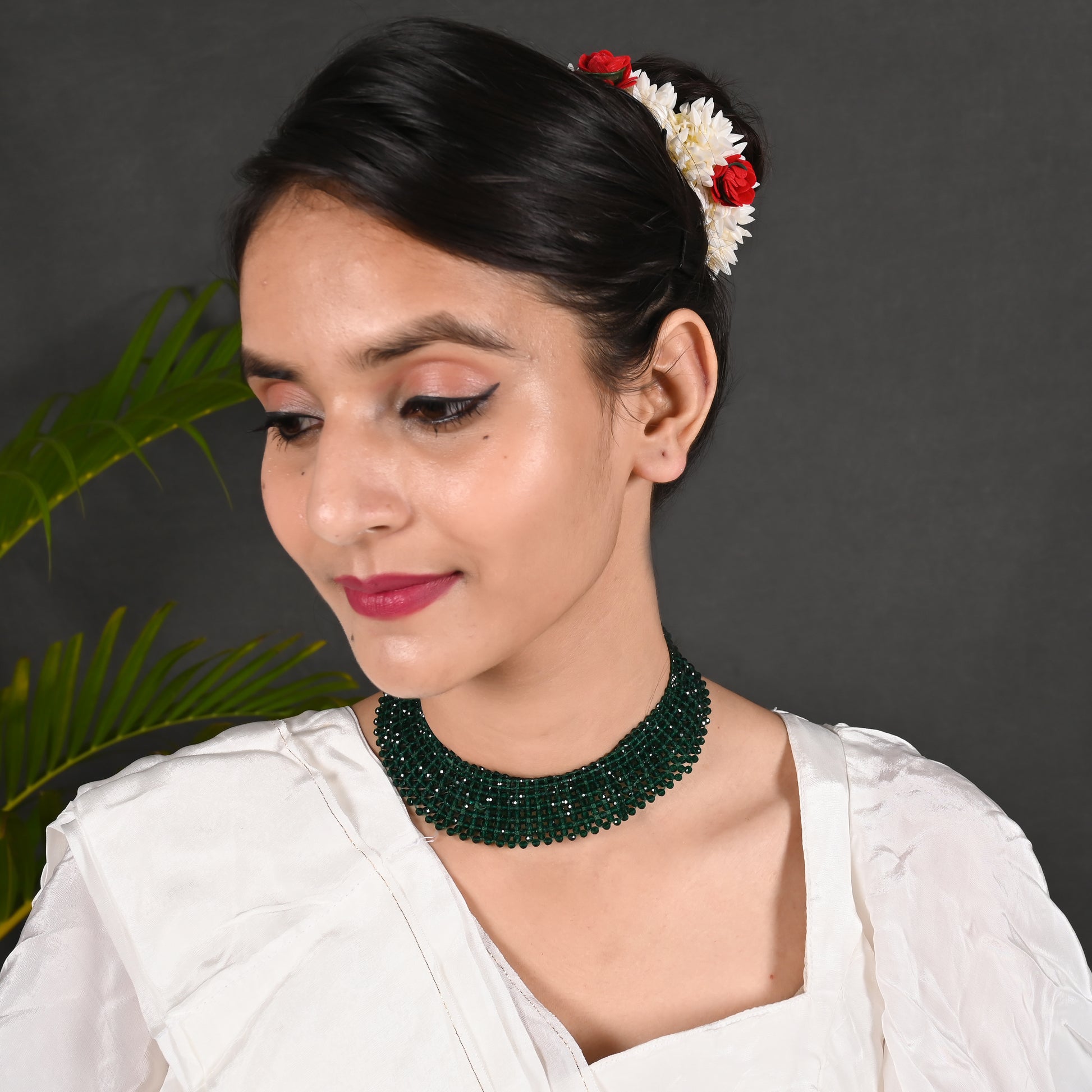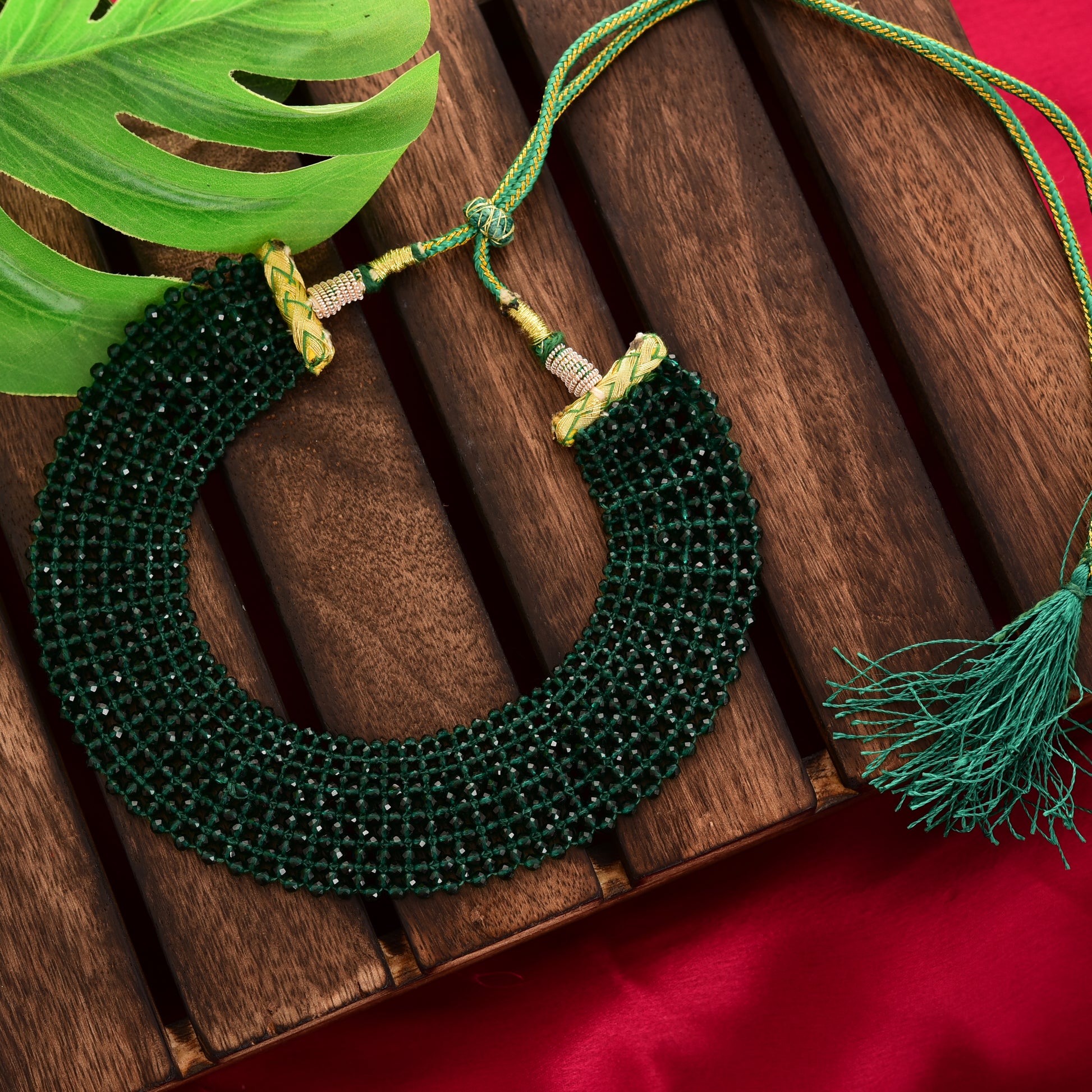 A Simple Yet Fashionable Necklace Will Add that Final Touch To Your Outfit Like You Want . The Choker Length Makes This Necklace The More Beautiful and Excellent Choice For Women's & Girls and Will Compliment Almost Any Neckline . The Necklace is Handmaded With Beads And will Add The Perfect Touch to a Women With a Statement style . It will Go Perfectly With Almost Any Ethnic Or Traditional Wear And is Certainto Attract Attention . There Is No Need To Wear Matching Earings With this Necklace If you want simple look Just Wear this Necklace As a Statement & you will look great . This Jewellery Can be Worn In Different Occassion & Ceremonies Like Mehendi , Haldi , Sangeet , Engagement , Wedding , party Or for Fashion Purposes. It can Also Ne Best Pick For Gifting .