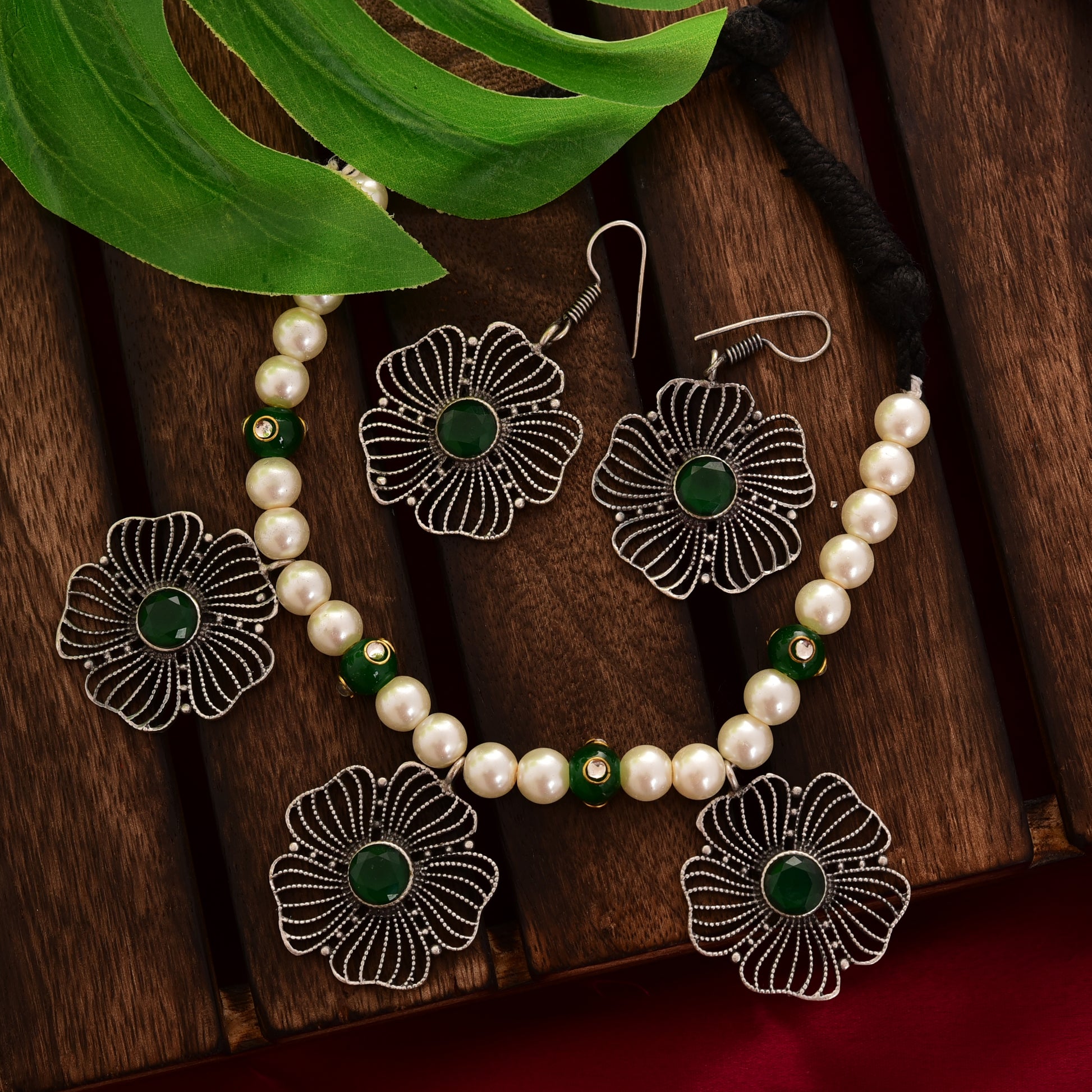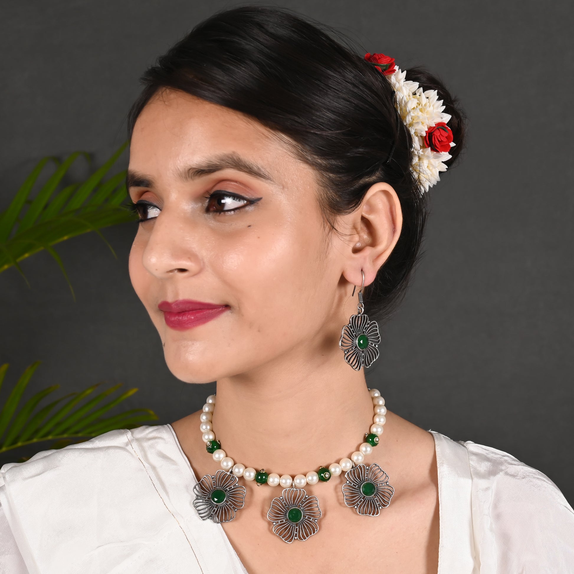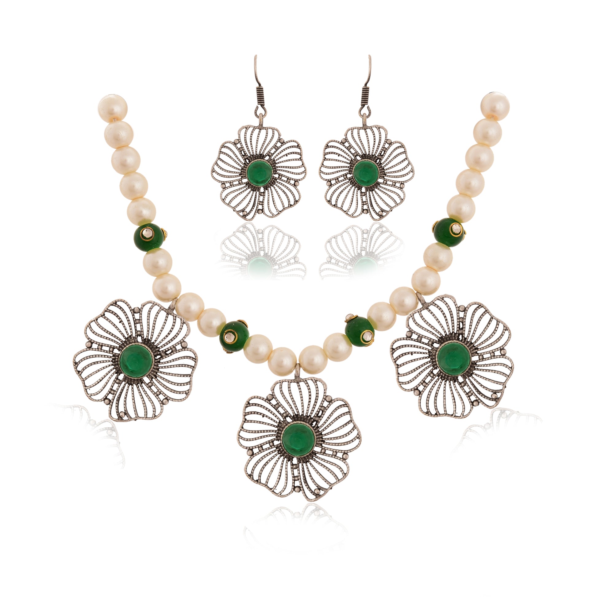 Tanusha Jewels Floral Handmade Brass Jewel Set For womens