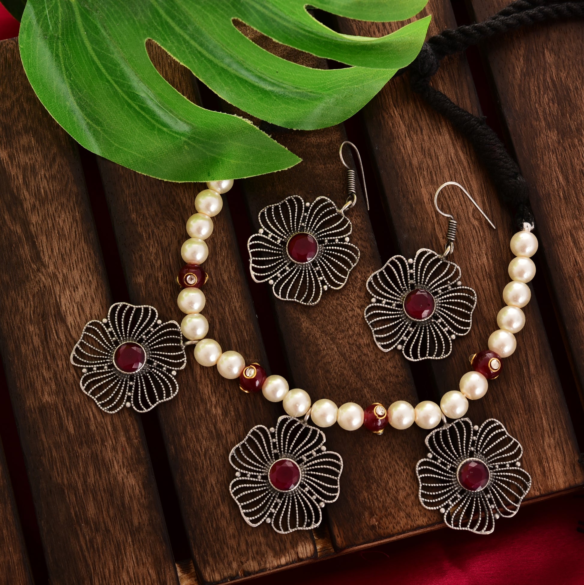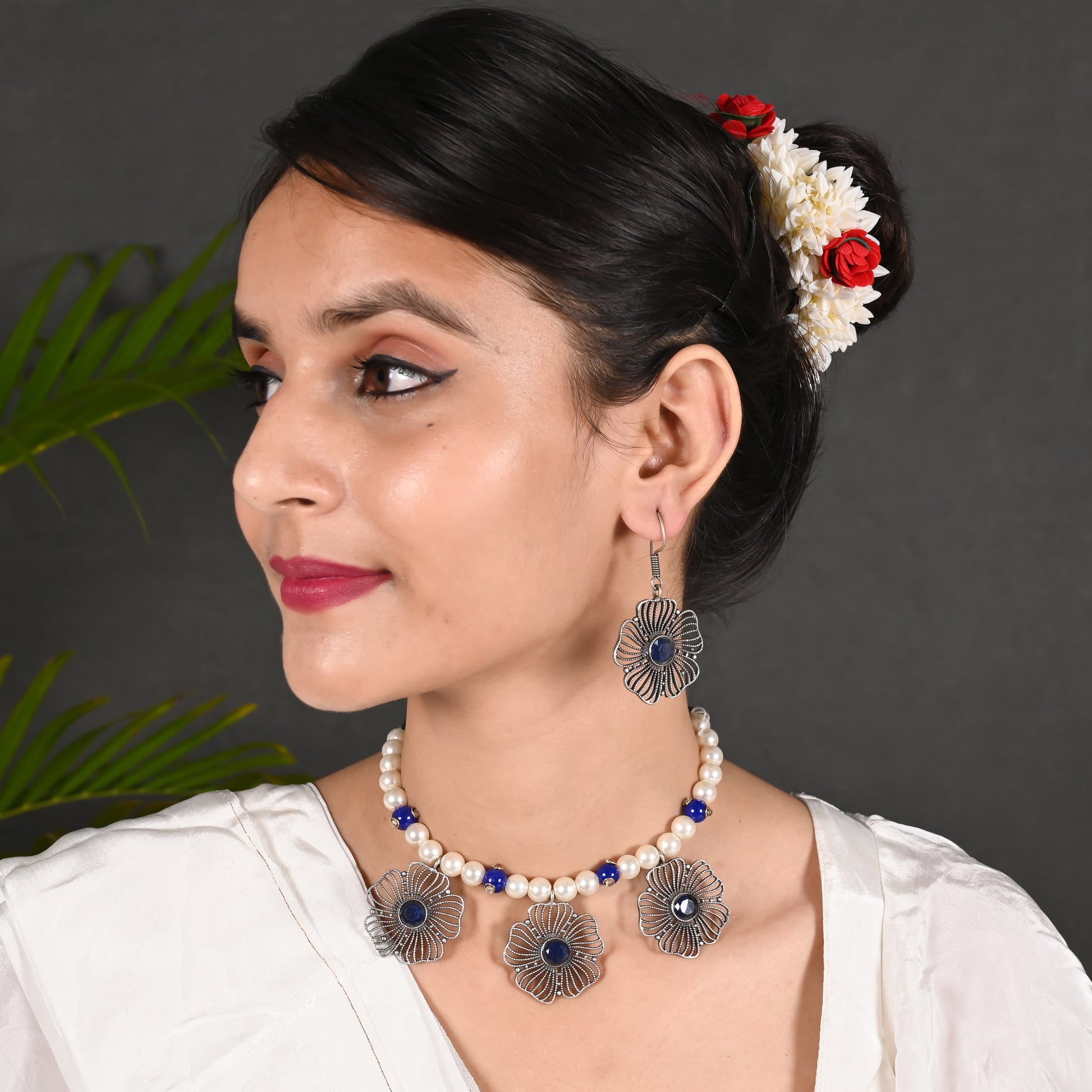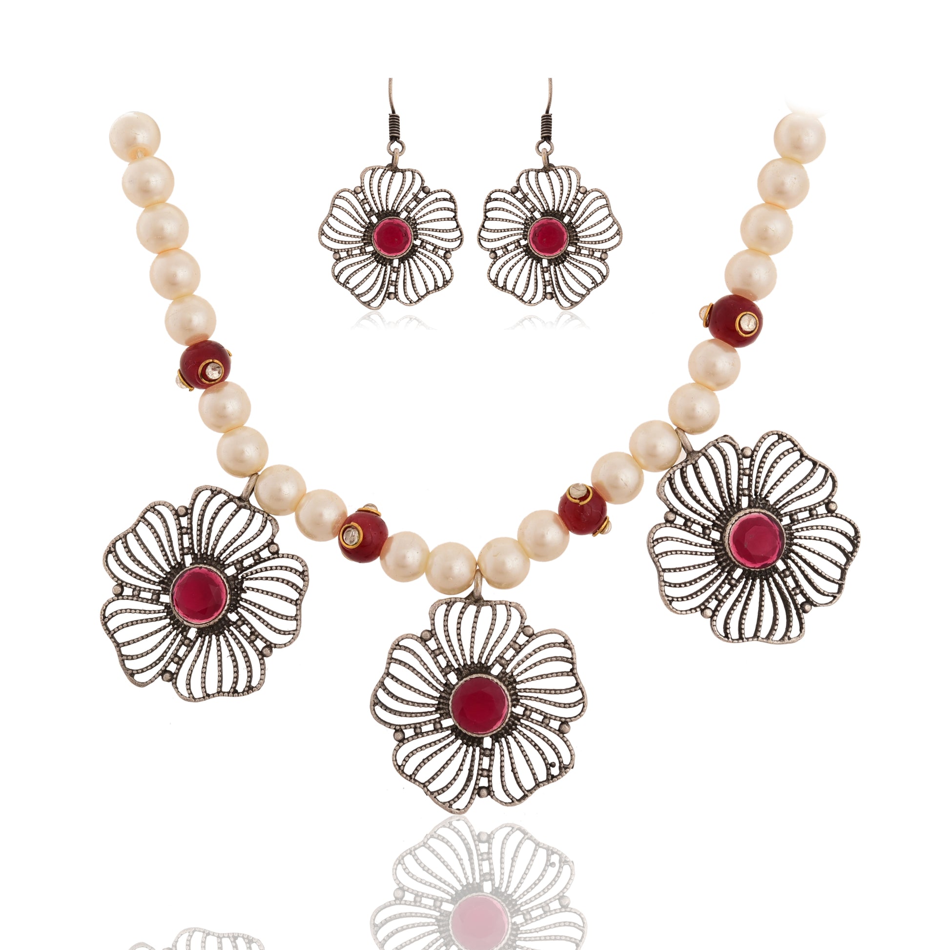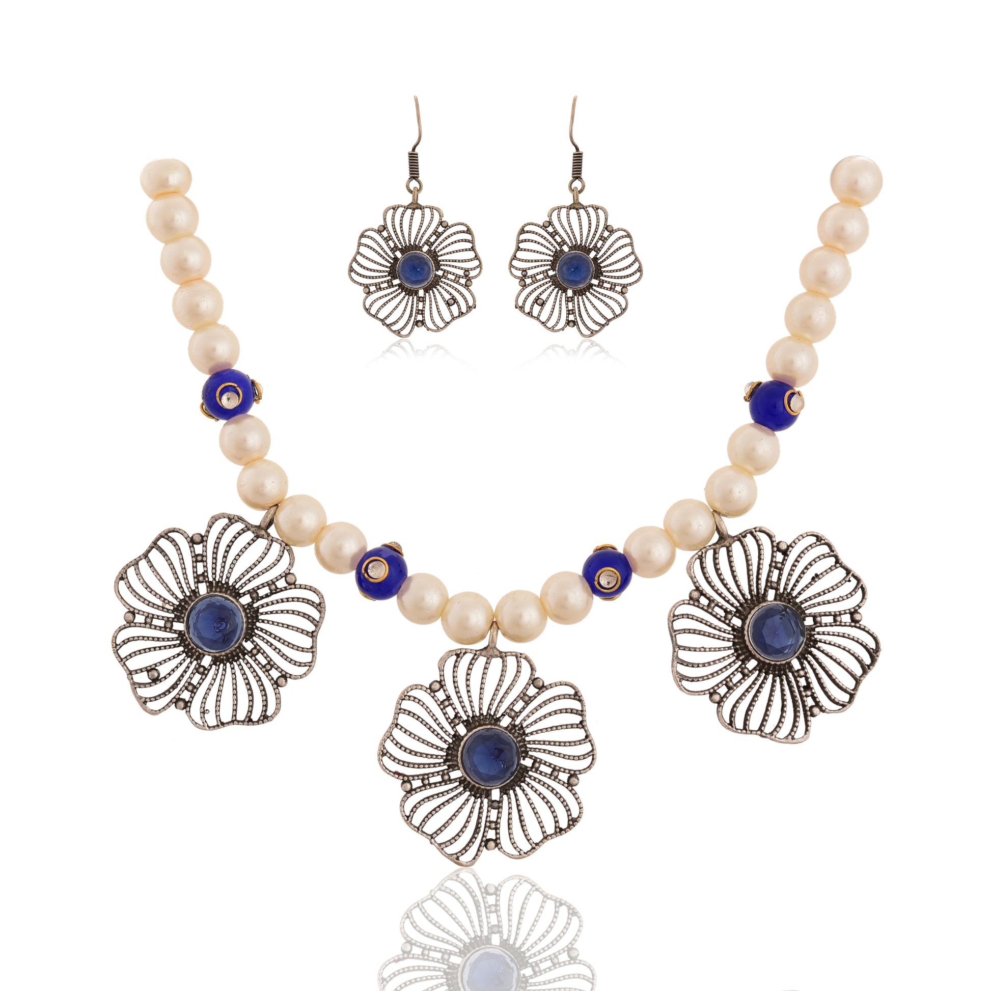 Tanusha Jewels Floral Handmade Brass Jewel Set For womens