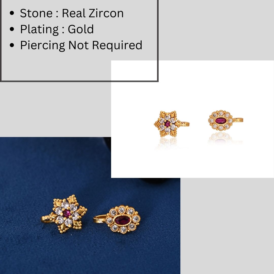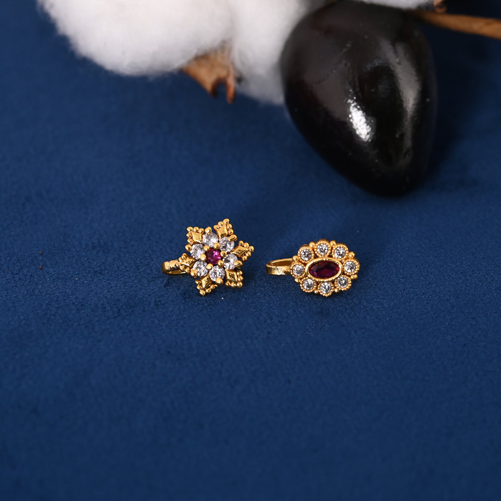 Tanusha Jewels Gold Plated Clip-On Nosepin-Set for womens and girls || Pack of 2