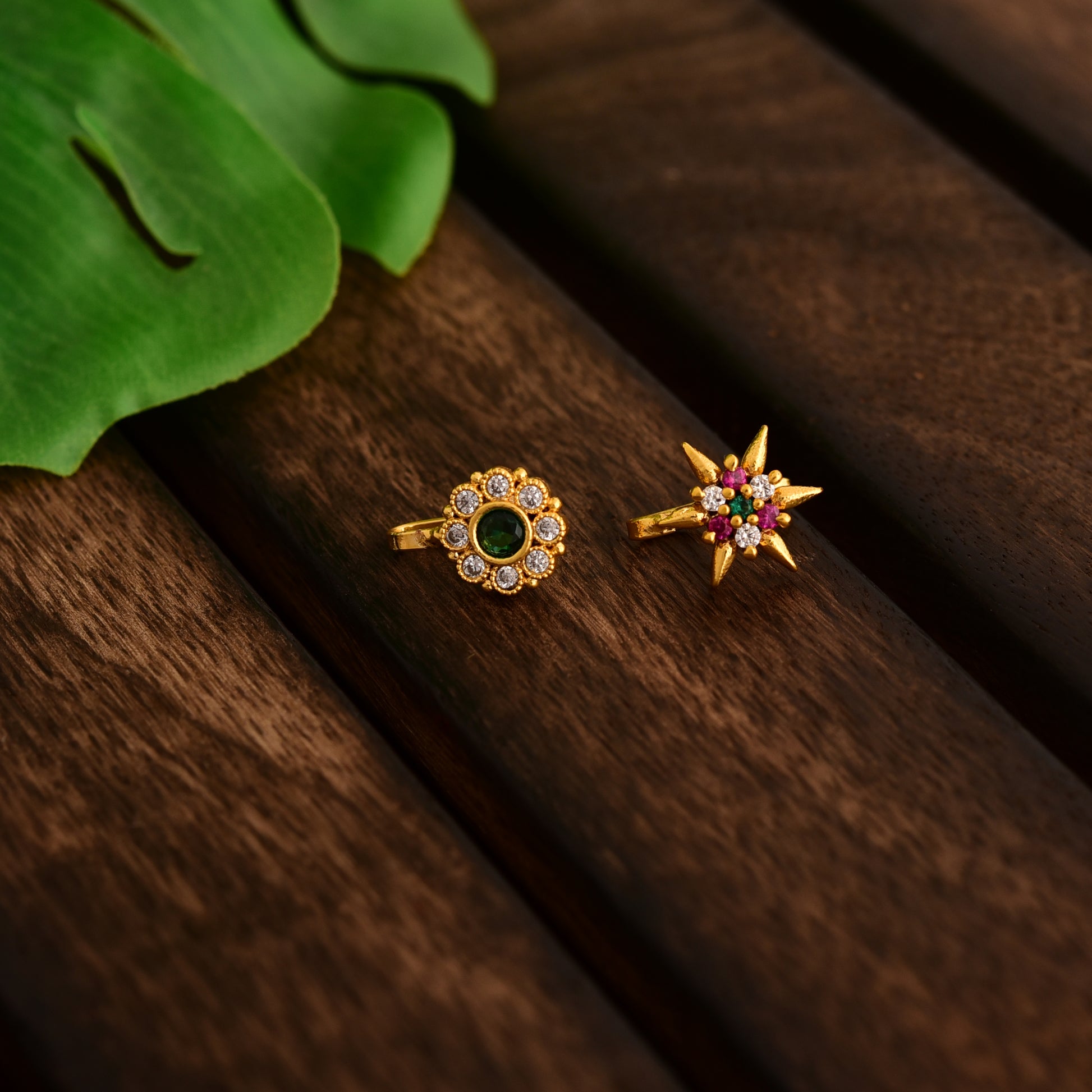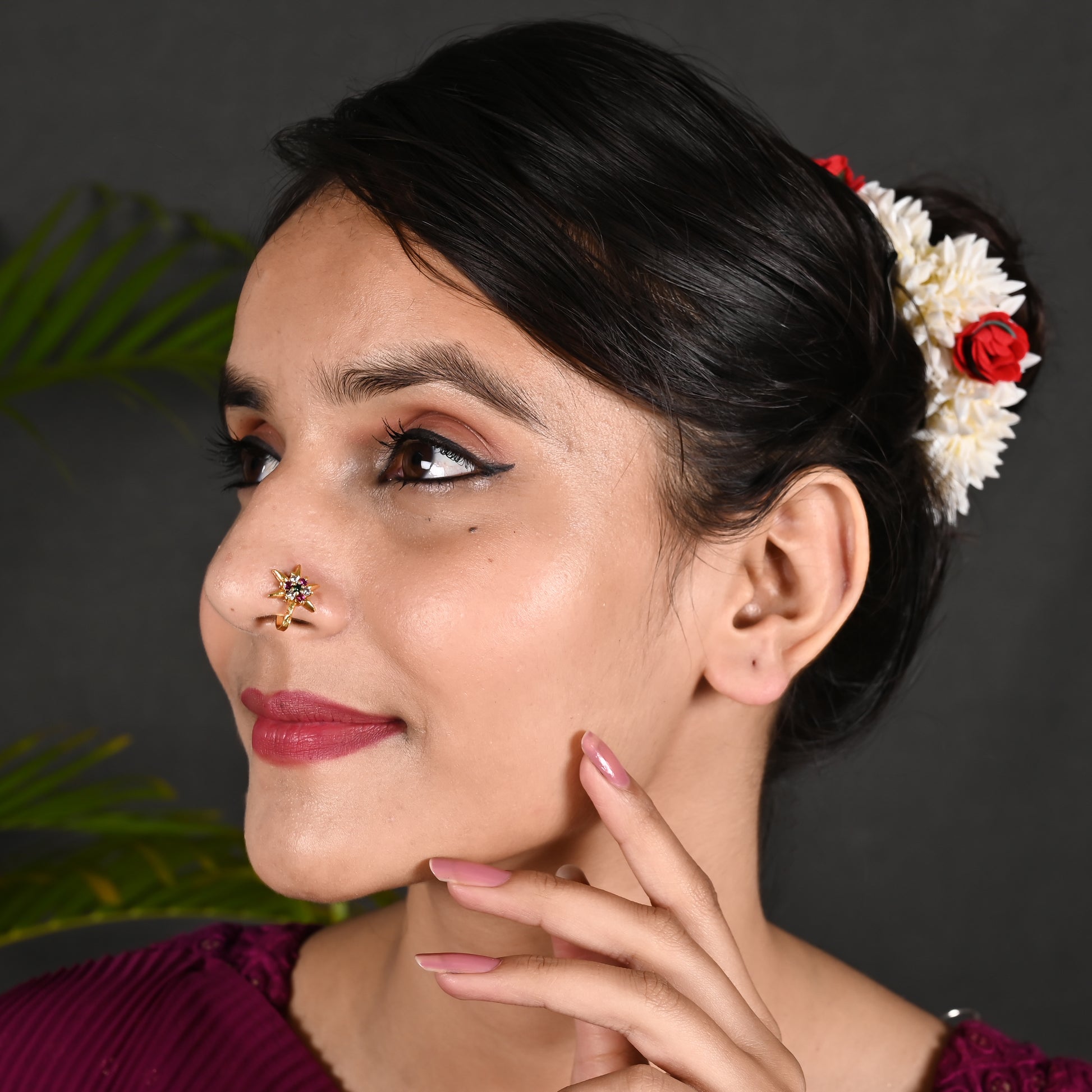 Traditional Gold-Plated nose Pin will Enhance your look. An easy-to-wear design that is available in different shapes. Clip On Oxidised nose pin without piercing for weddings , Parties , engagement , Festivals . An Indian Beautiful Lady Knows the Importance of Nosepin in Their Daily Fashion. . This Nose stud pack is for those Girls women or Ladies who are updated with the Trending Fashion.