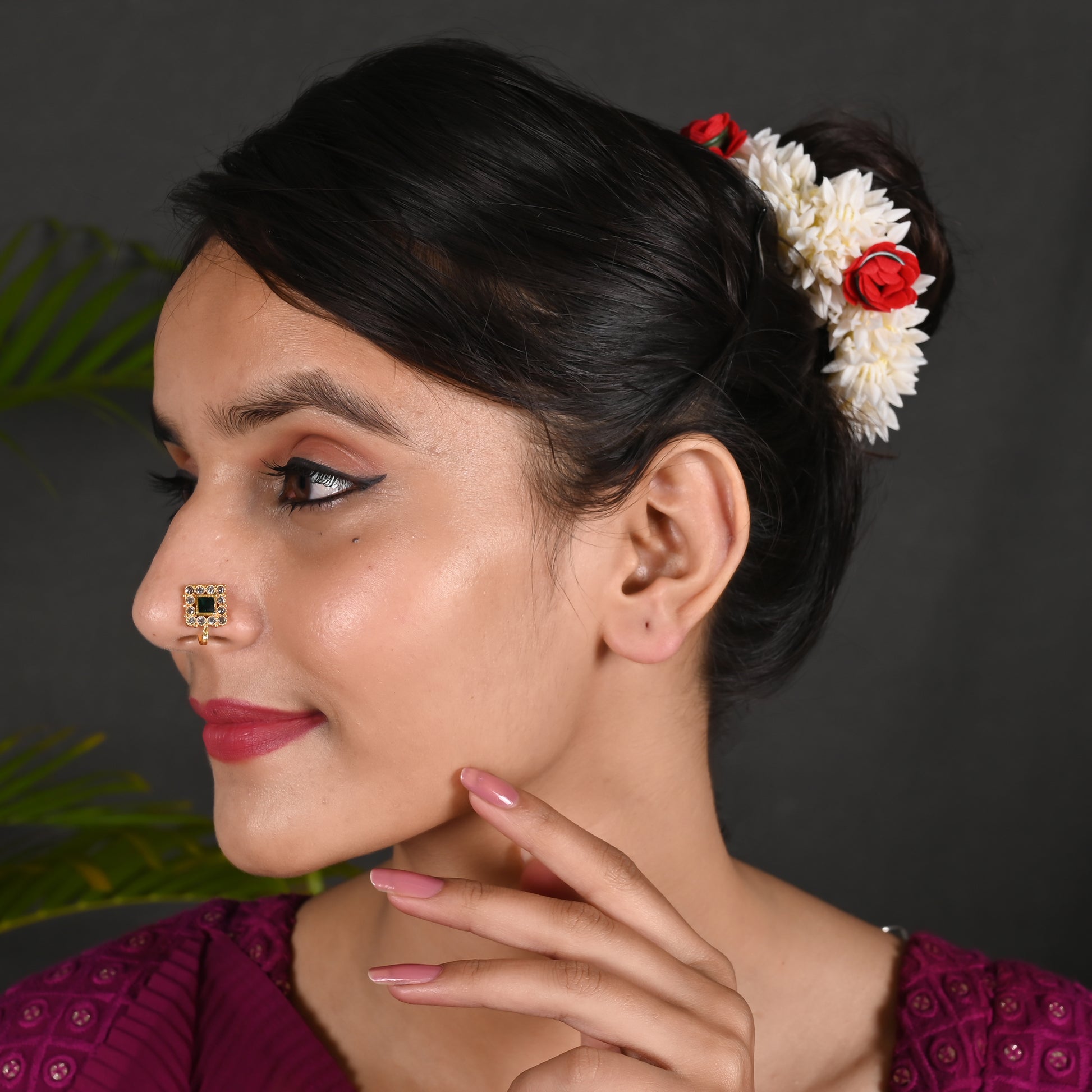 Traditional Gold-Plated nose Pin will Enhance your look. An easy-to-wear design that is available in different shapes. Clip On Oxidised nose pin without piercing for weddings , Parties , engagement , Festivals . An Indian Beautiful Lady Knows the Importance of Nosepin in Their Daily Fashion. . This Nose stud pack is for those Girls women or Ladies who are updated with the Trending Fashion.