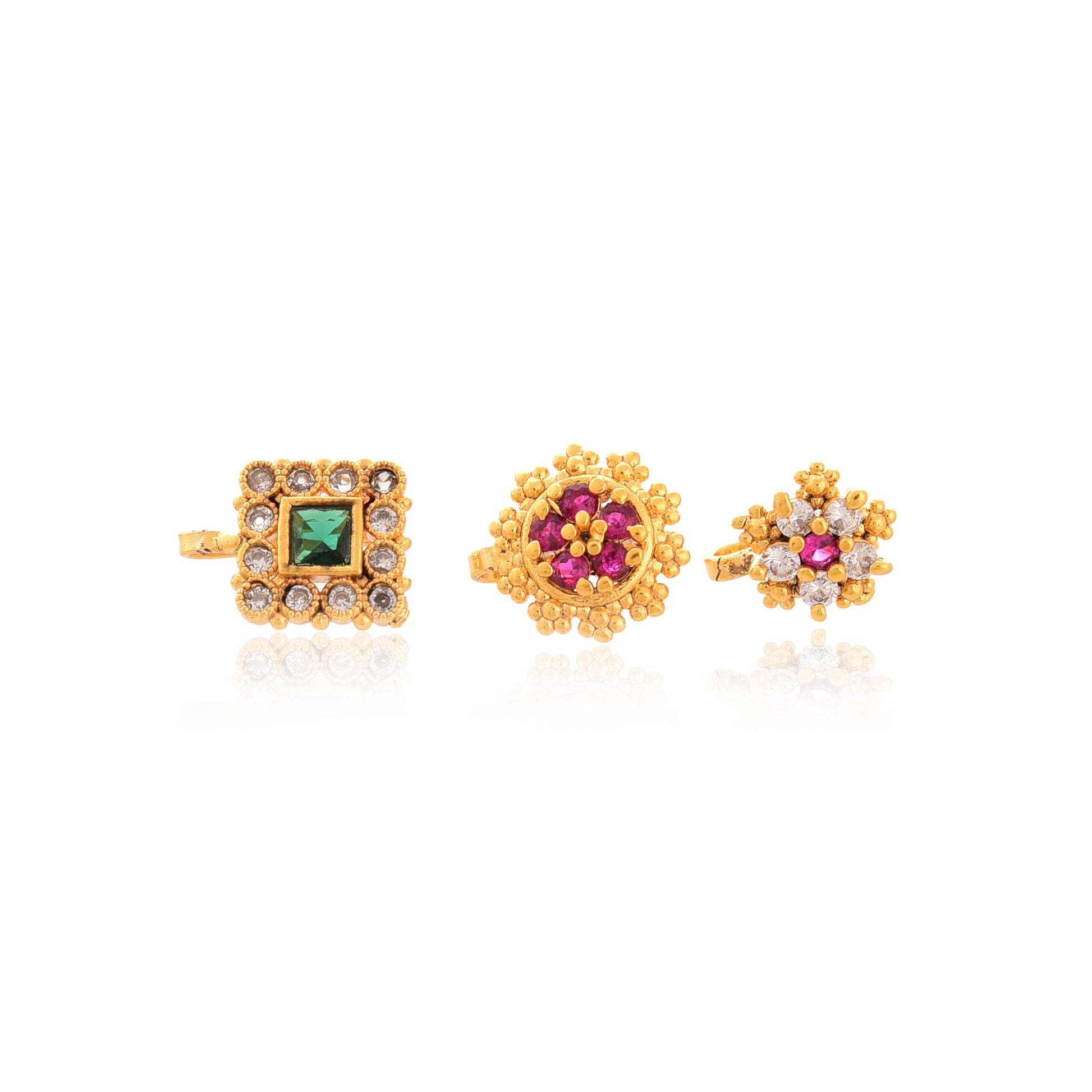 Tanusha Jewels Gold Plated Clip-On Nosepin-Set for womens (Pack Of 3)