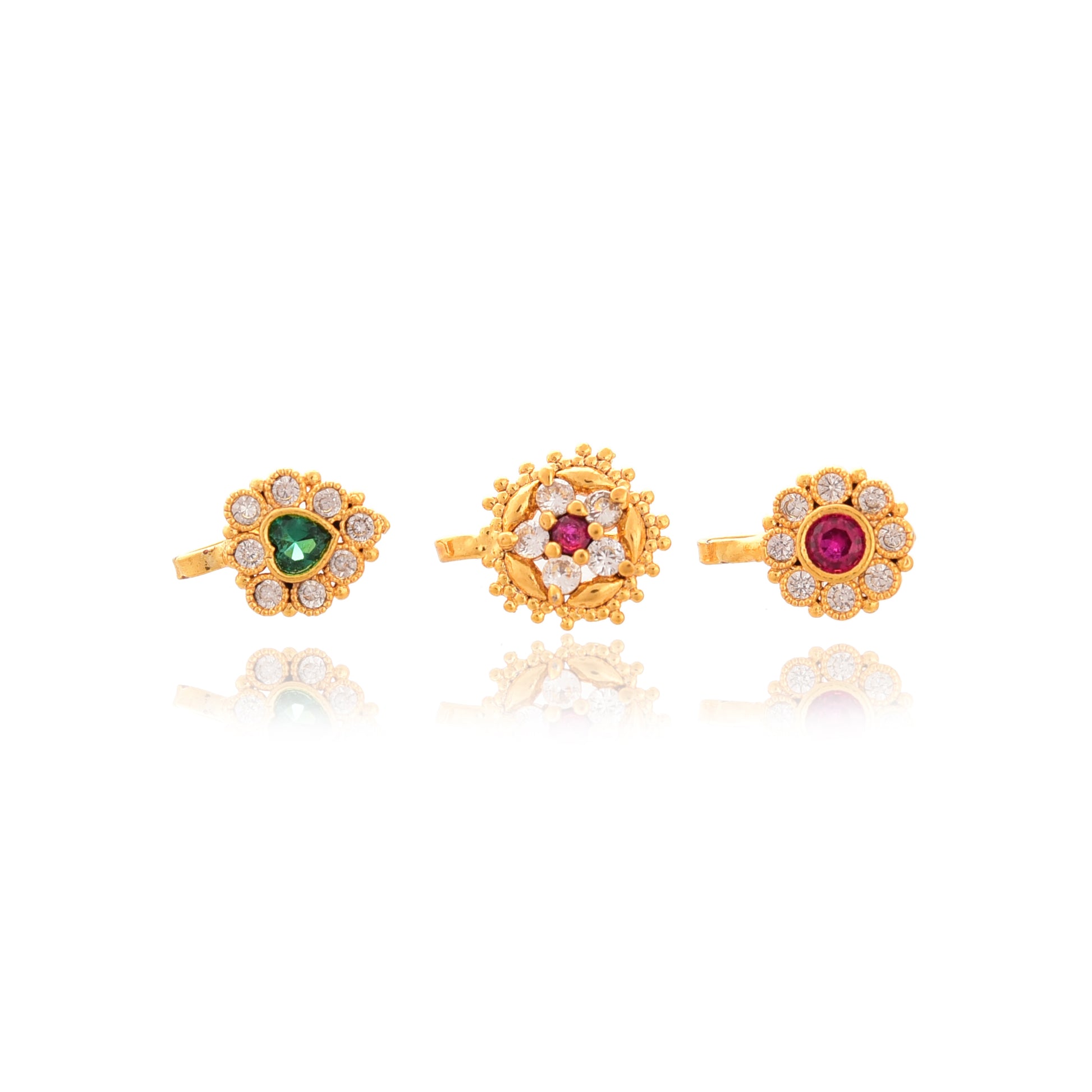 Tanusha Jewels Gold Plated Clip-On Nosepin-Set for womens (Pack of 3)