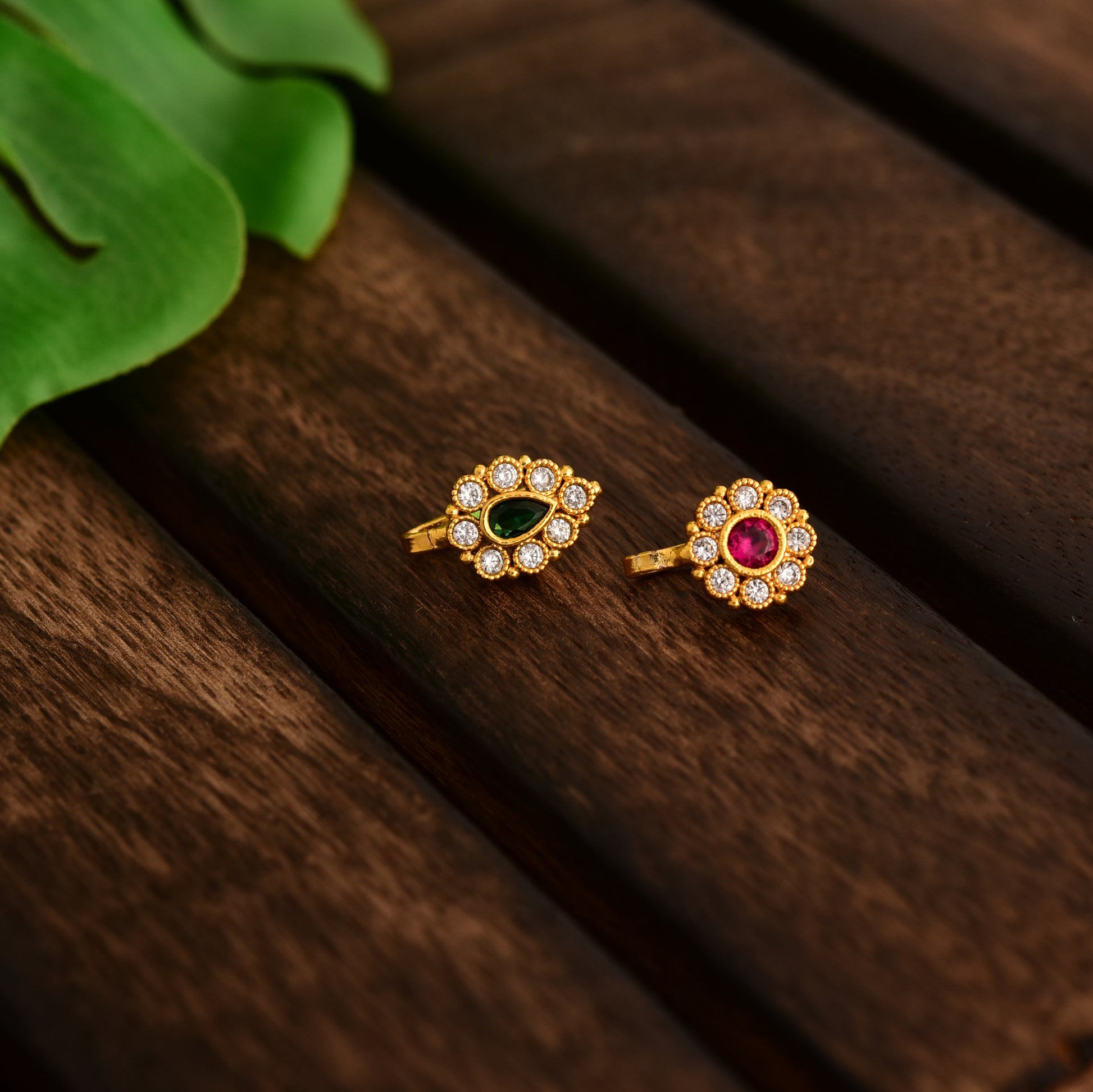 Tanusha Jewels Gold Plated Clip-On Nosepin-Set for womens (Pack of 2)