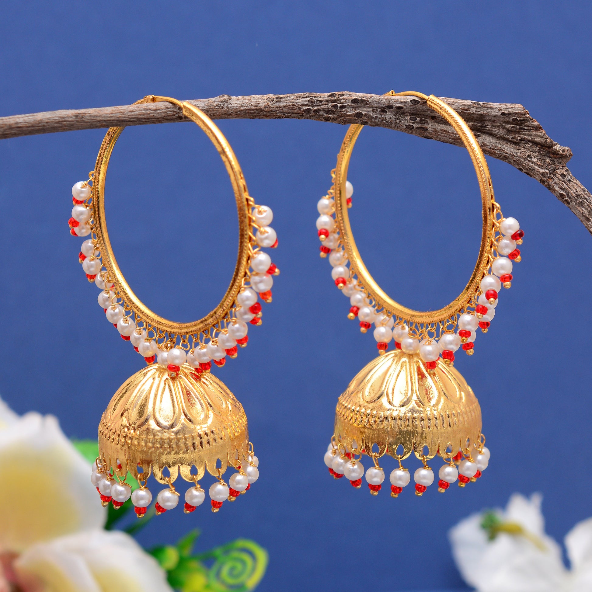 Tanusha Jewels Gold-Plated Pearl Hoop Jhumki Earrings (Gold)