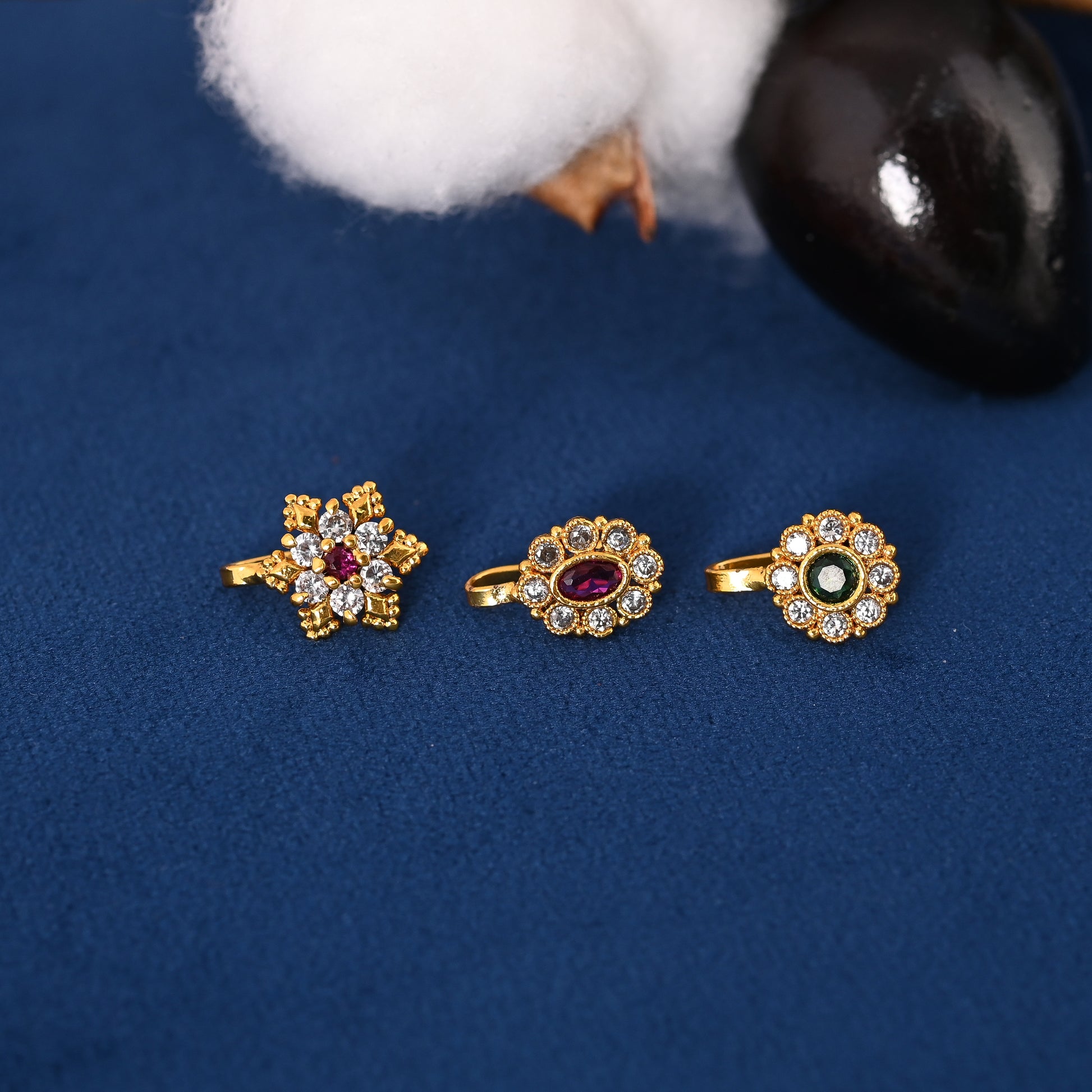 Tanusha Jewels Gold Plated Zircon Clip-On Nosepin-Set for womens (Pack of 3)