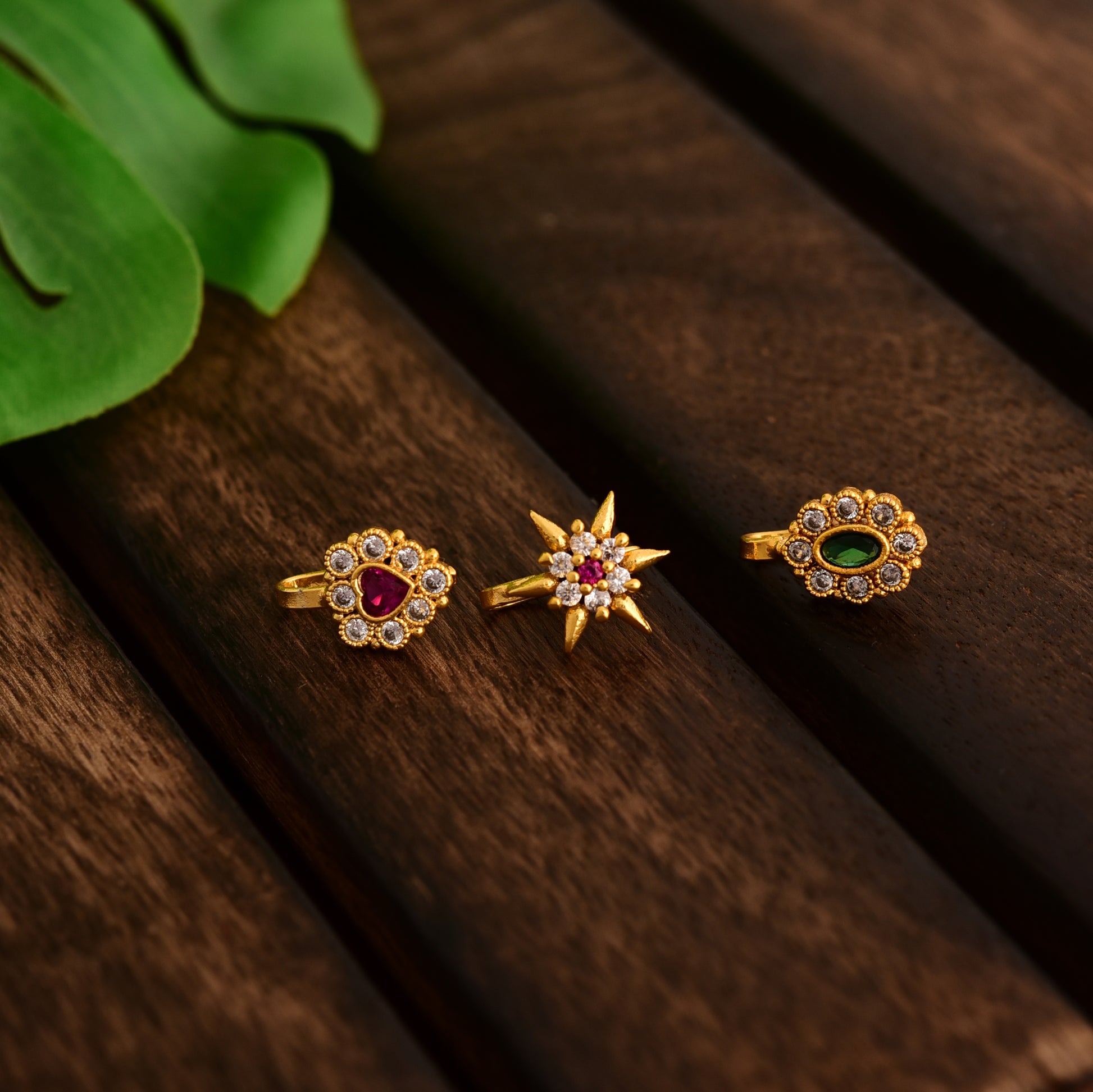 Tanusha Jewels Gold Plated Zircon Studded Clip-On Nosepin-Set for womens (Pack Of 3)