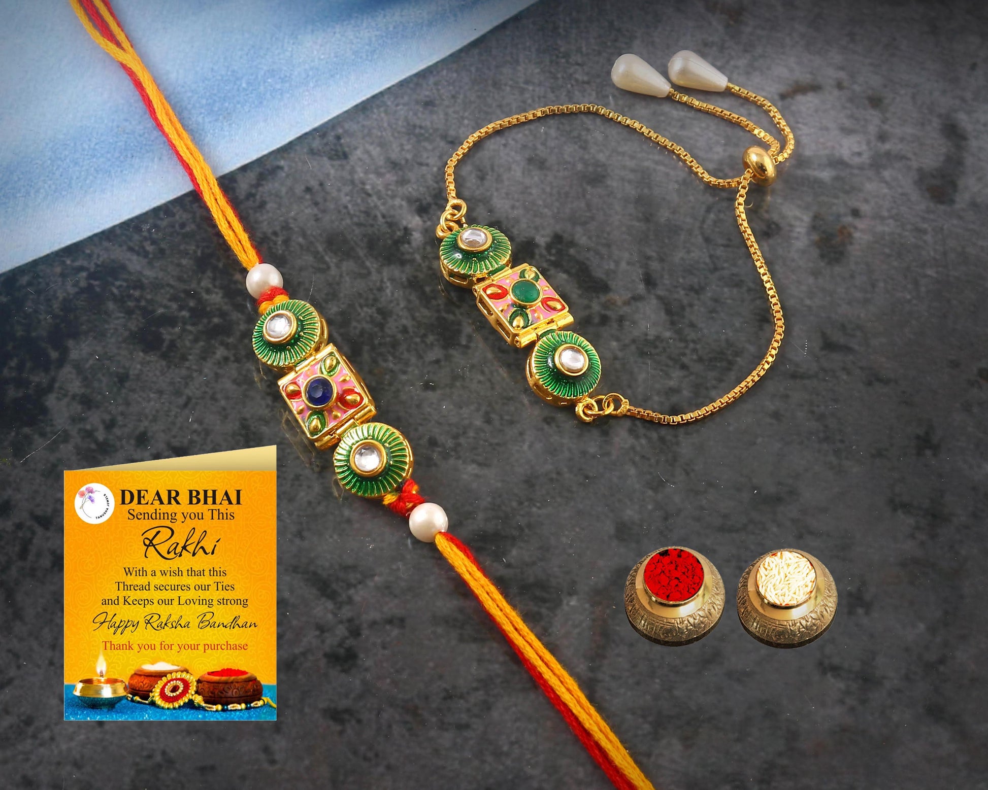Tanusha Jewels Multicolour Designer Bhaiya & Bhabhi Rakhi Set