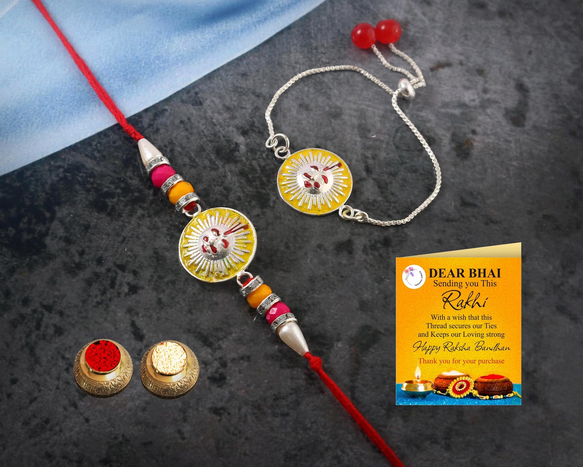 Tanusha Jewels Multicolour Meenakari Work Pearl Bhaiya & Bhabhi Rakhi Set