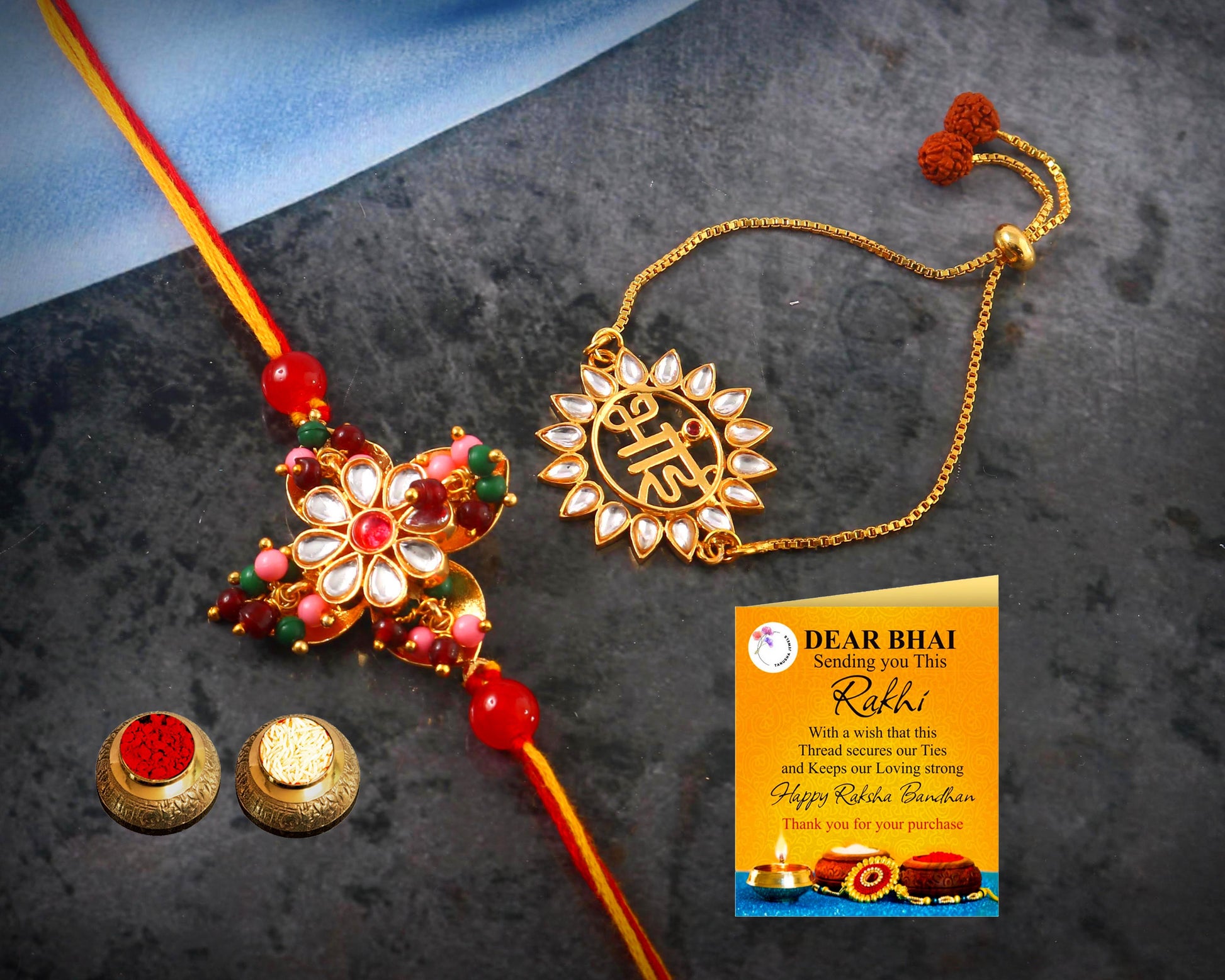 Tanusha Jewels Multicolour Designer Bhaiya & Bhabhi Rakhi Set