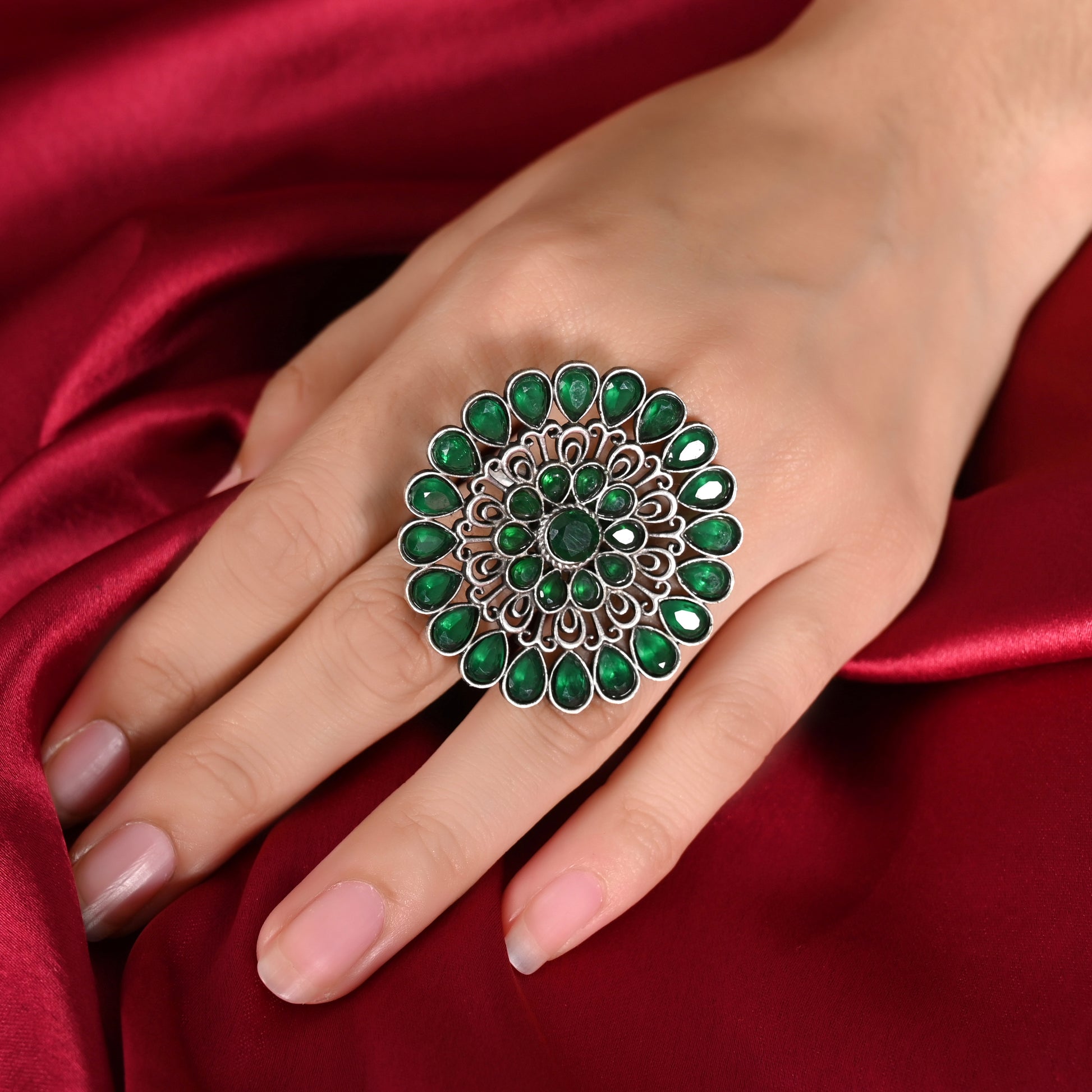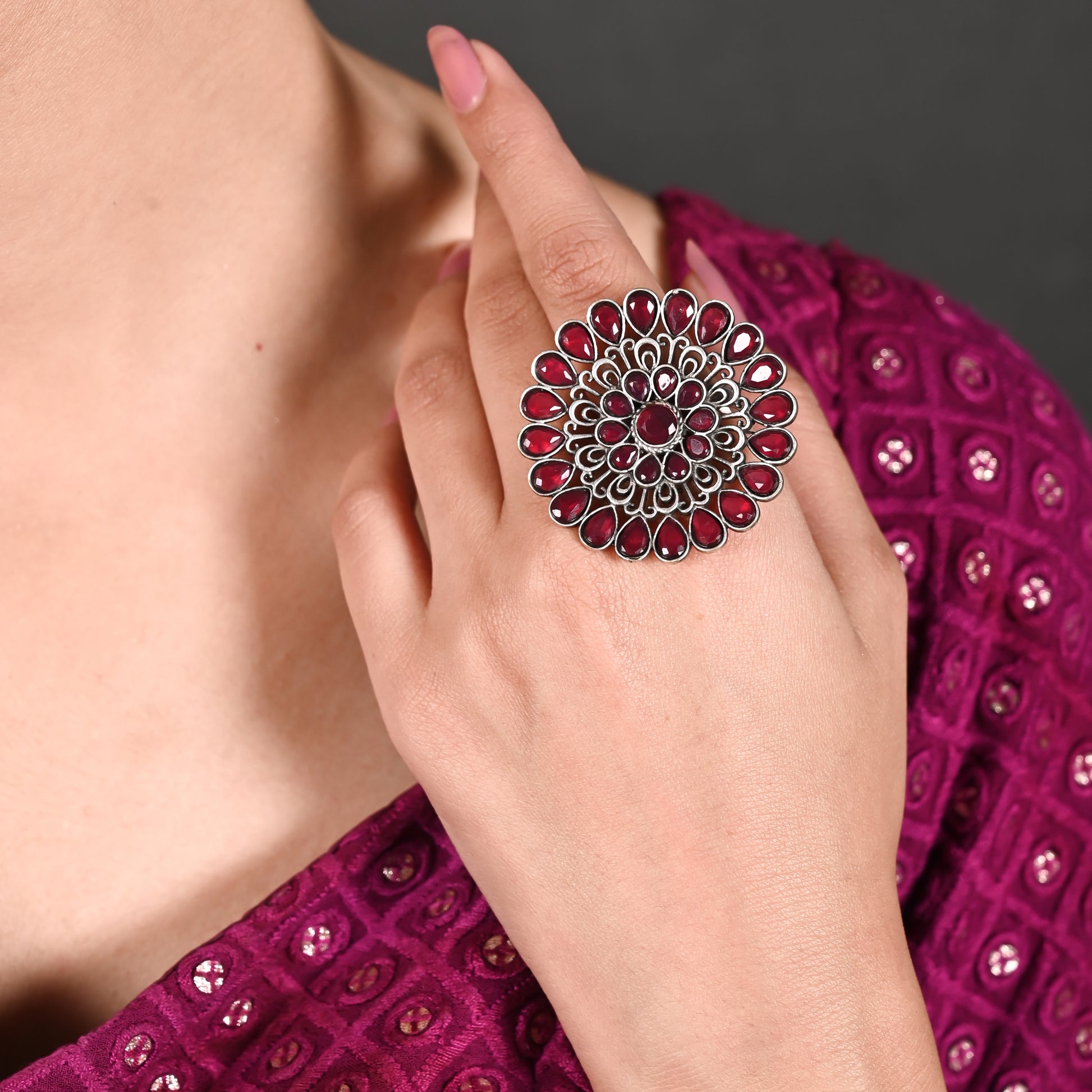 Tanusha Jewels Oxidised Brass Adjustable Ring For Womens & Girls