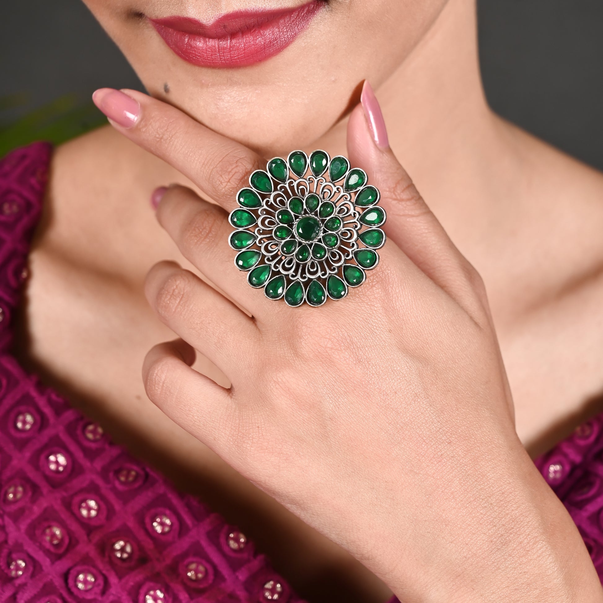 The Ring is Adjustable and can resize into any size . Pair it with Traditional Outfit like Saree , Kurtis , Lehengas etc. This Jewellery Can be Worn In Different Occassion & Ceremonies Like Mehendi , Haldi , Sangeet , Engagement , Wedding , party Or for Fashion Purposes.It can Also Ne Best Pick For Gifting .