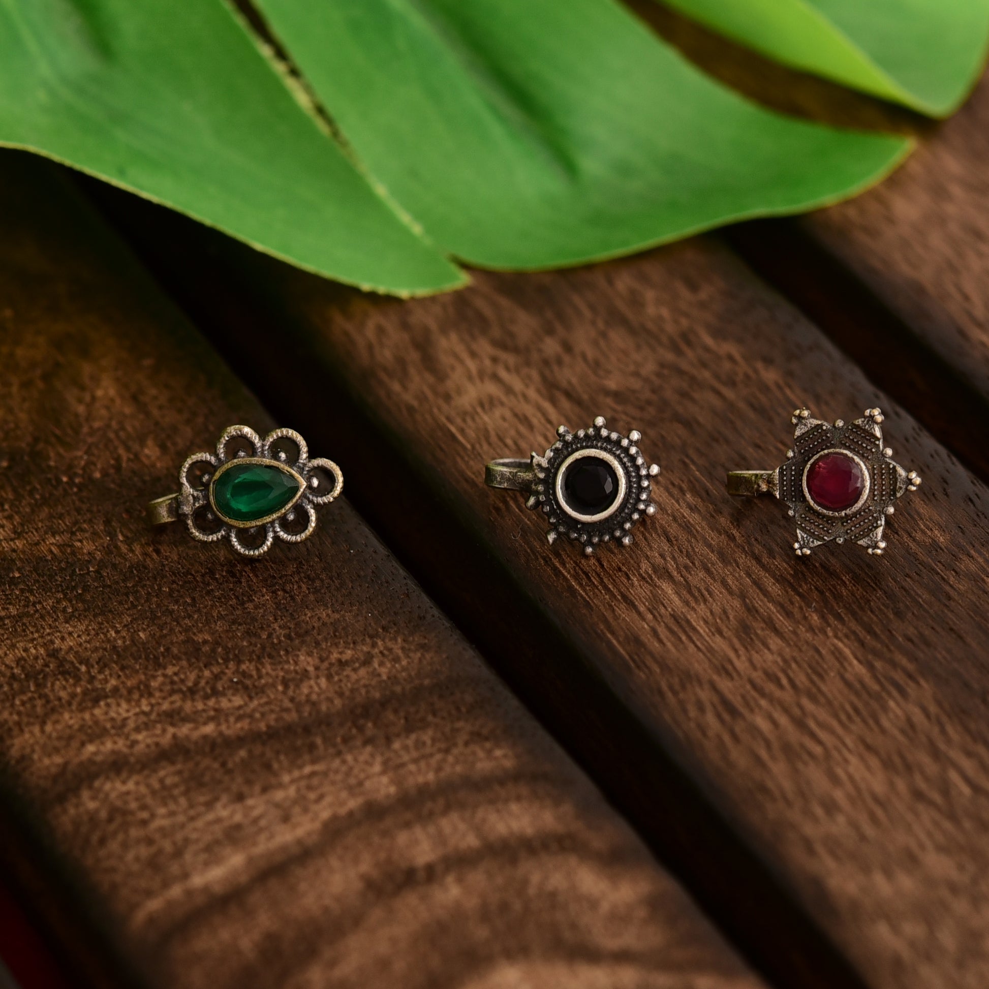 Tanusha Jewels Oxidised Clip-On Nosepin Set for womens and girls (Pack of 3)