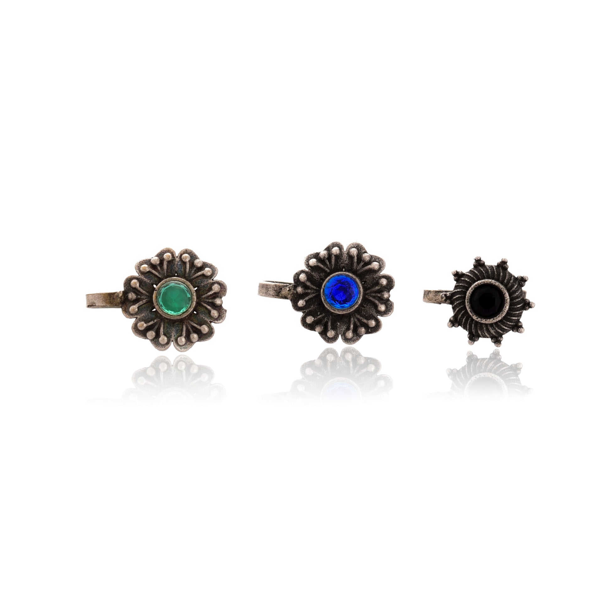 Tanusha Jewels Oxidised Clip On Nosepin Set for womens || (Multicolour) || Pack of 3