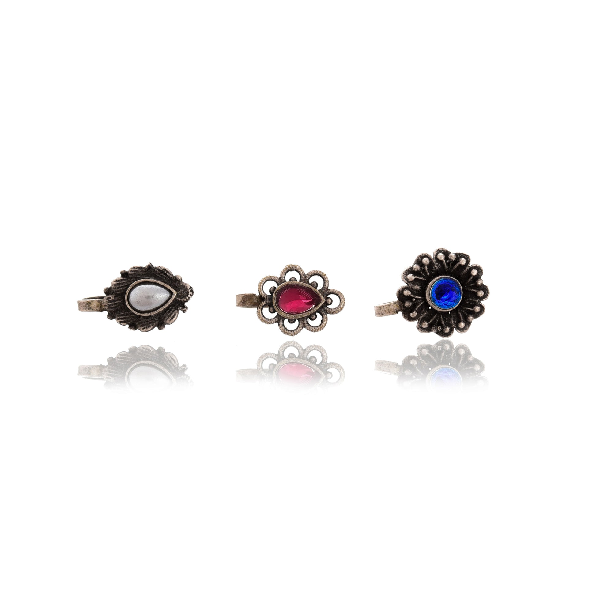 Tanusha Jewels Oxidised Clip On Nosepin Set || Multicolour || Pack of 3