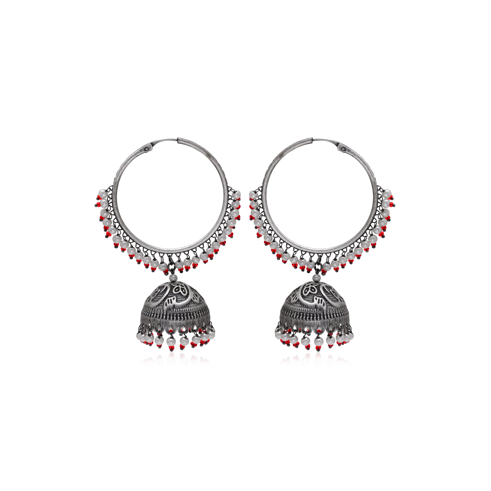 Tanusha Jewels Oxidised Hoop Jhumki Earrings For Womens
