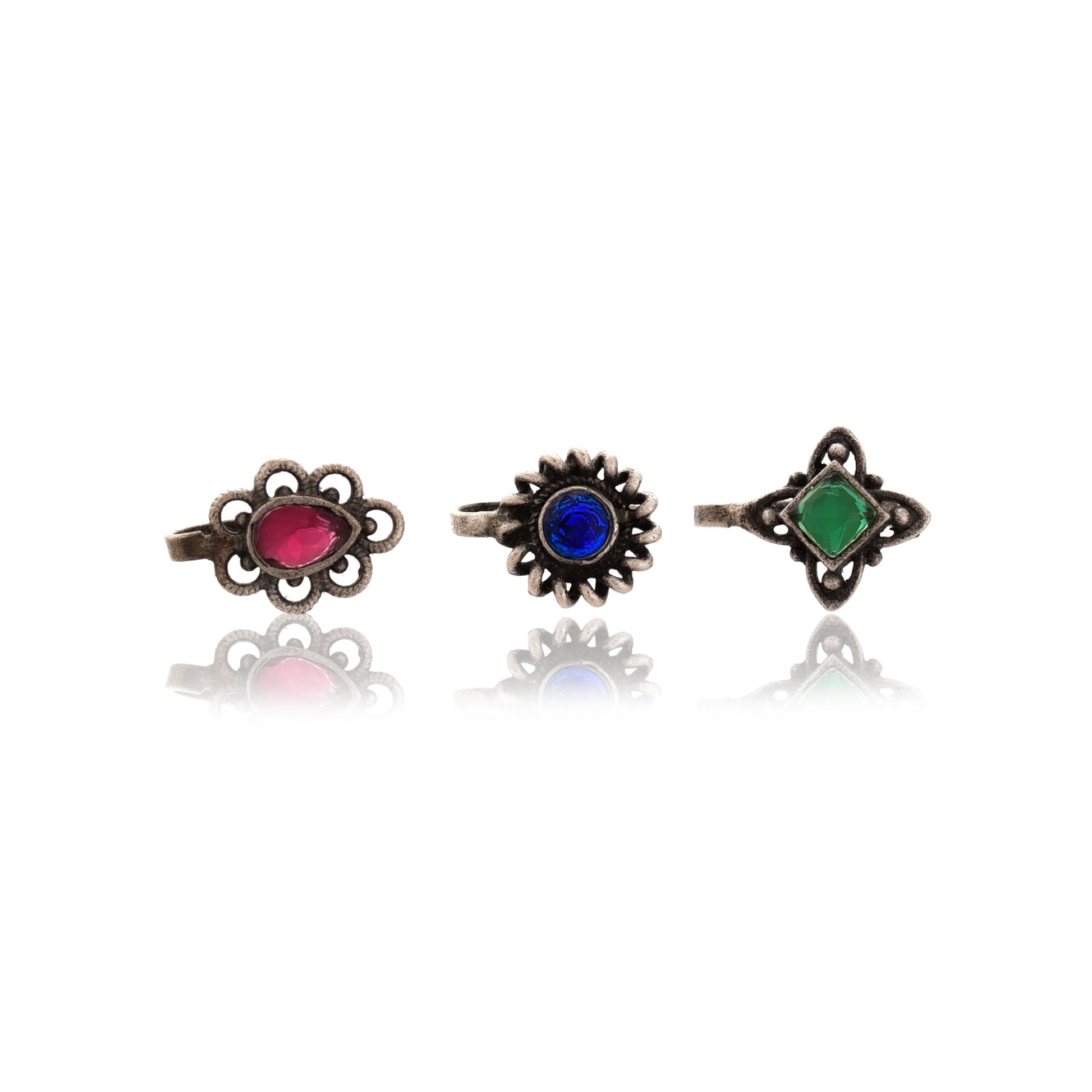 Traditional oxidized nose Pin Nath will Enhance your look. An easy-to-wear design that is available in different shapes. Clip On Oxidised nose pin without piercing for weddings , Parties , engagement , Festivals . An Indian Beautiful Lady Knows the Importance of Nosepin in Their Daily Fashion. . This Nose stud pack is for those Girls women or Ladies who are updated with the Trending Fashion. These Handcrafted Oxidized German Silver Plated Handmade Nose clips, Nose Pin, Nose Rings & Stud without piercing for women are Adjustable and Easy To wear.