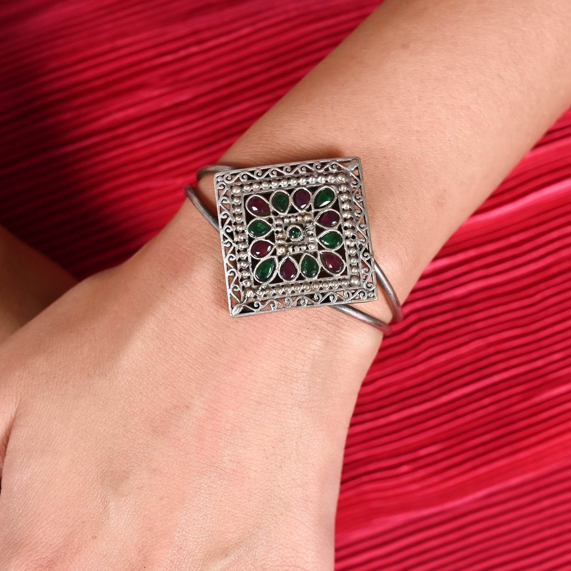 Tanusha Jewels Oxidised Square Bangles with Adjustable Size
