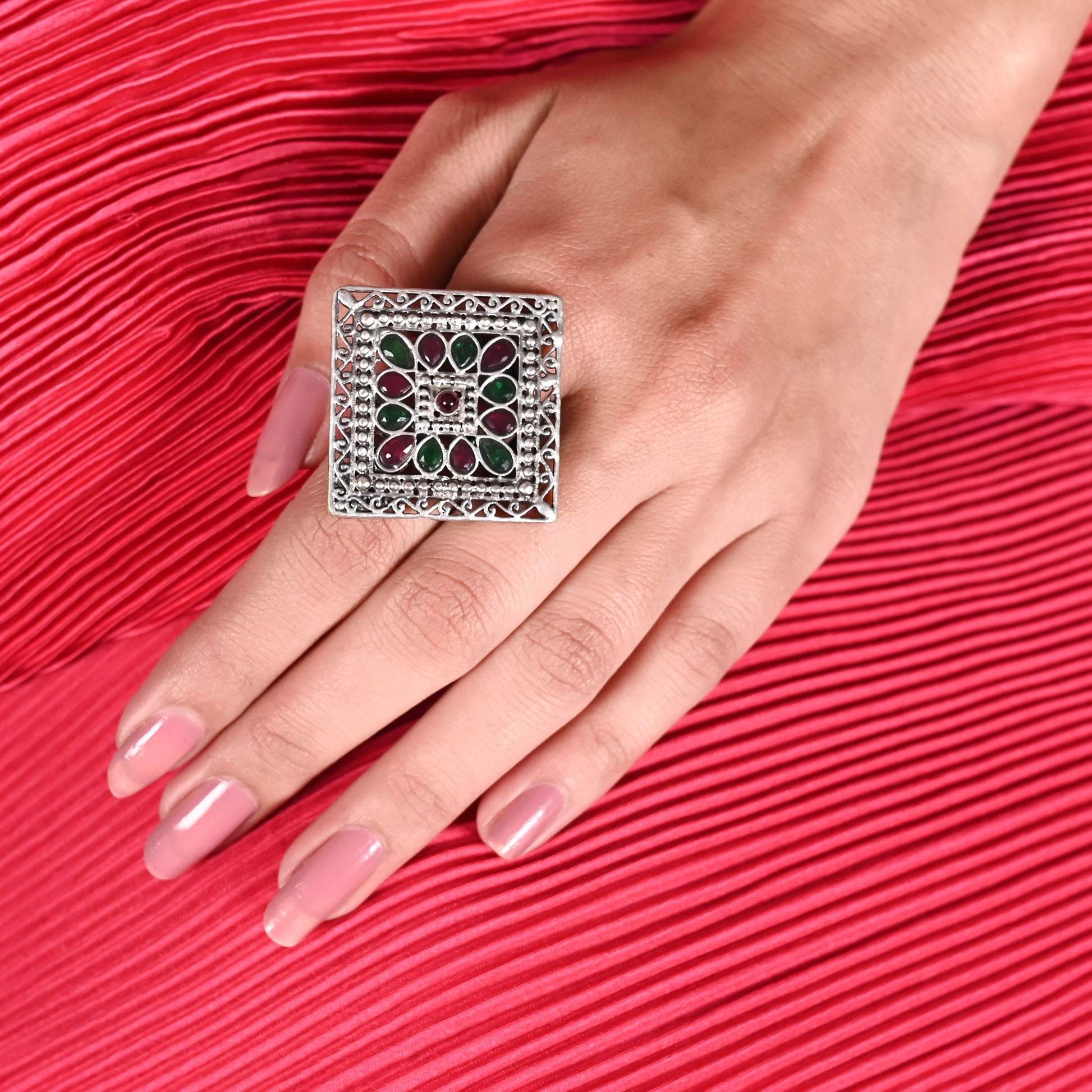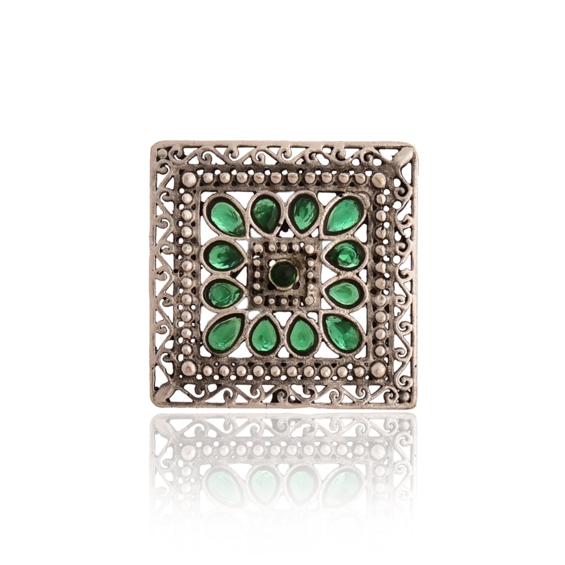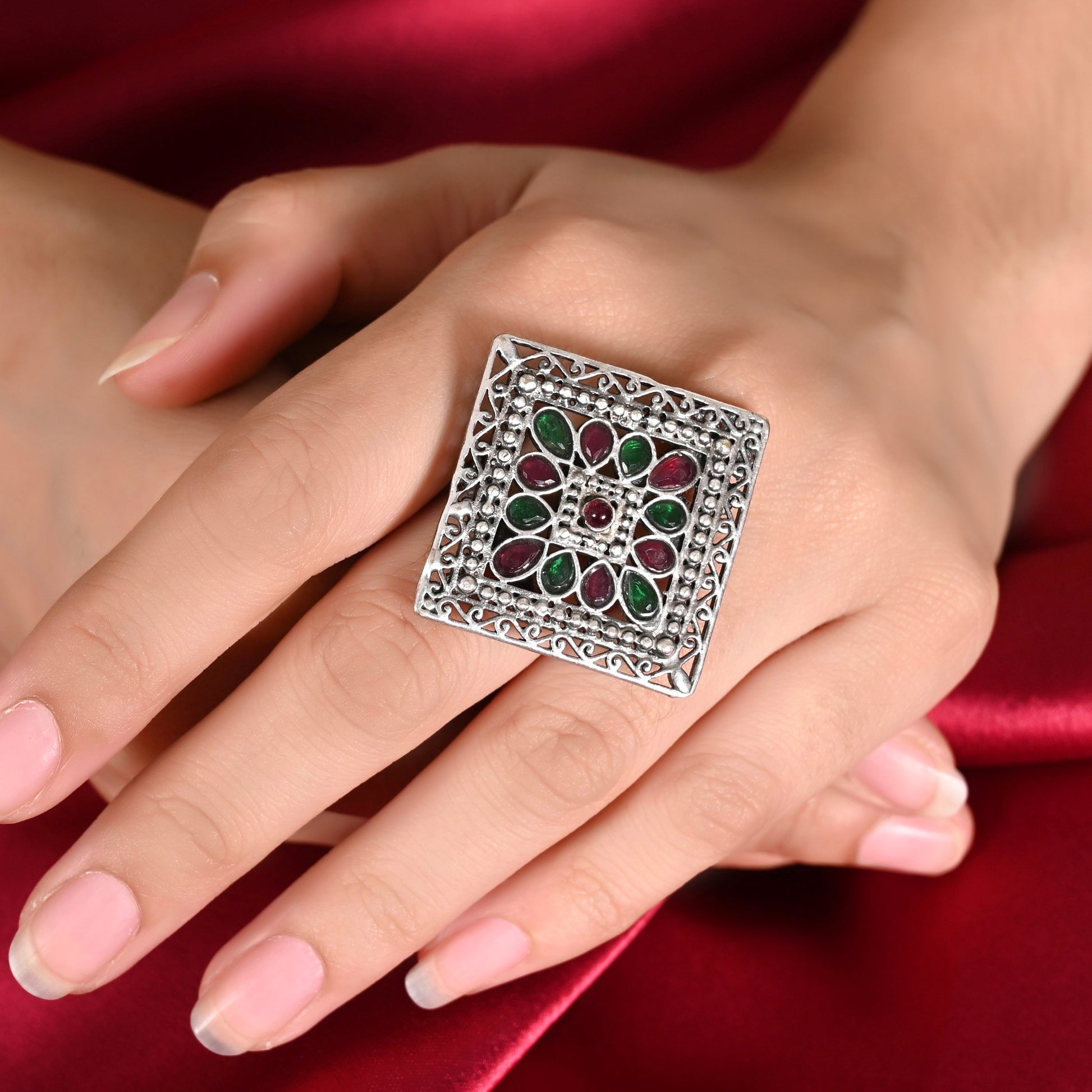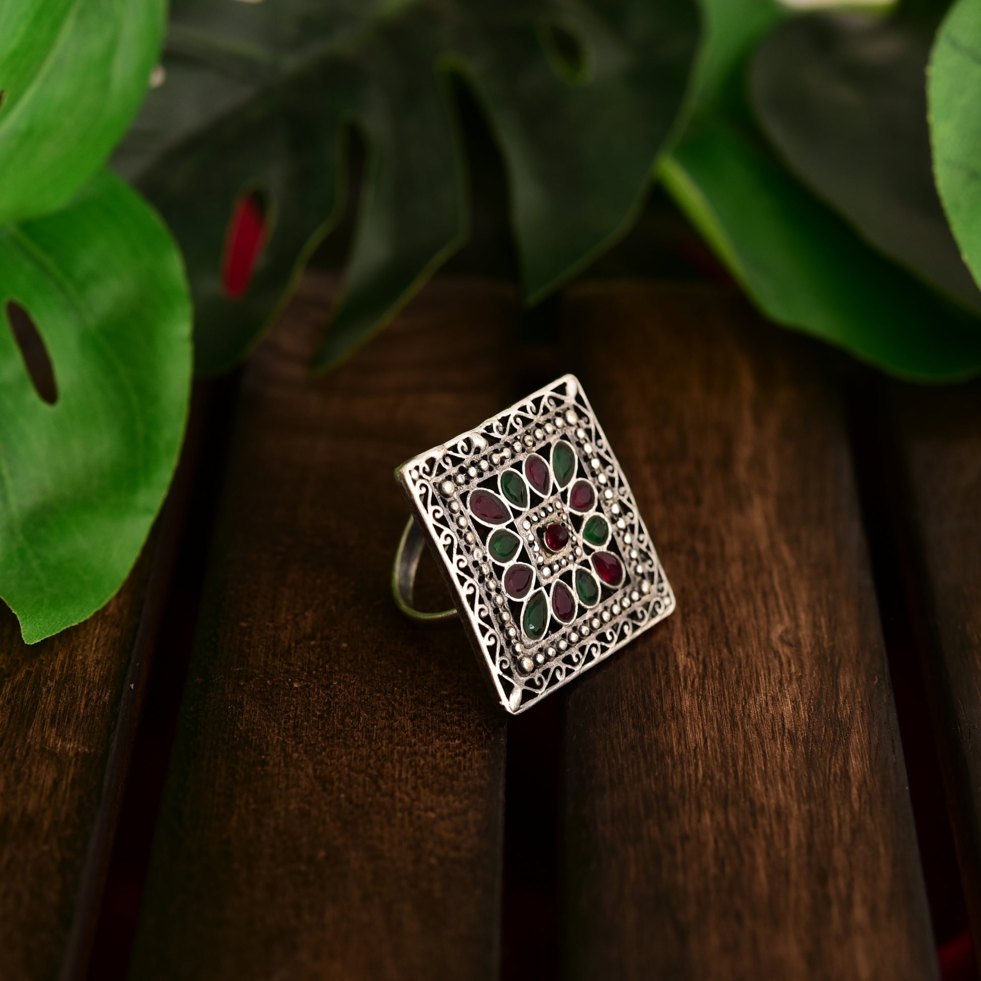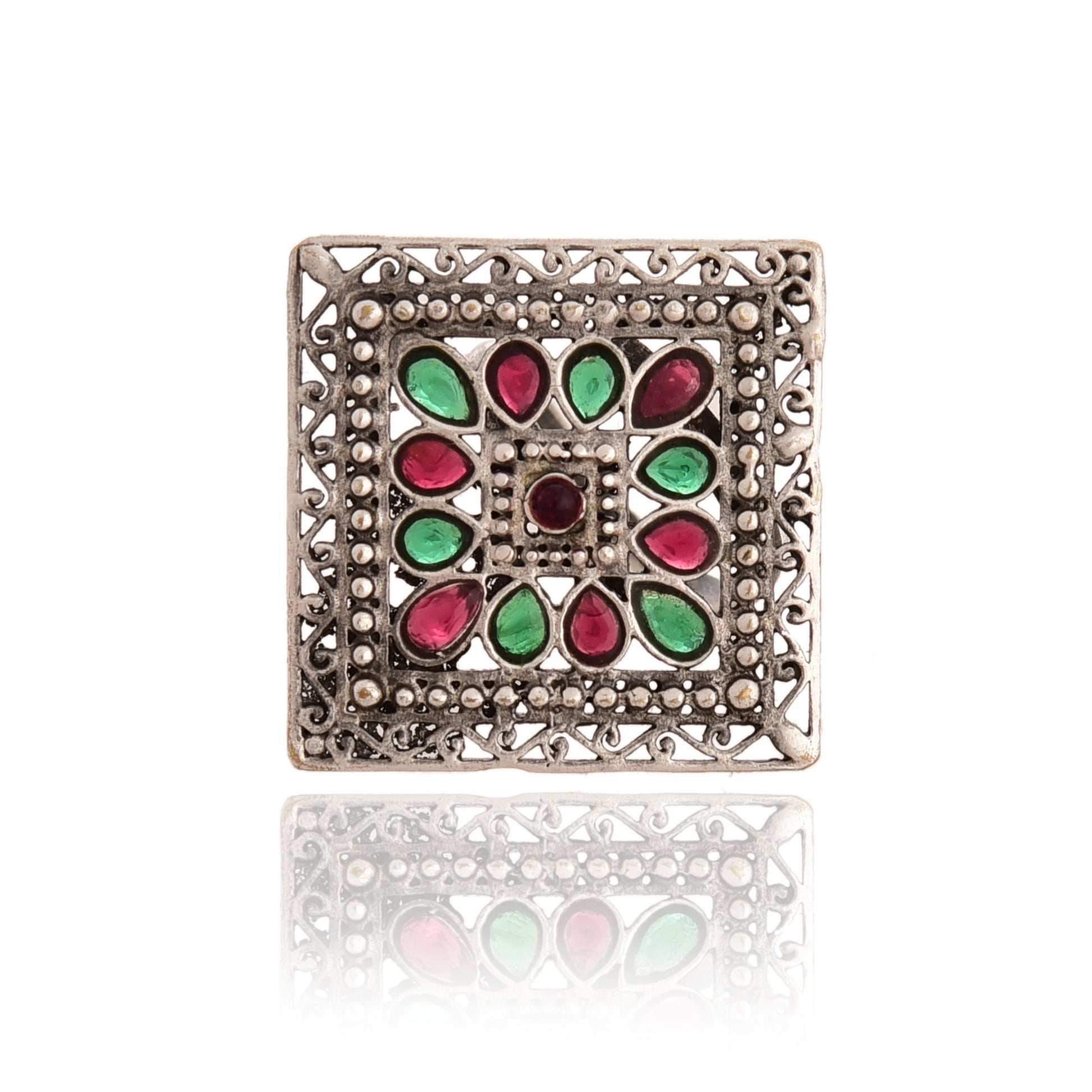 Tanusha Jewels Oxidised Square Brass Ring with Adjustable Size For Womens & Girls