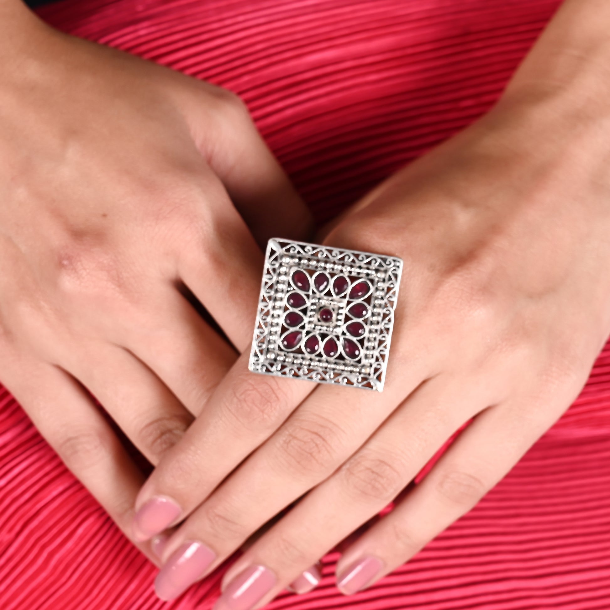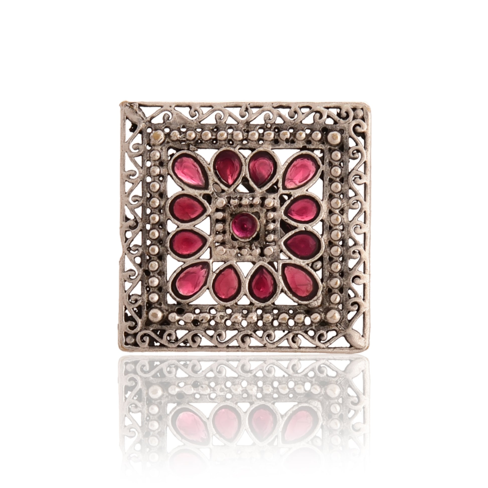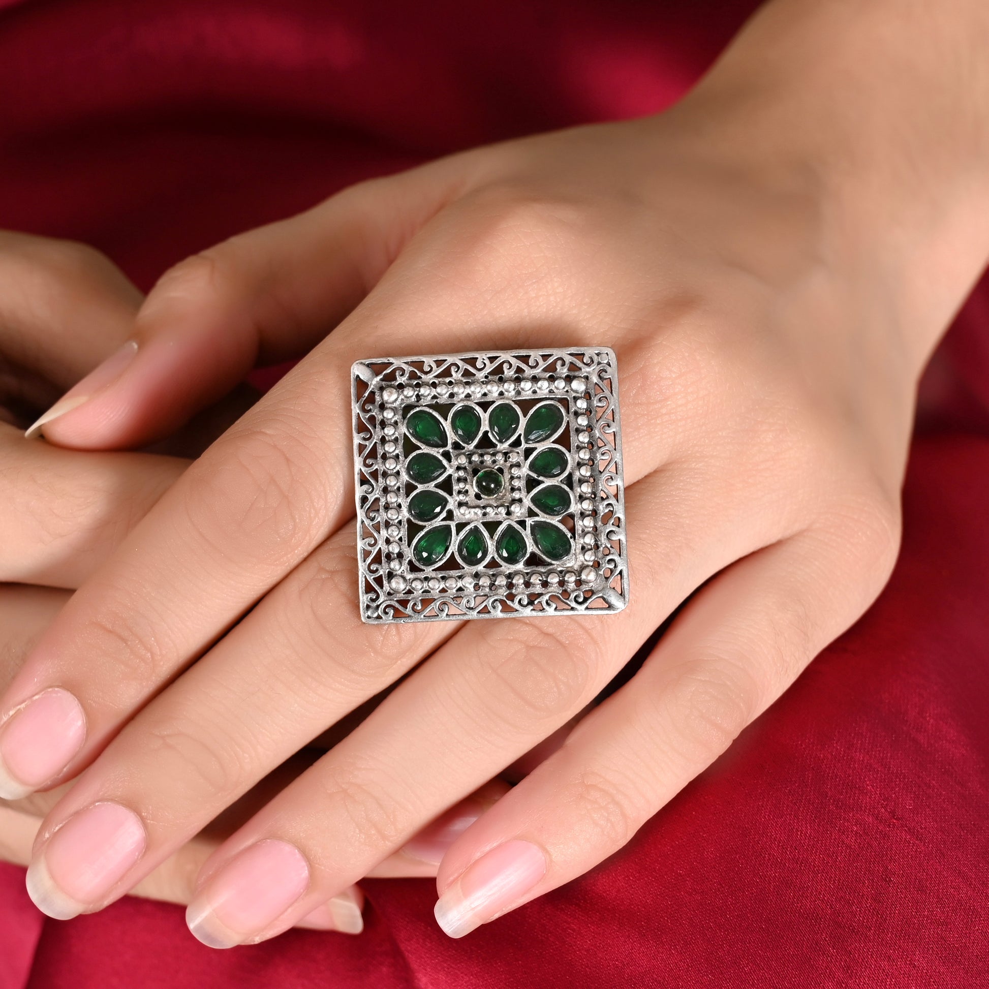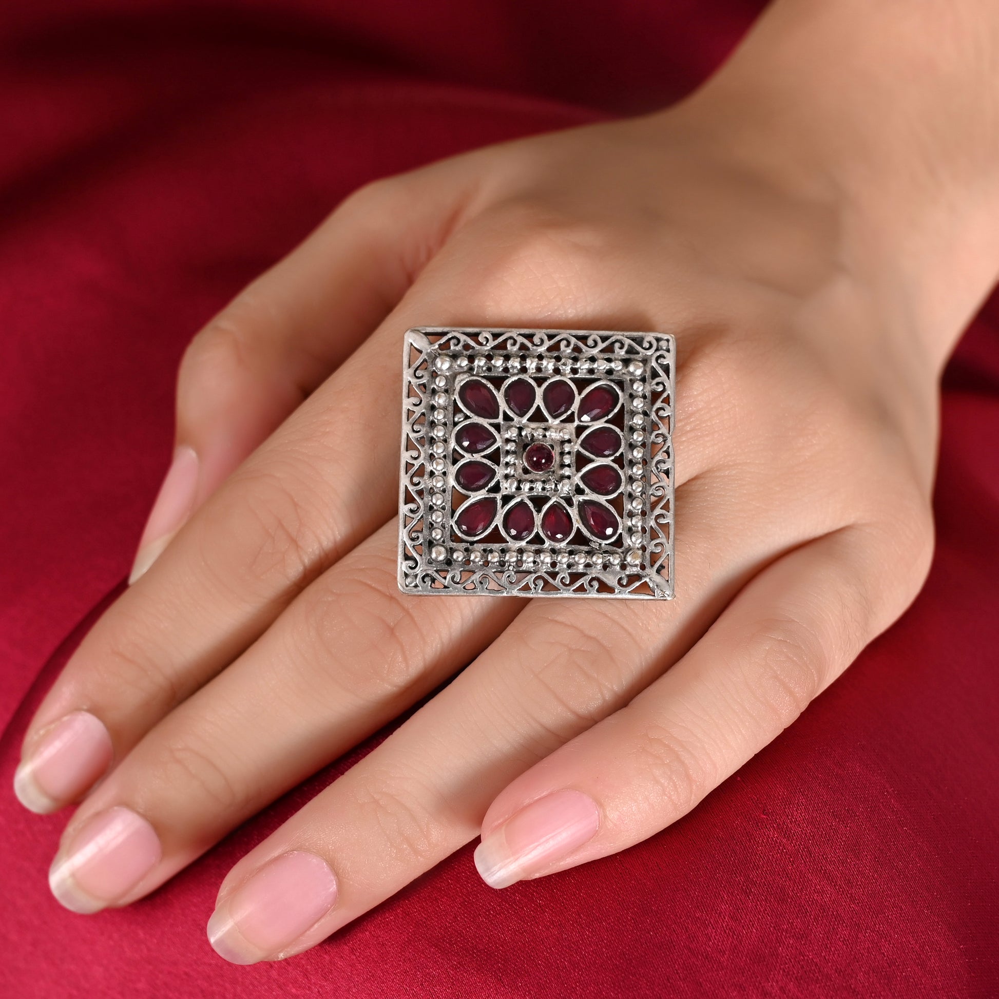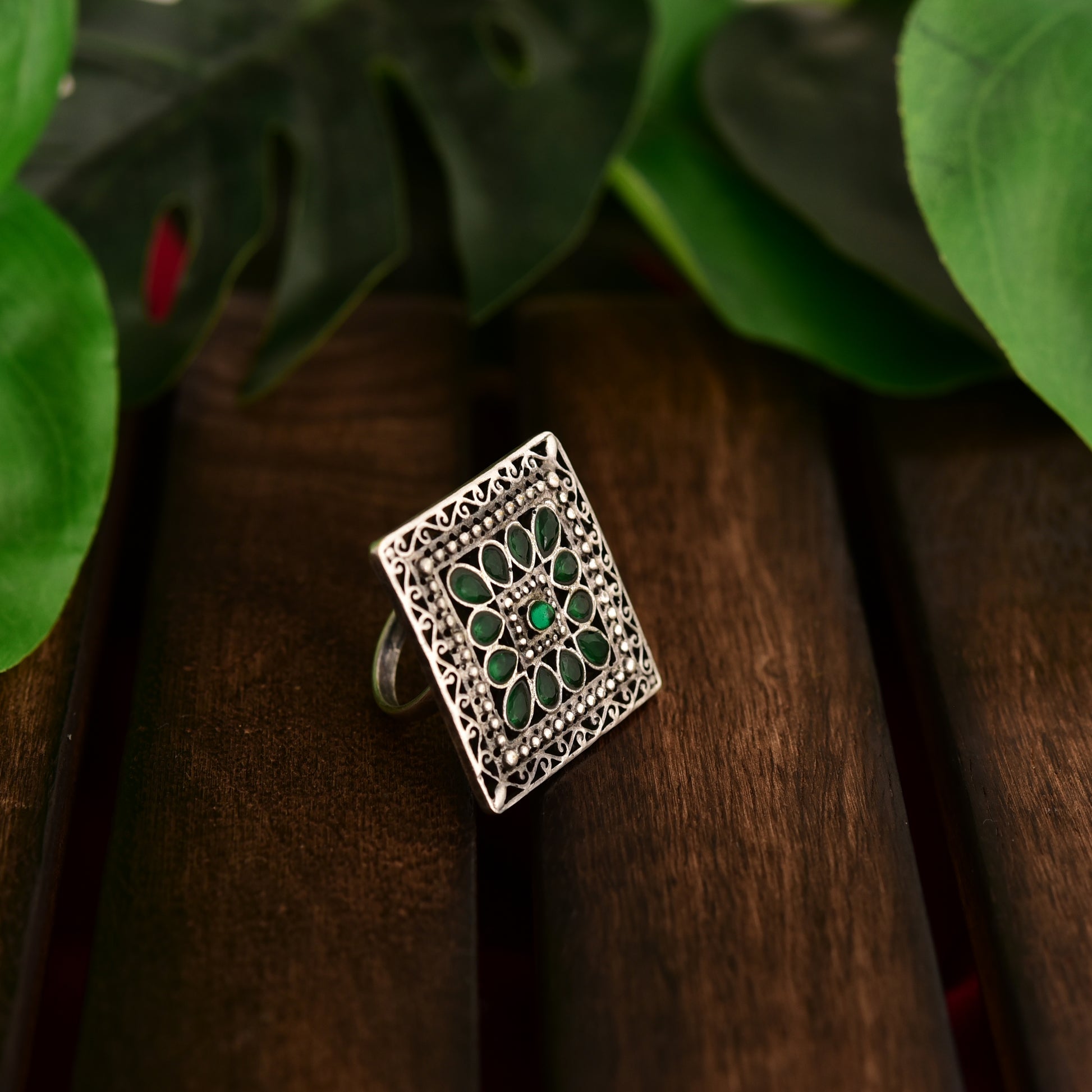 Tanusha Jewels Oxidised Square Brass Ring with Adjustable Size For Womens & Girls
