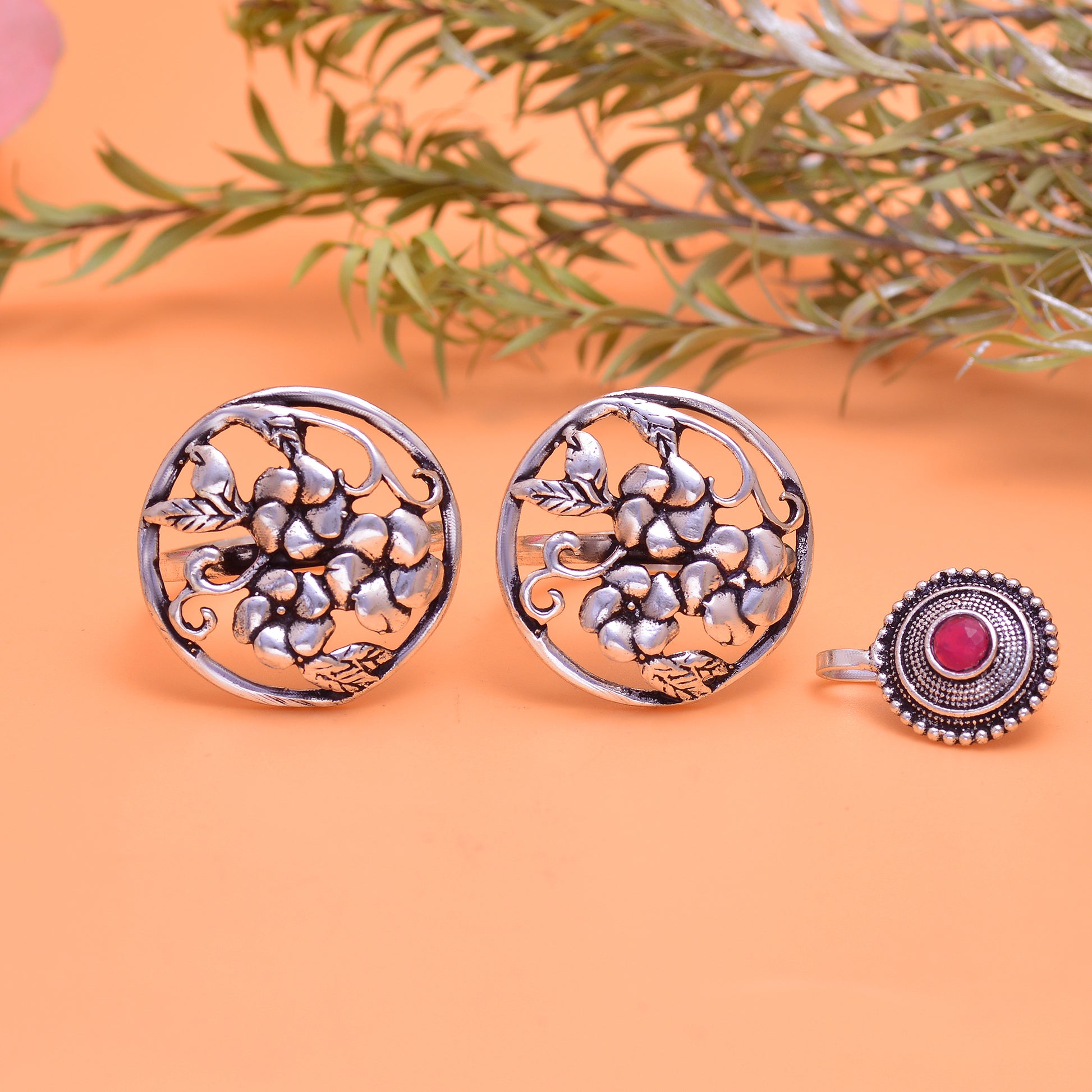 This Tanusha Jewels toe ring set is the perfect addition for any wardrobe. Crafted in black silver, these adjustable handmade jewellery pieces feature oxidised pearl bichiya and nosestud. Add a touch of ethnic style to your look with this stylish set.