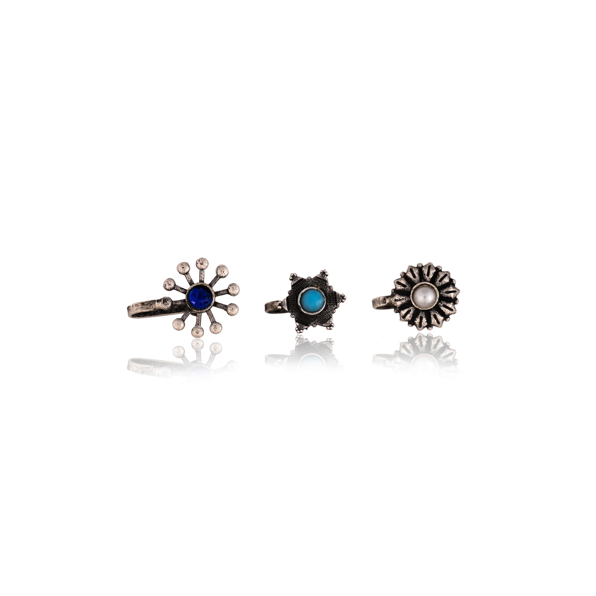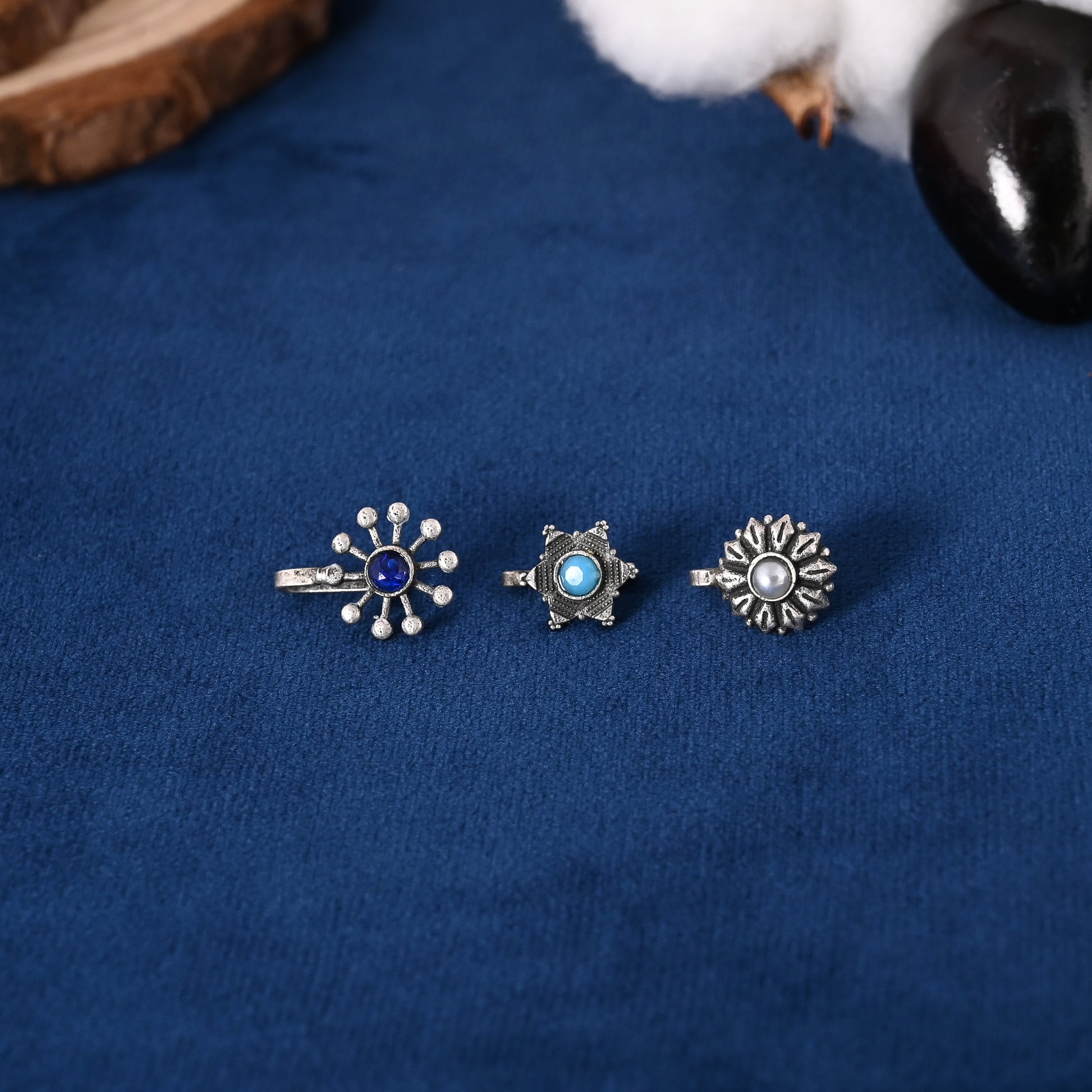 Tanusha Jewels Silver Oxidised Clip-On Nosepin Set for womens and girls || Multi || Pack of 3