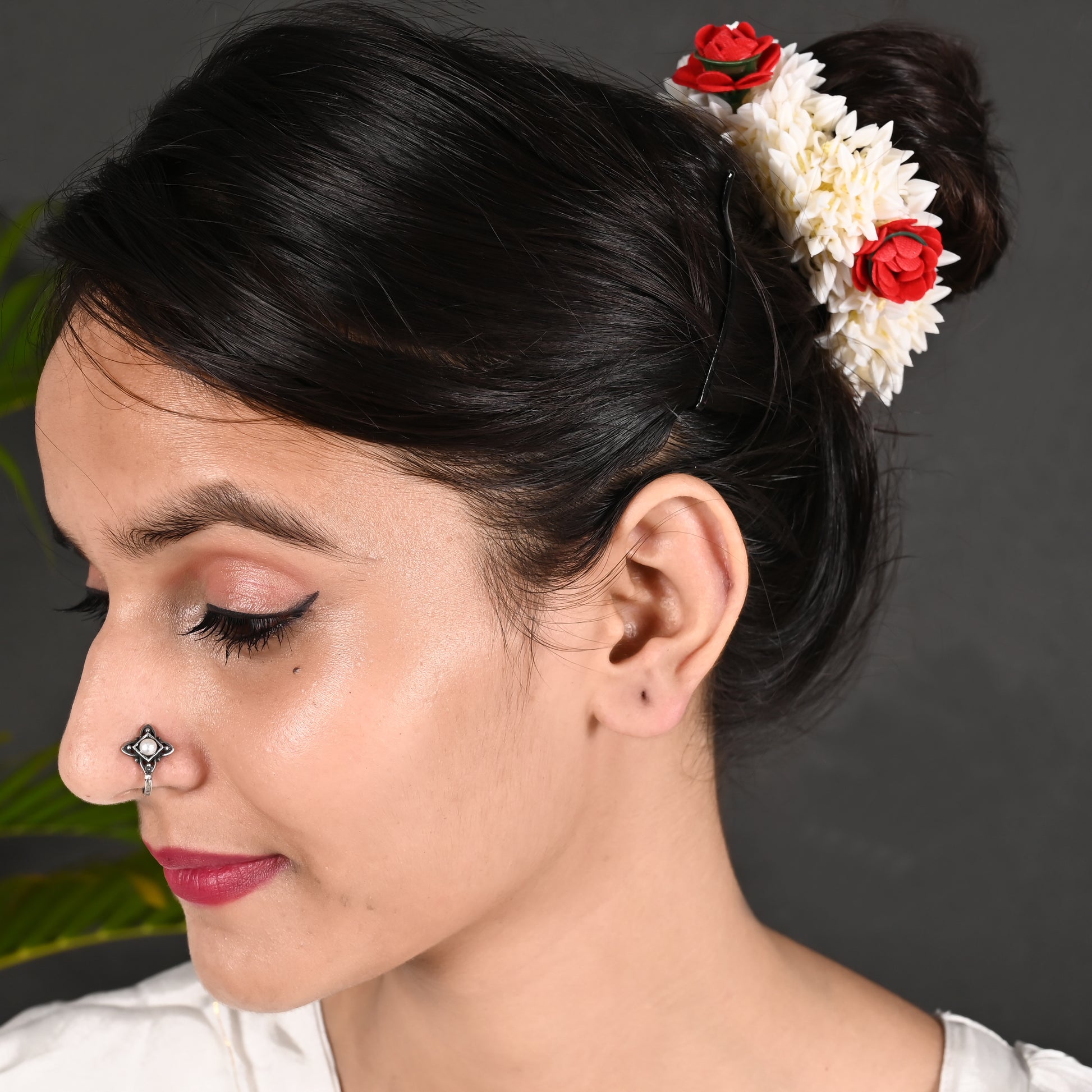 Traditional oxidized nose Pin Nath will Enhance your look. An easy-to-wear design that is available in different shapes. Clip On Oxidised nose pin without piercing for weddings , Parties , engagement , Festivals . An Indian Beautiful Lady Knows the Importance of Nosepin in Their Daily Fashion. . This Nose stud pack is for those Girls women or Ladies who are updated with the Trending Fashion. These Handcrafted Oxidized German Silver Plated Handmade Nose clips, Nose Pin, Nose Rings & Stud without piercing for women are Adjustable and Easy To wear.