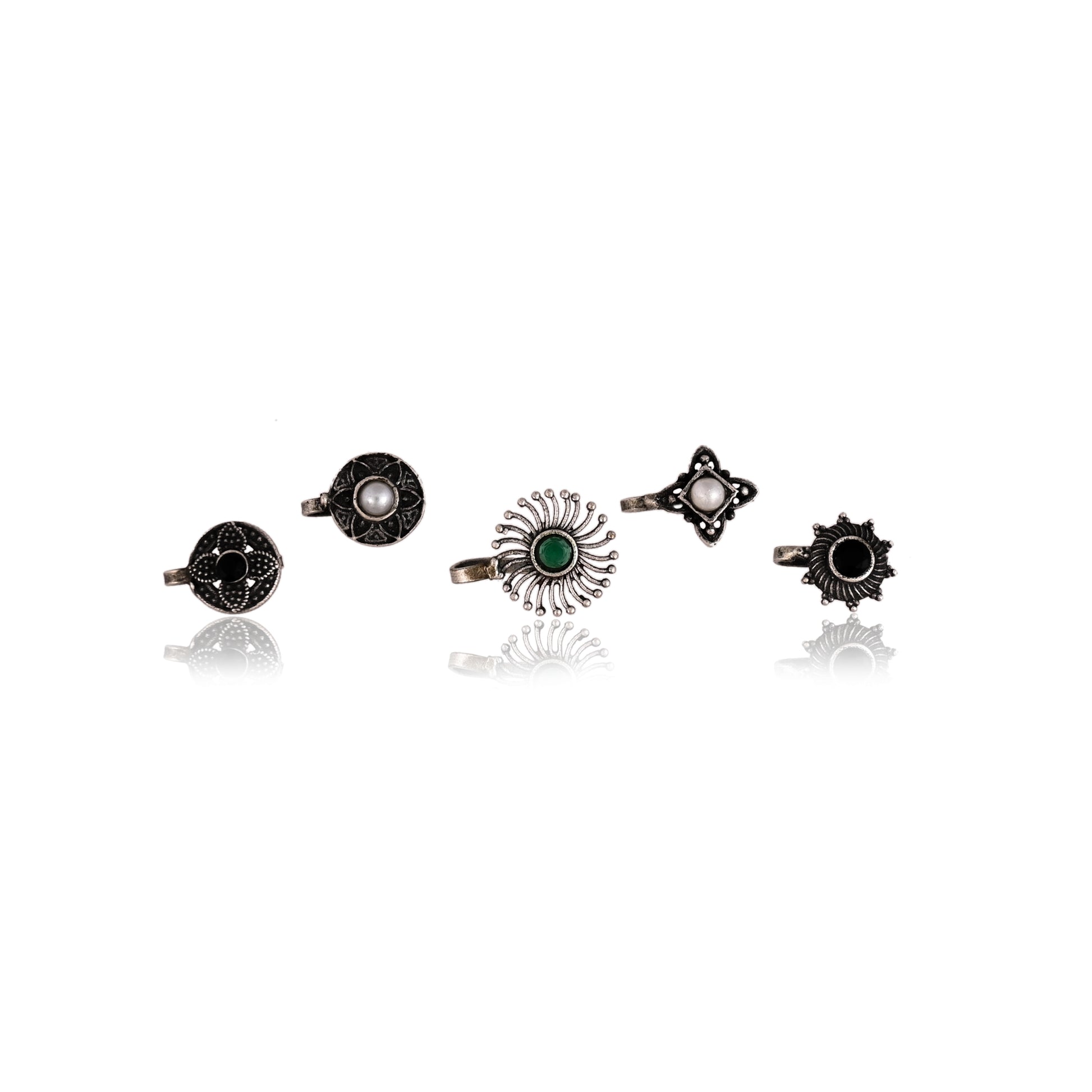 Tanusha Jewels Silver Oxidised Clip-On Nosepin Set for womens and girls (Pack of 5)
