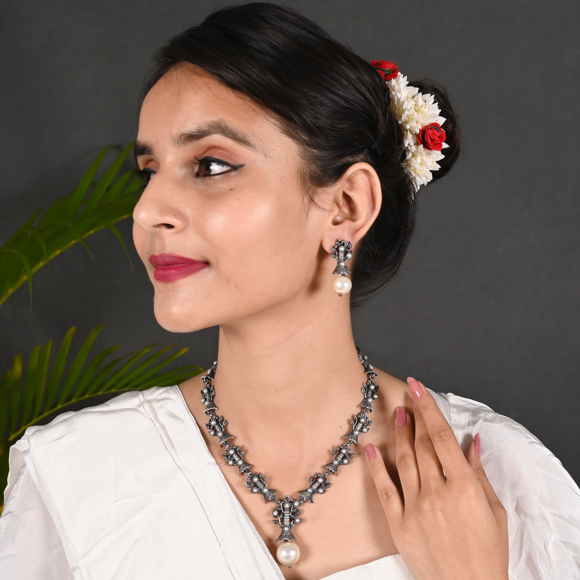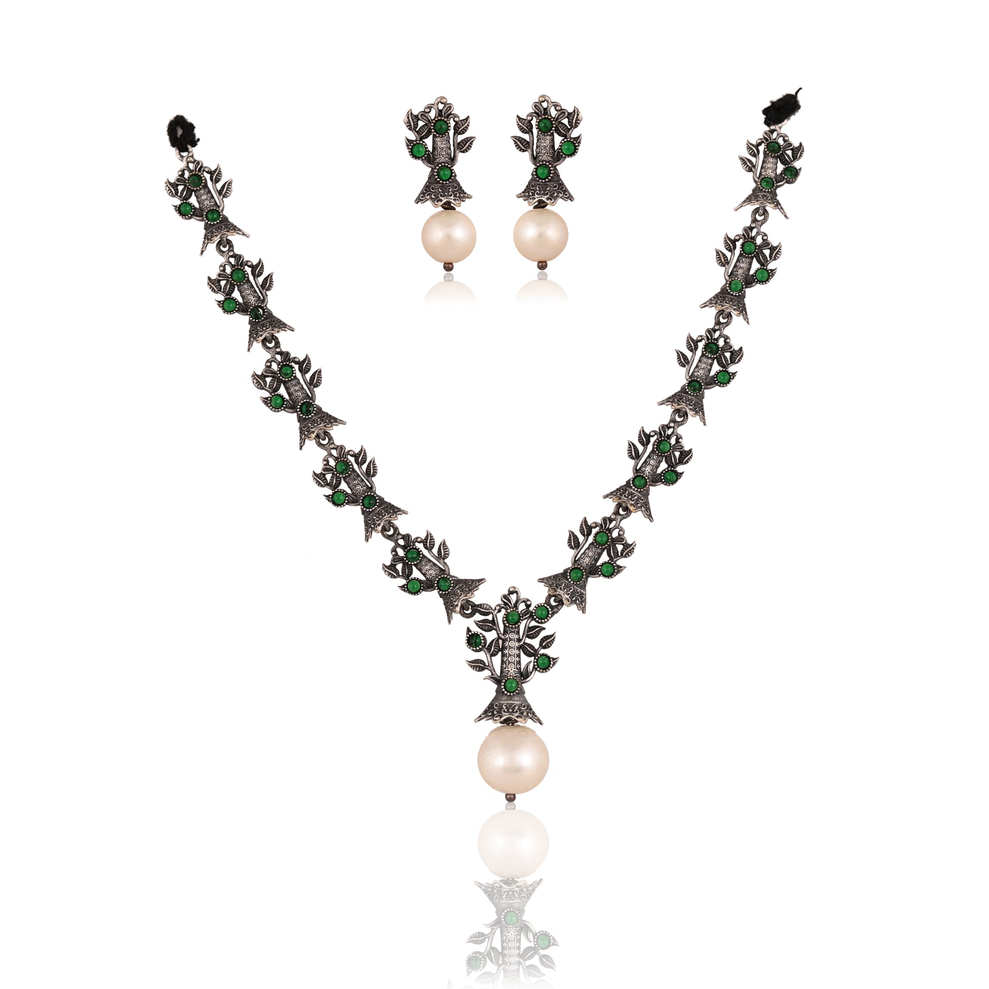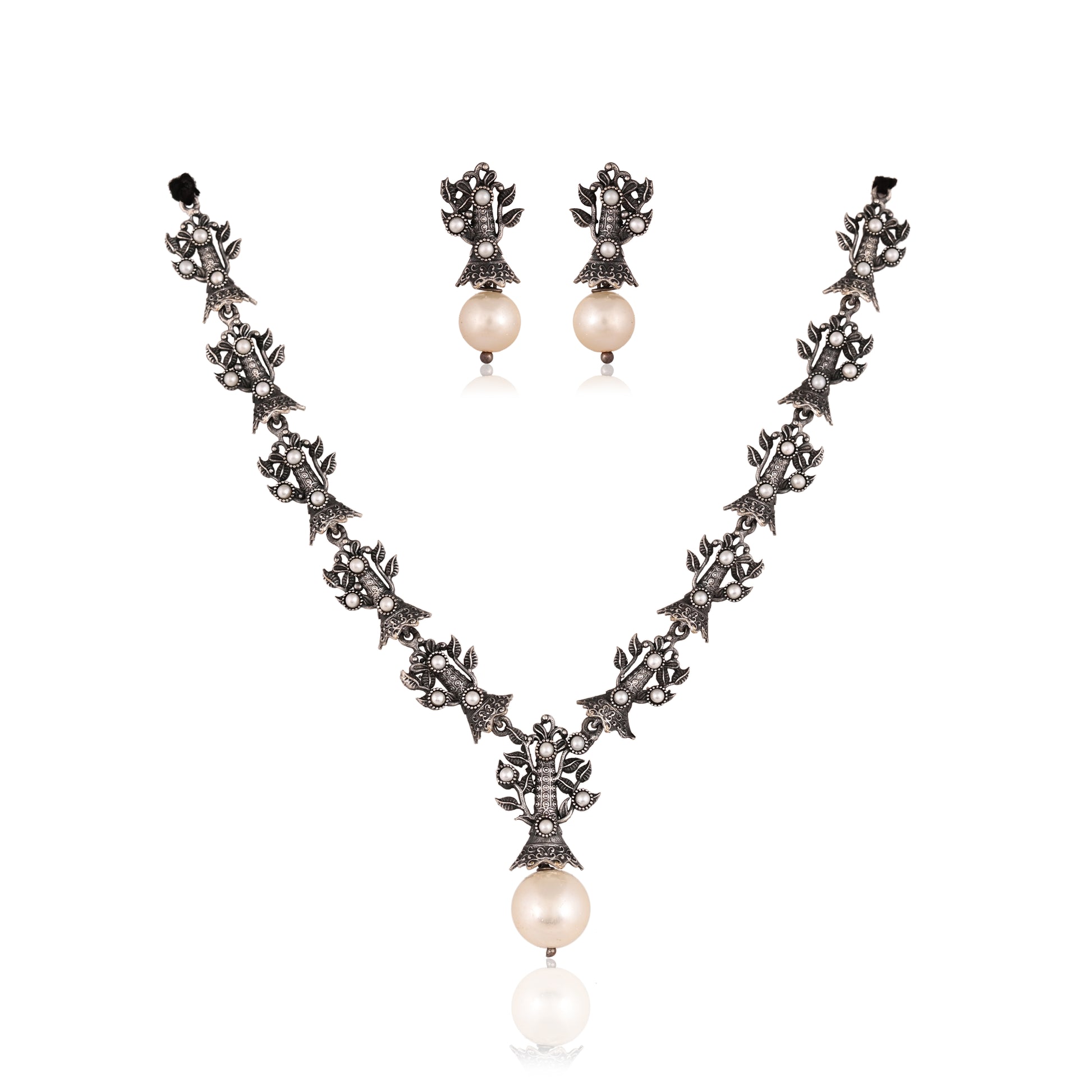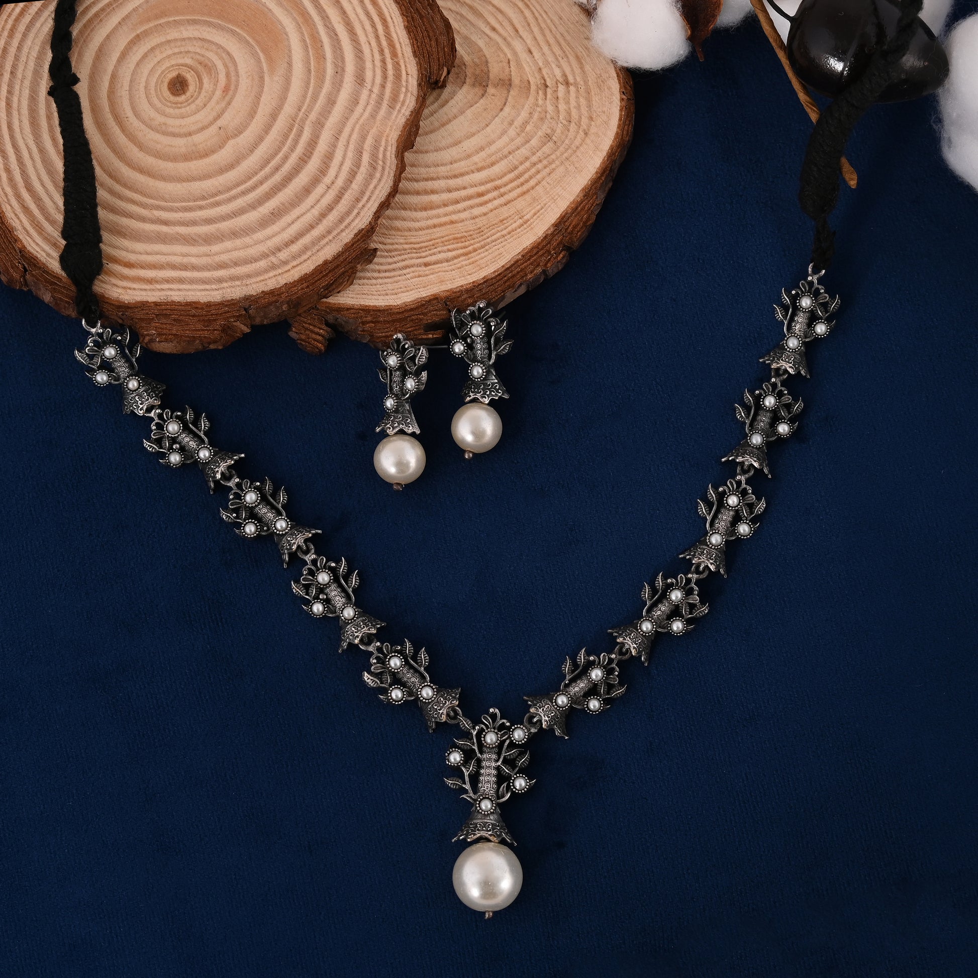 Tanusha Jewels Stunning Oxidised Looking V-Shape Necklace Set (1Necklace & 1Earing)