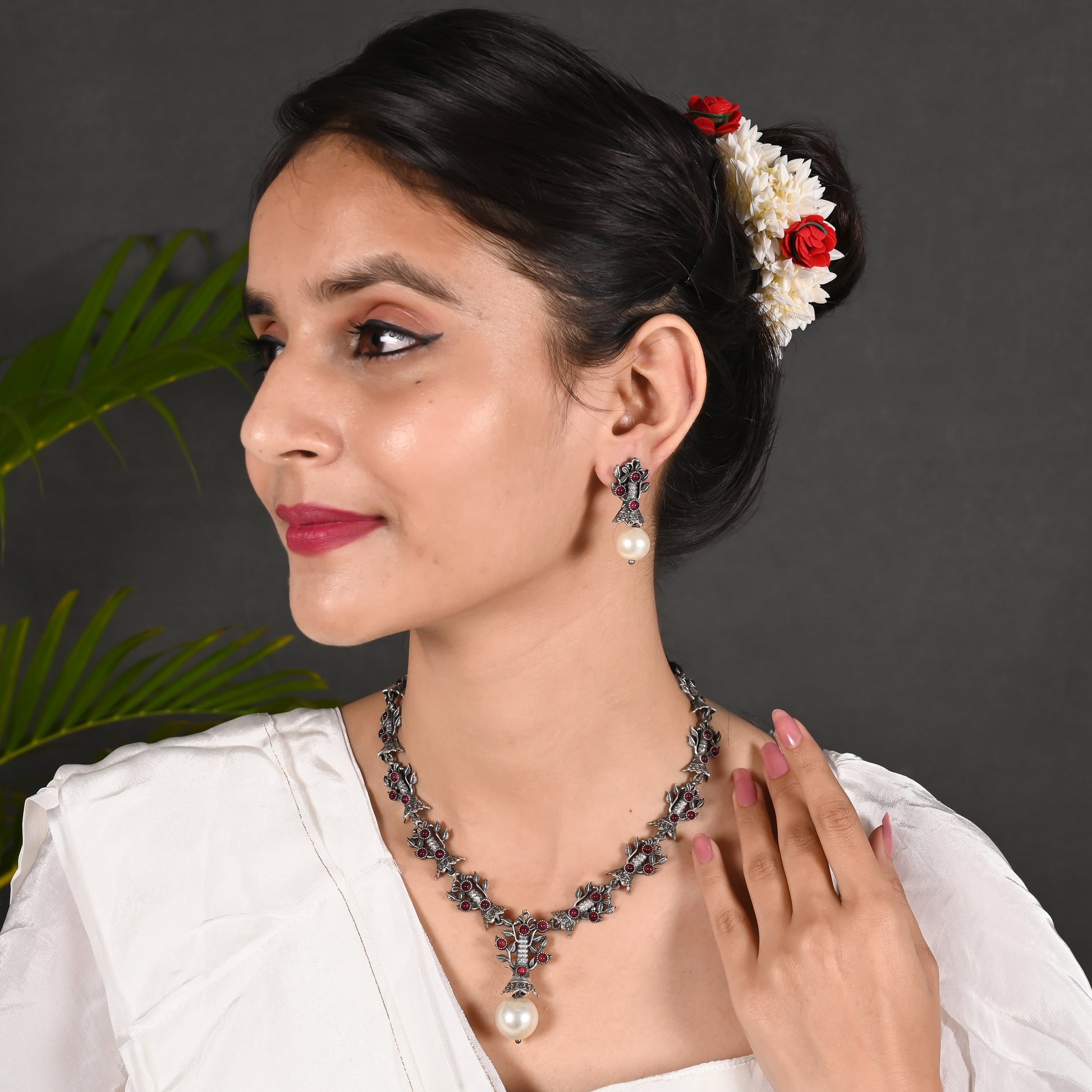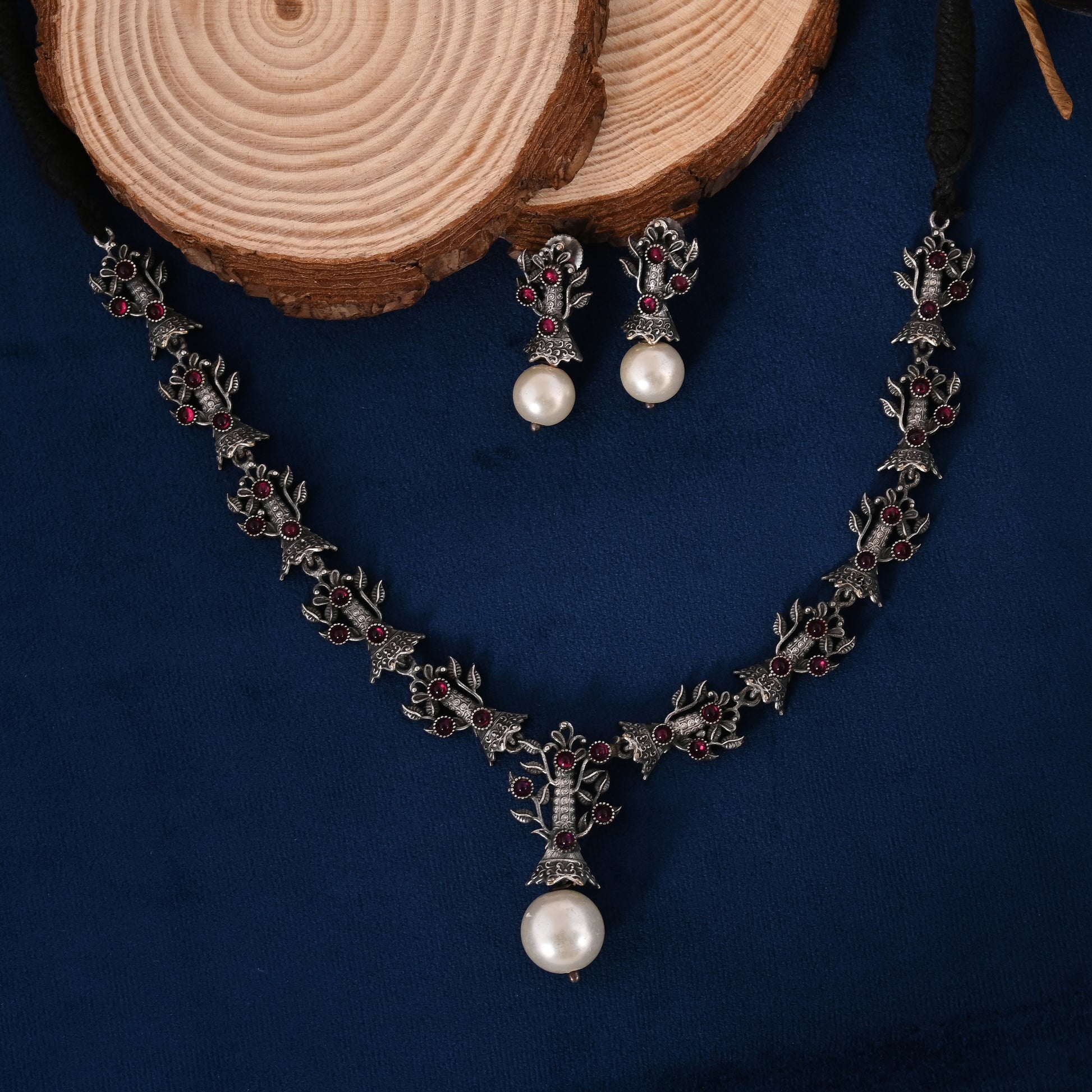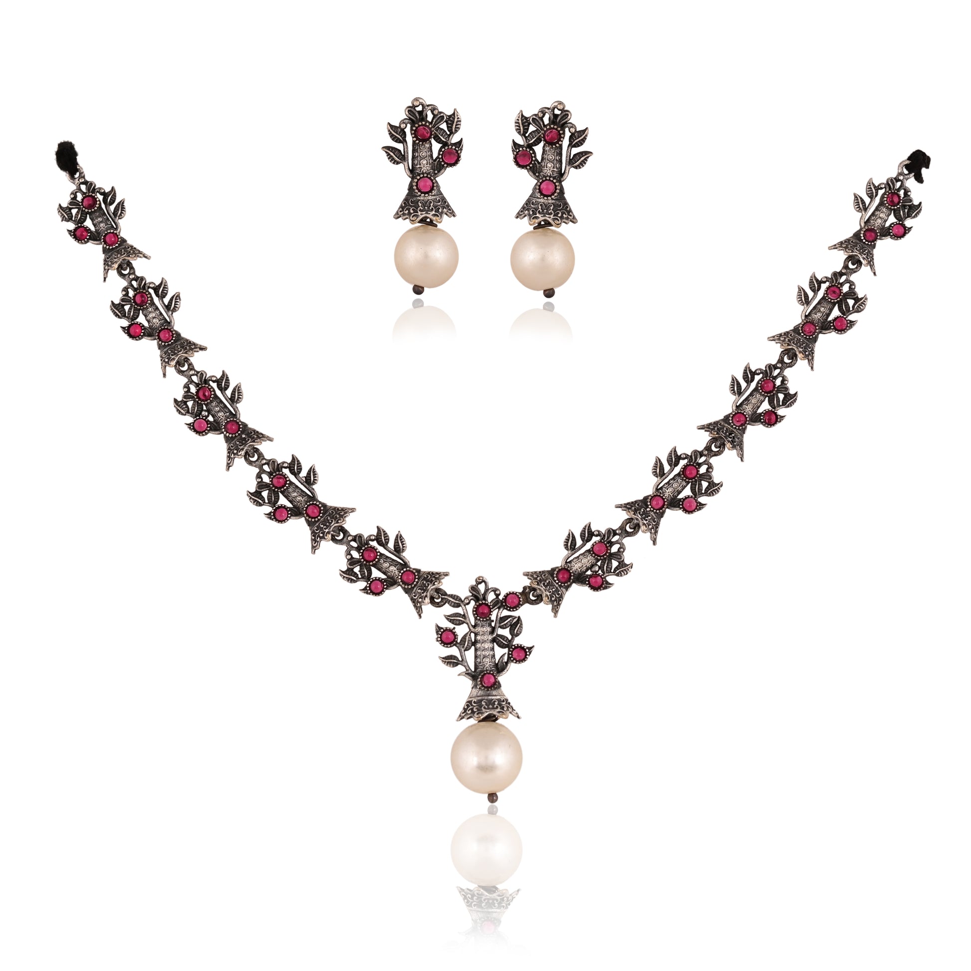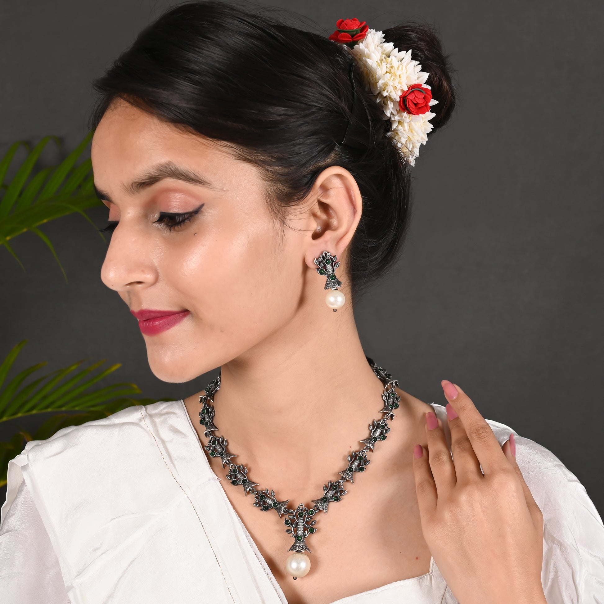 Tanusha Jewels Stunning Oxidised Looking V-Shape Necklace Set (1Necklace & 1Earing)